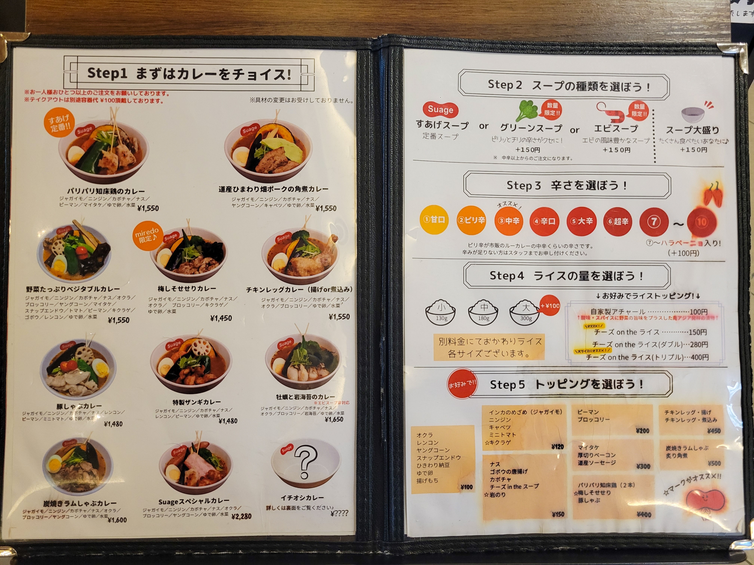 最後のスープカレー、何にしようかな…。色々気になるメニューがあって、本当に迷う。お腹もペコペコだし、最高のスープカレーで締めくくりたいなぁ。