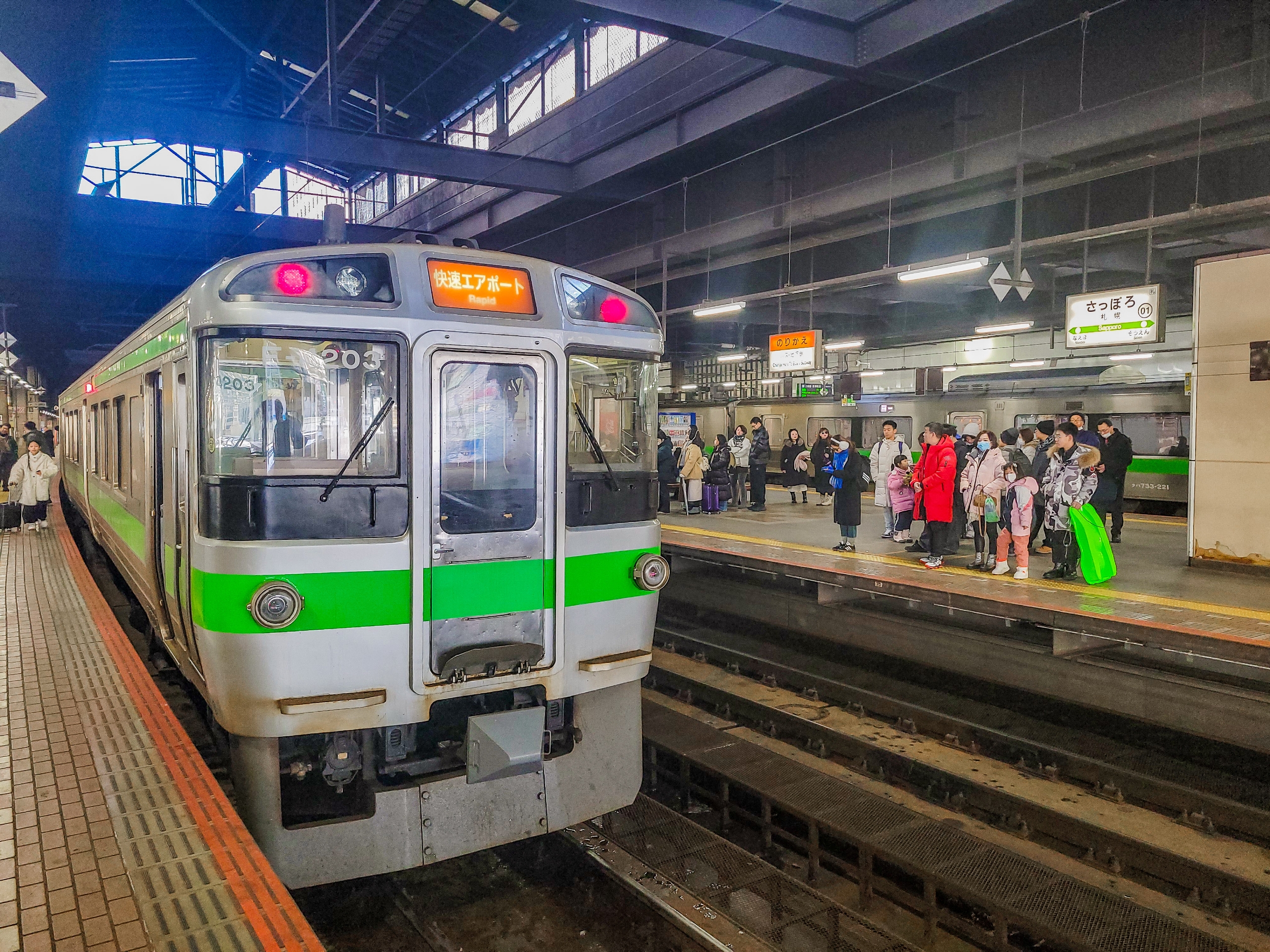新千歳空港へ向かう快速エアポートは1時間に6本運行されていますが、そのうち2本は小樽駅始発です。たまたま到着したエアポートが小樽始発で混雑していたため見送り、次の札幌駅始発を待ったところ座ることができました。しかし、出発時には満席になったことから、この路線の利用者の多さが伺えます。もし千歳線がトラブルで運行停止になった場合、空港アクセスに大きな影響が出るのは明らかでしょう。
