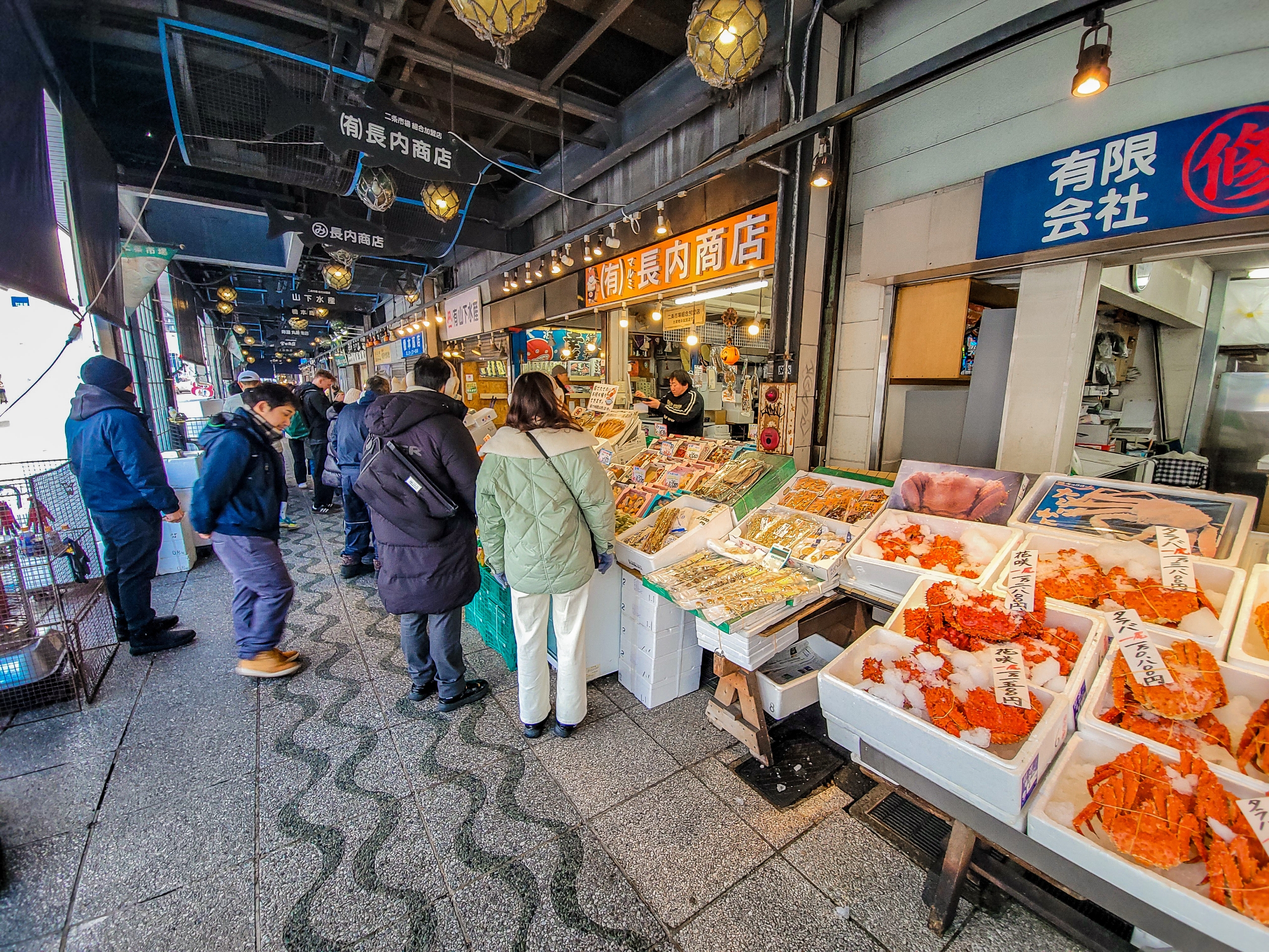 予想していたほどの賑わいはありません。海外への生もの持ち帰りの難しさを考えると、この状況も理解できます。海z外からの観光客が生の海産物を購入して帰るのは難しいですしね。