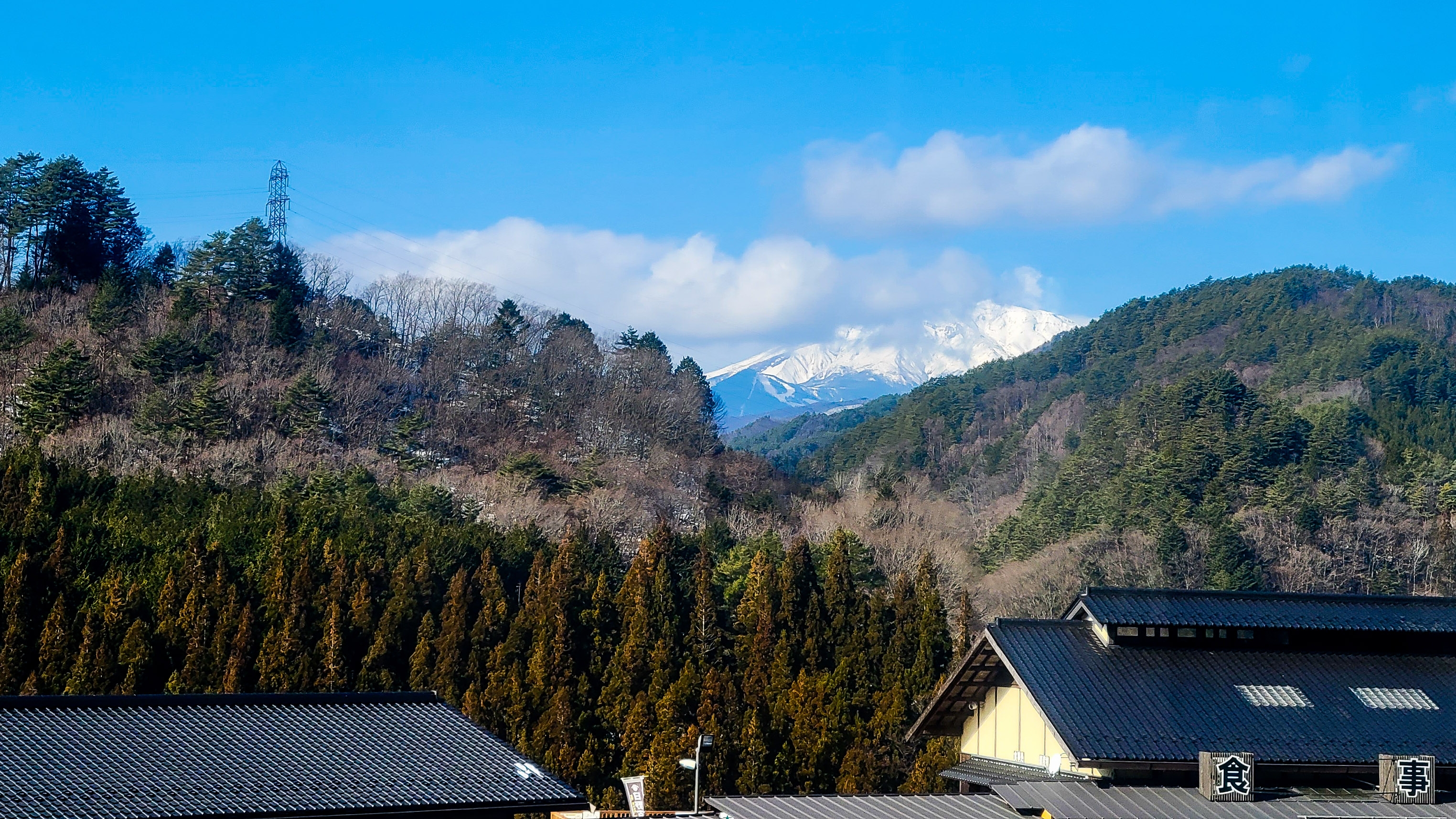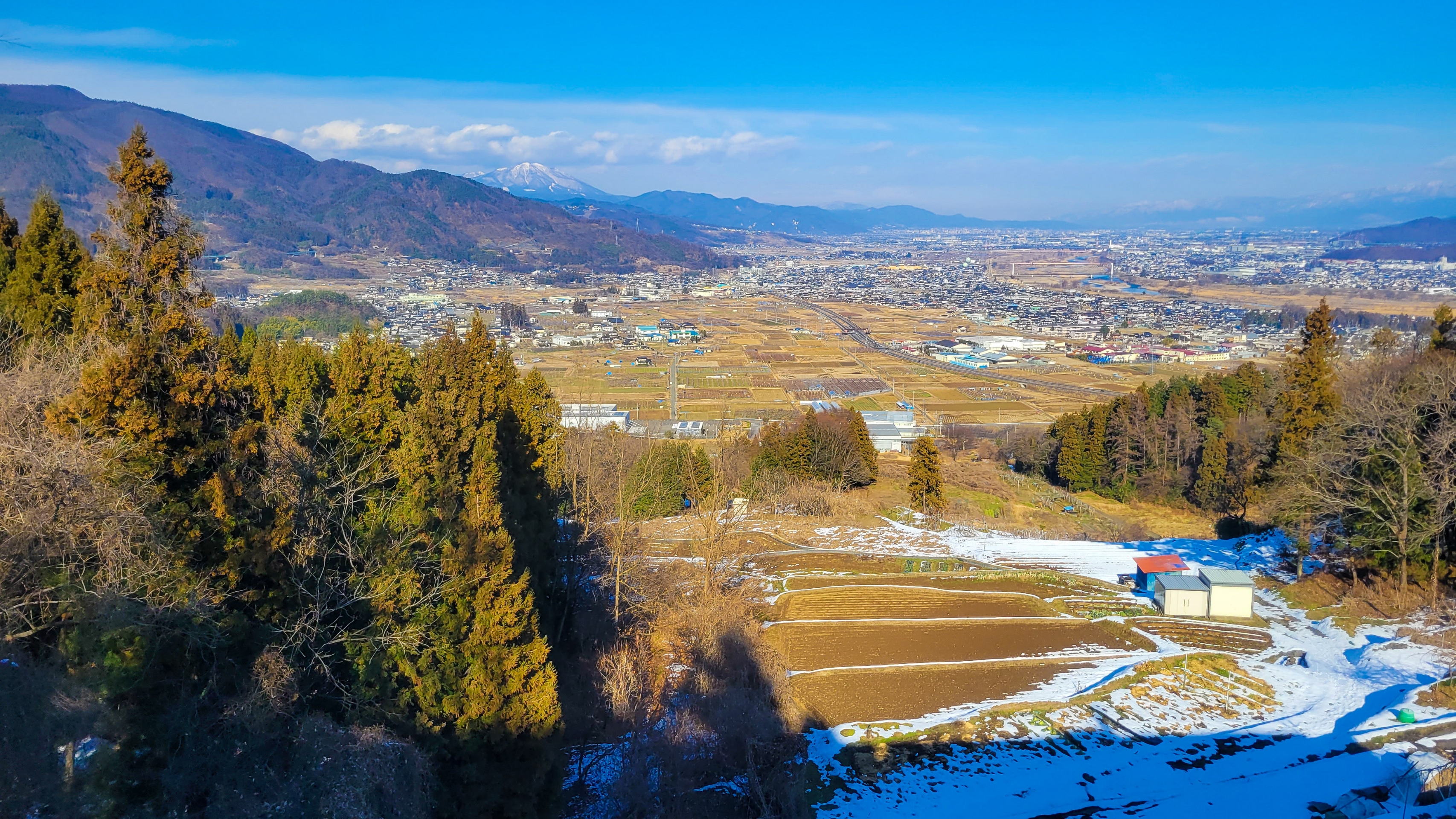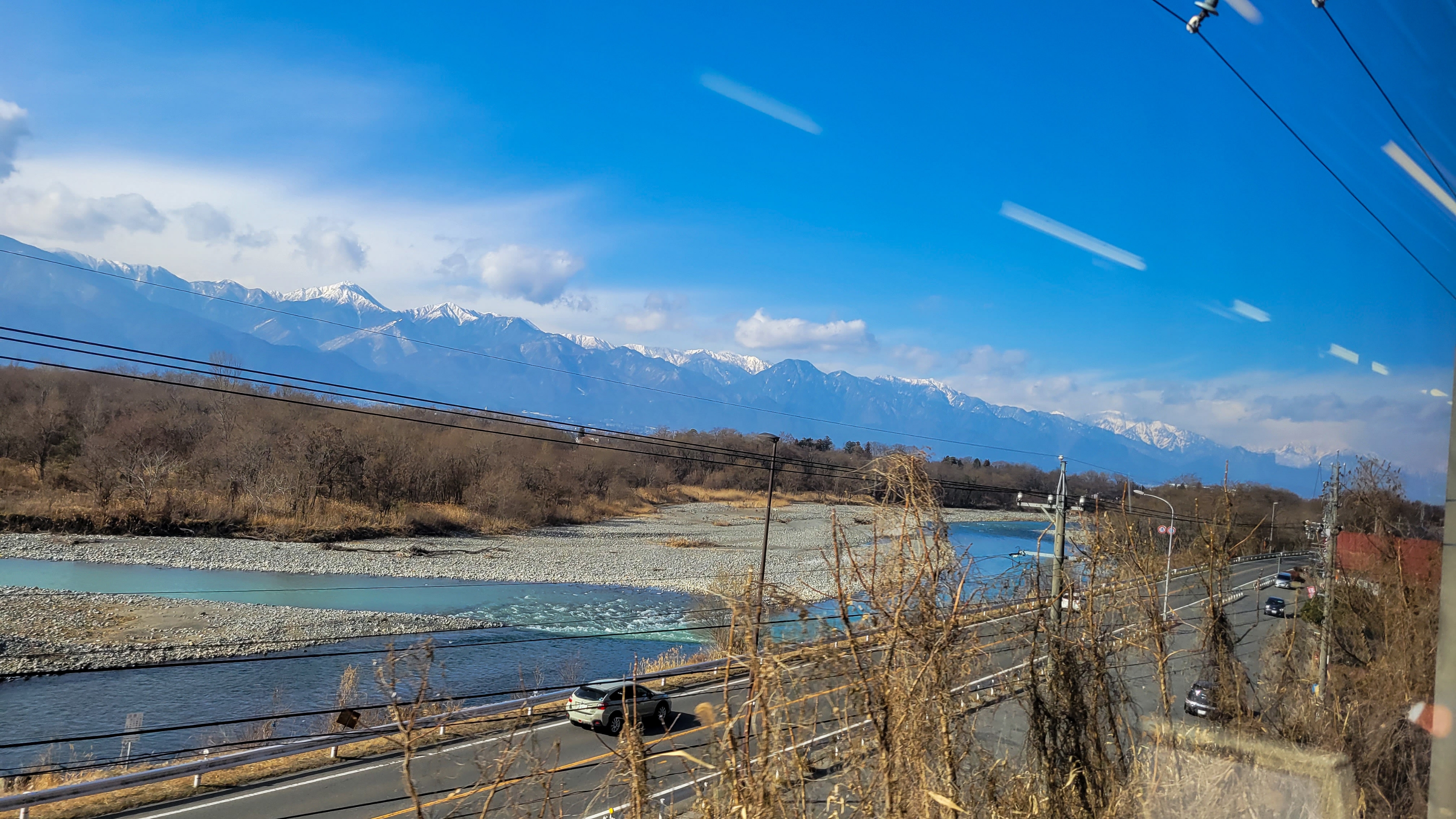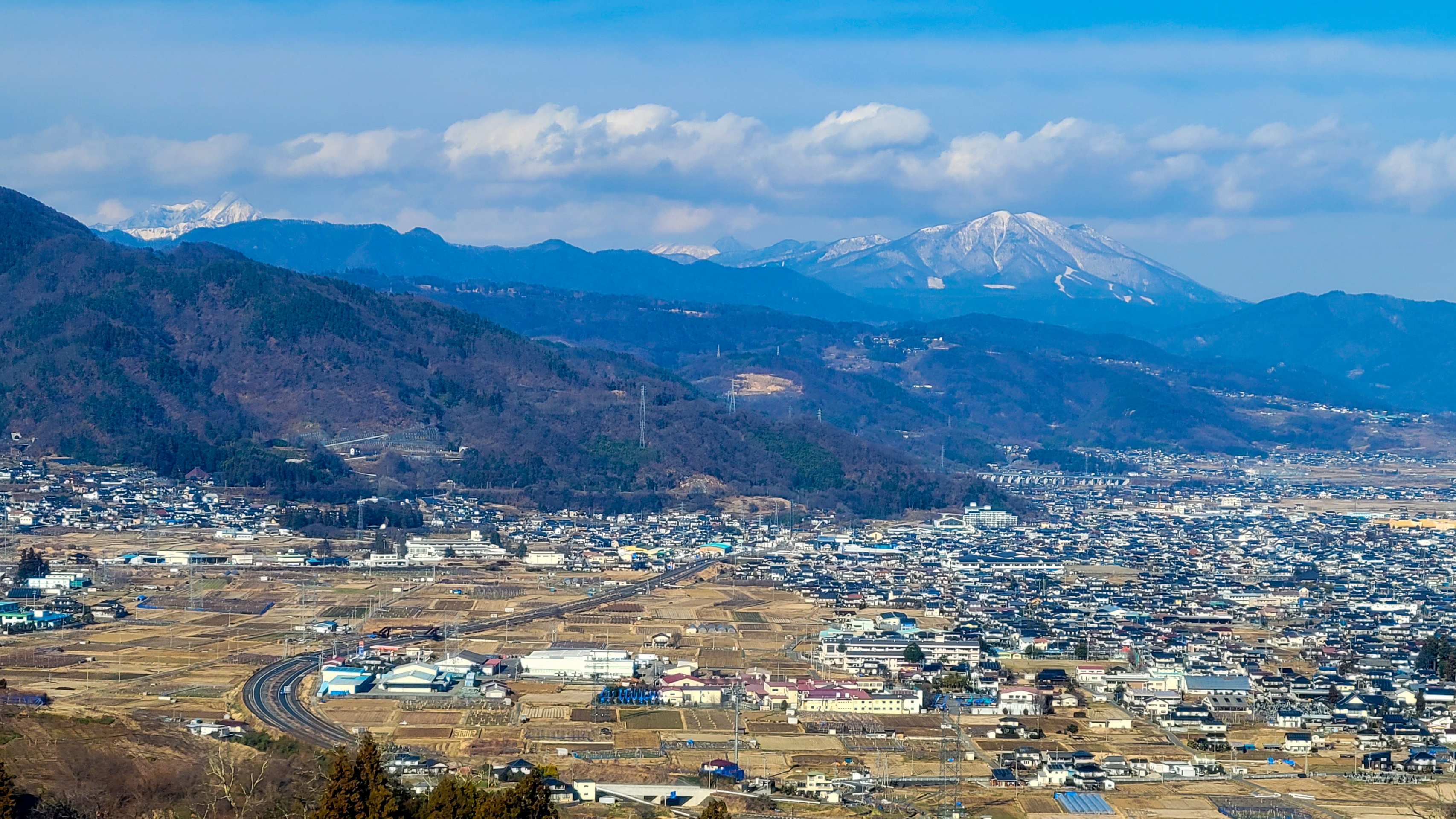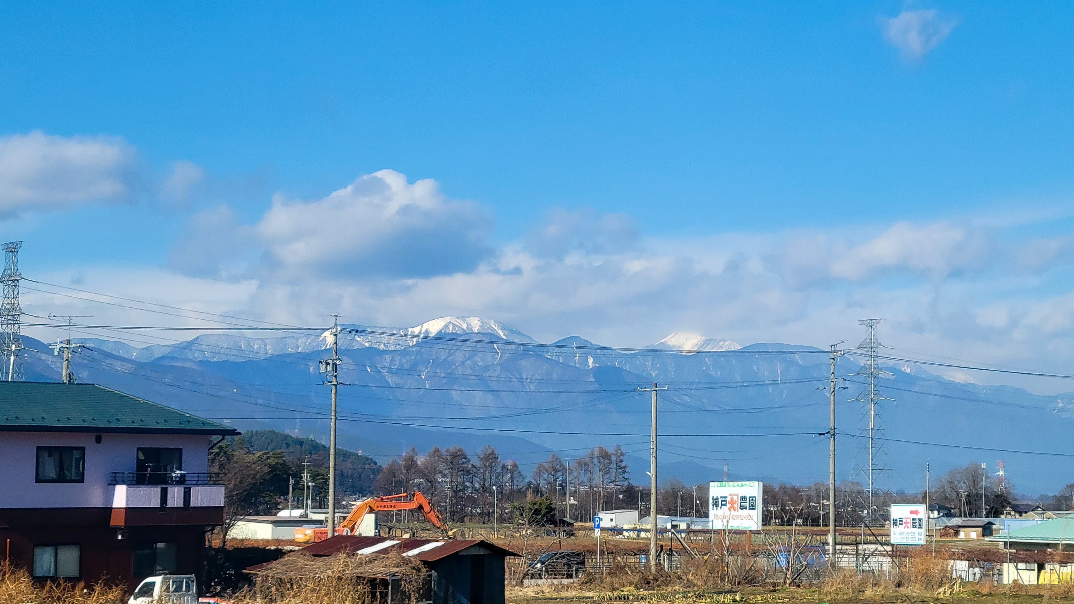 遠くに雪山が見えてテンションがあがる。中央アルプスだと思う。