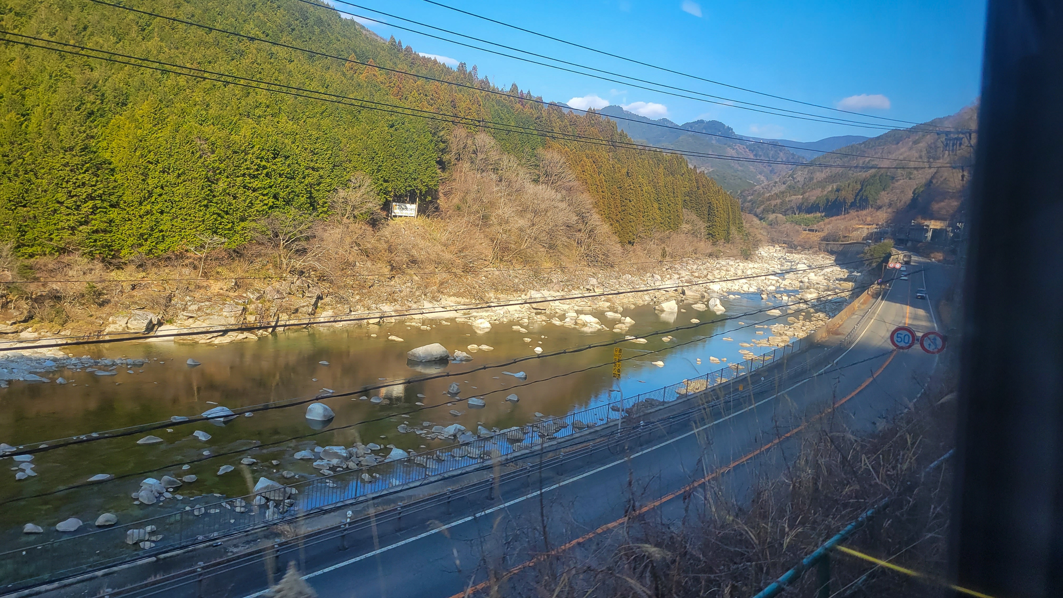 基本的に左側が景色が良いが、ロングシートなので見ずらい。