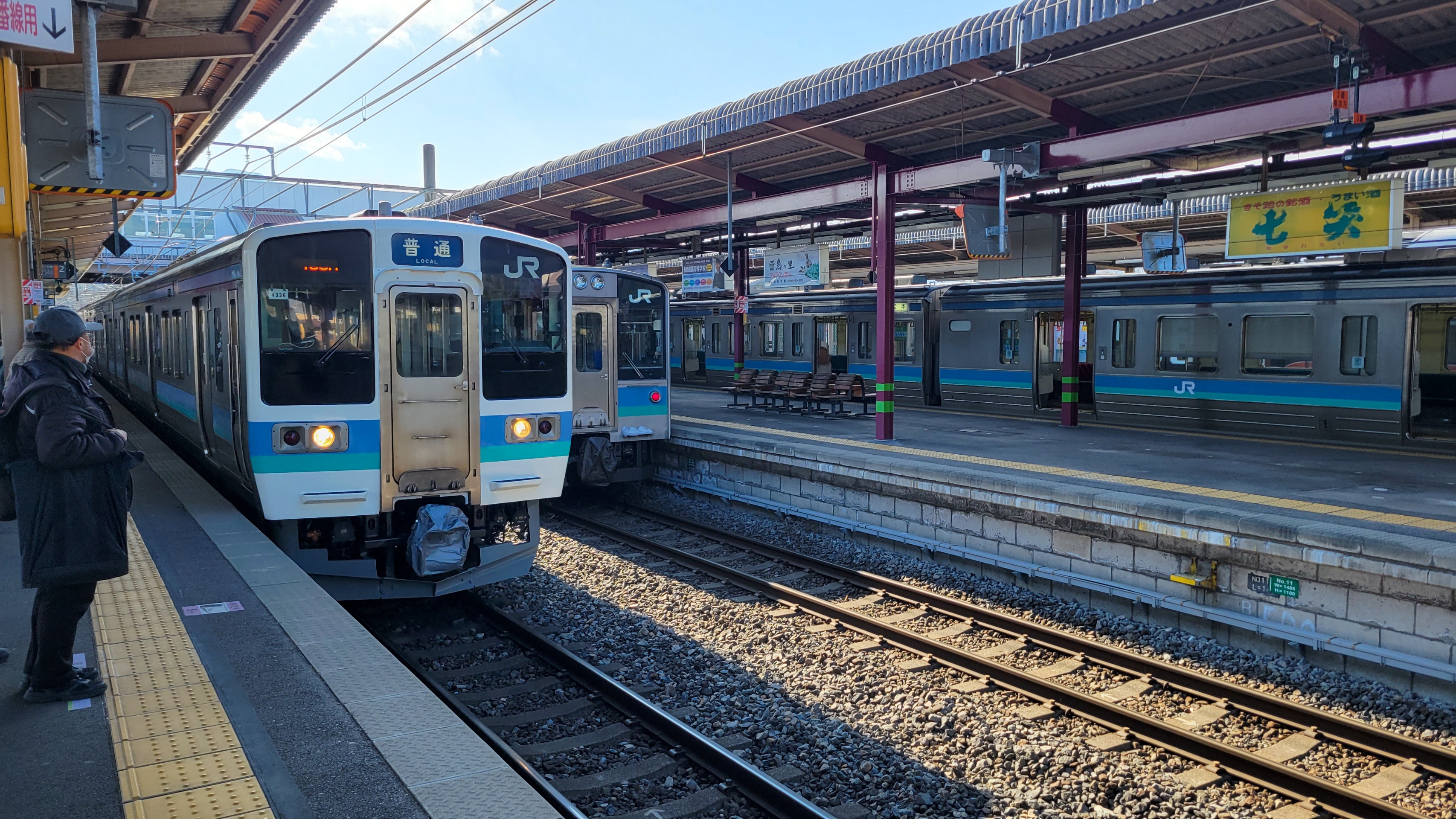 中央本線に乗り換え。新しい車両で乗り心地は良いが、ロングシート確定なので少しがっかりする。