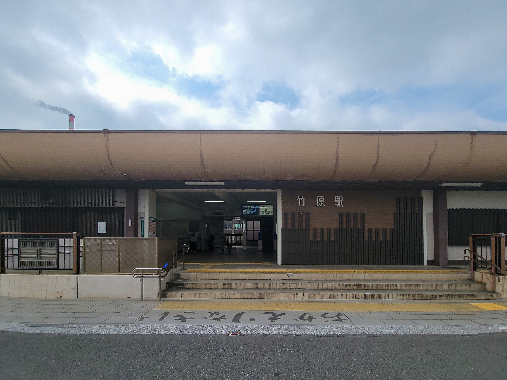 竹原駅は広島県竹原市の中心に位置し、駅舎が建築されたのは1970年(昭和45年)、観光客を迎えるにはやや質素な雰囲気です。『安芸の小京都』と呼ばれる古い町並みエリアへは徒歩10分程度。もし通常の列車ダイヤだと40分少々の時間しかなかったのですが、代行バスだと1時間10分という、まさに散策にぴったりの時間だったので向かうことにしました。