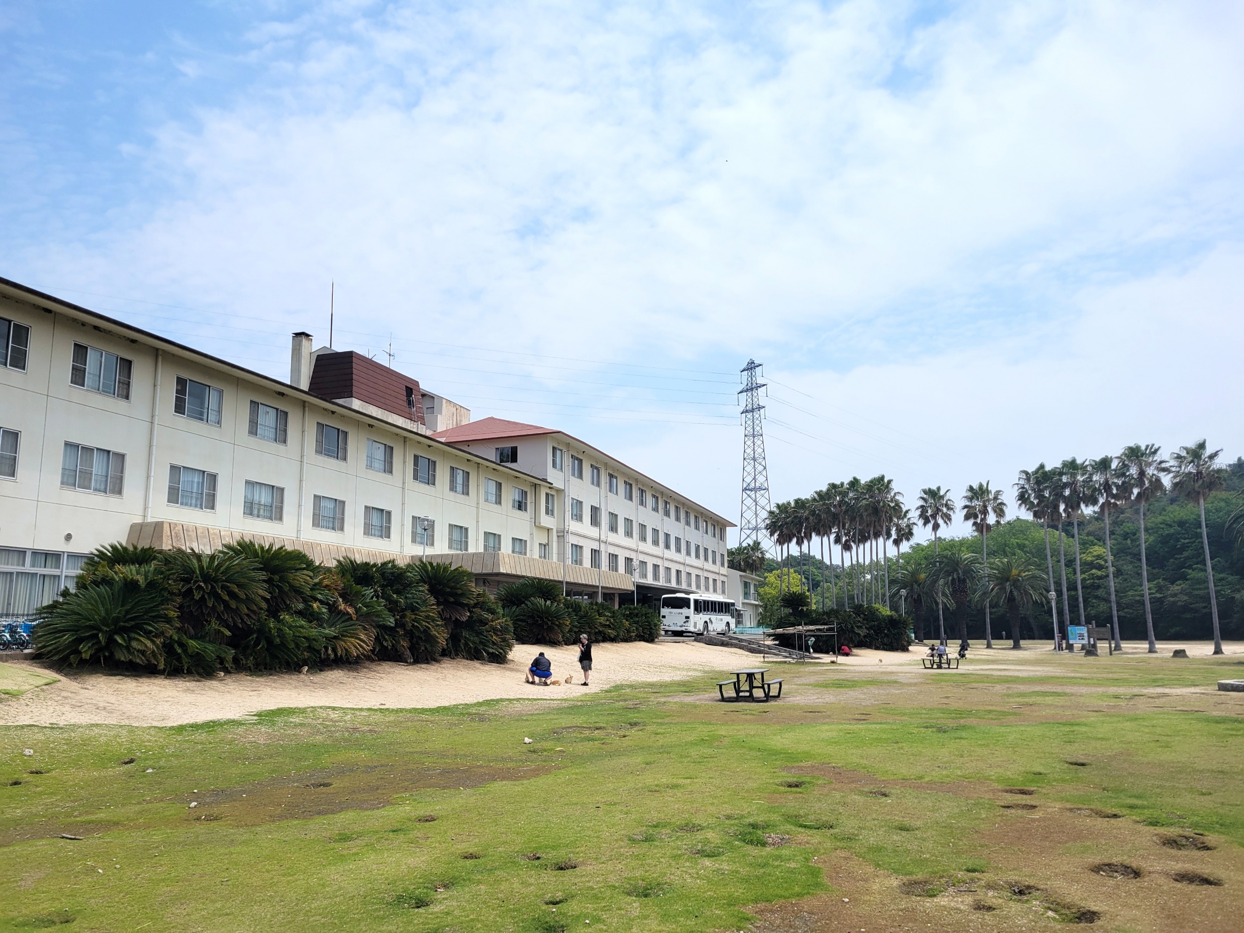島内で最大規模を誇る宿泊施設である国民休暇村大久野島は、1963年(昭和38年)に開業し、65室の客室を備えるこのホテルも、実はかつて毒ガス関連施設が存在していた跡地に建設されたものです。現在では、宿泊やレジャーを楽しむ多くの観光客で賑わい、島の平和な姿を象徴する場所となっています。