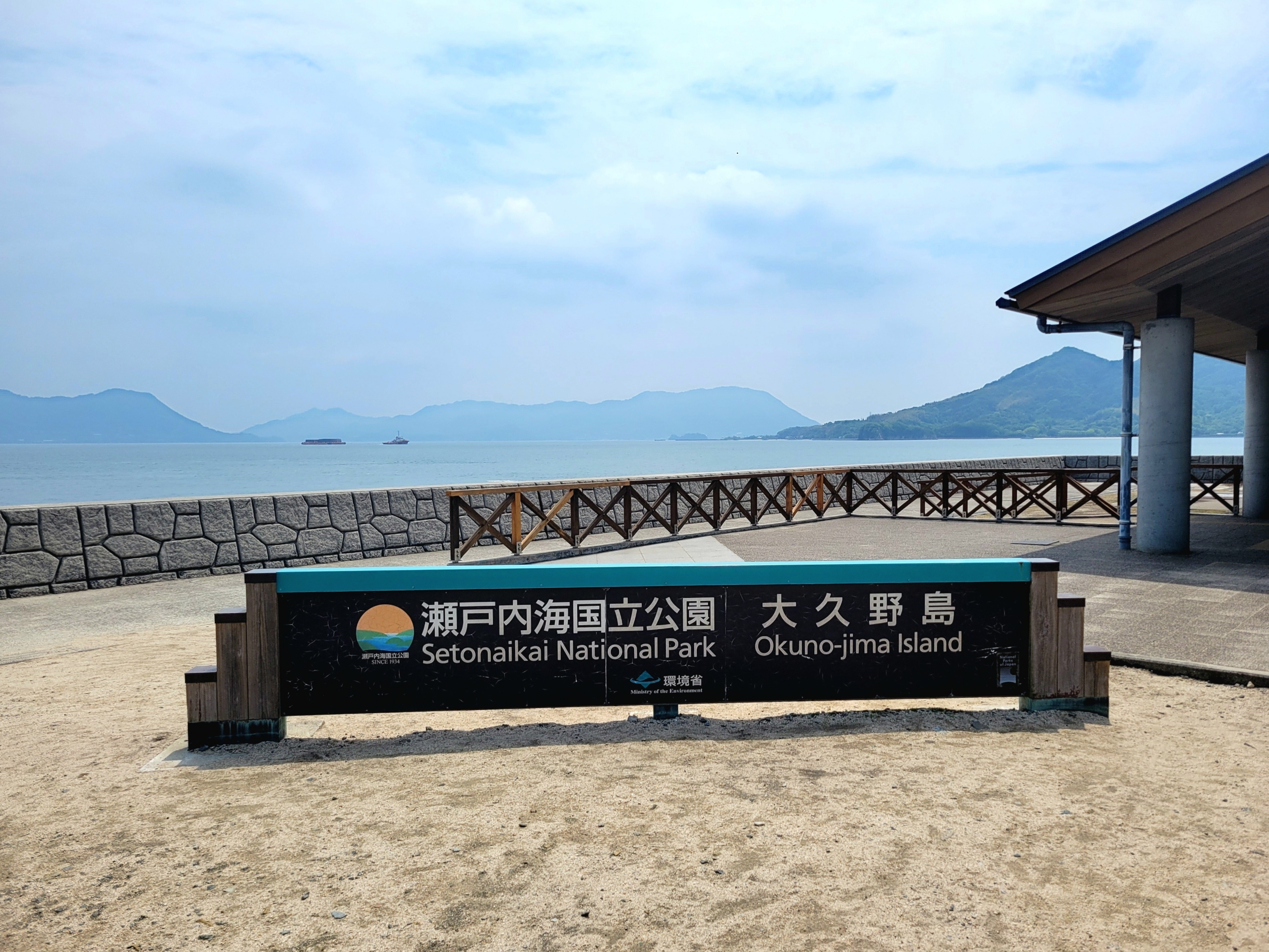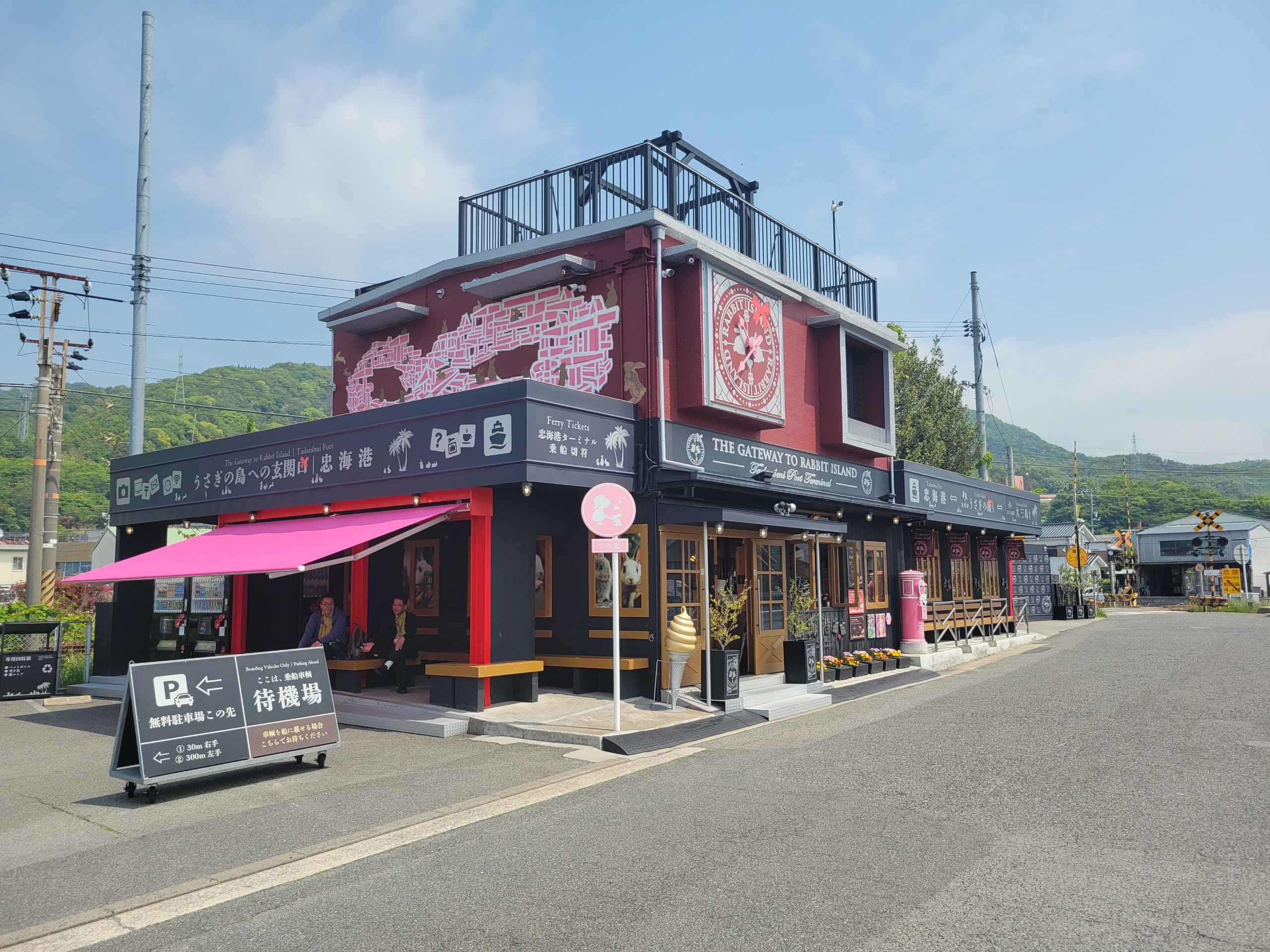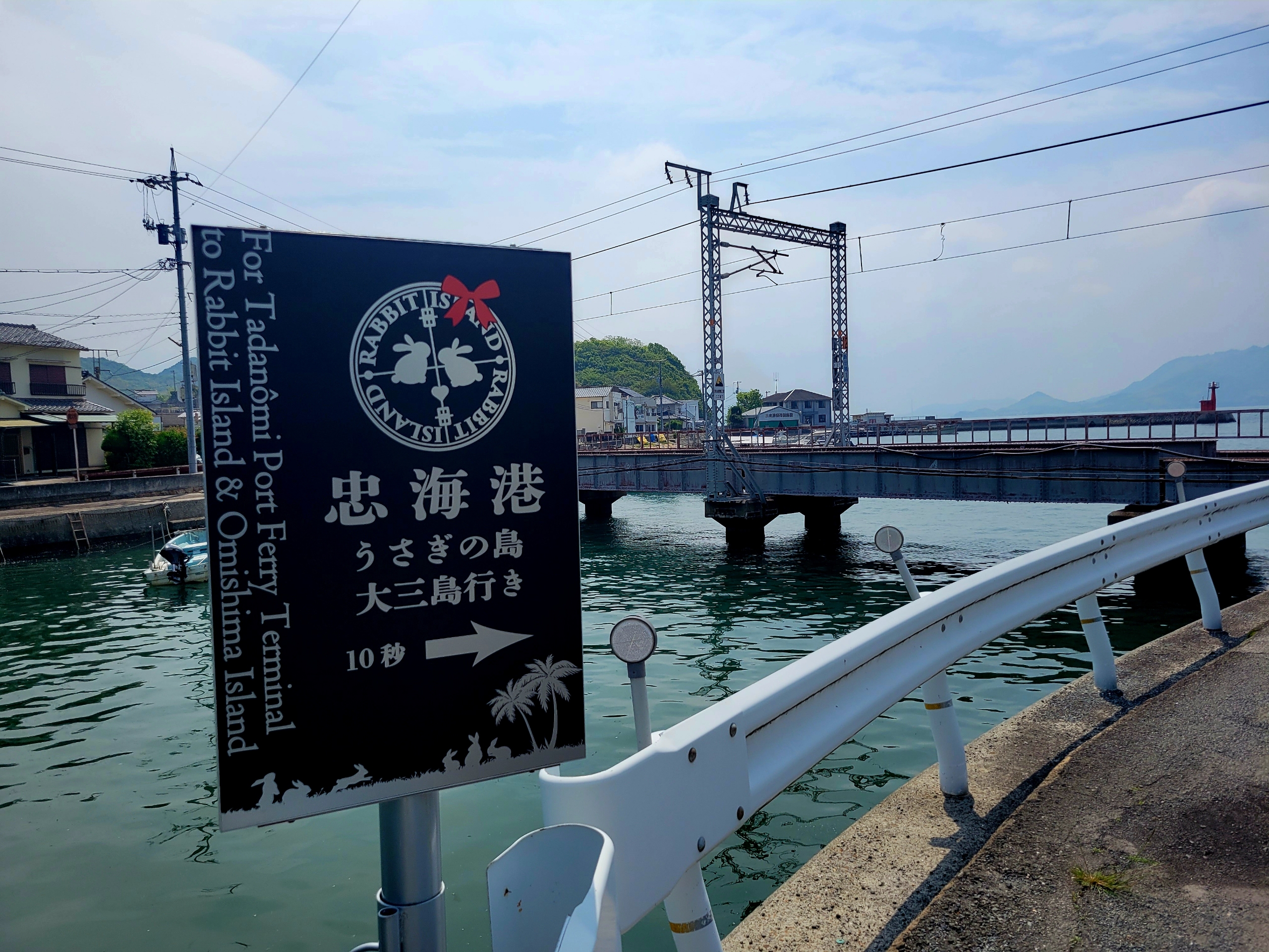 忠海駅から忠海港までは徒歩5分ほど。『大久野島』という正式名称よりも『うさぎの島』という通称が強くアピールされていることに気づかされますね。それだけ、うさぎがシンボルとして定着し、多くの観光客がその目的で訪れていることが伺えます。