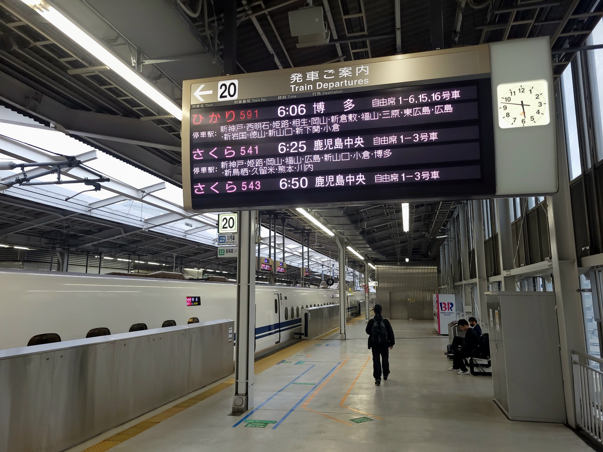 福山駅までの所要時間が早かったため、停車駅を気にせずに「ひかり591号」を予約しました。しかし、実際には新尾道駅と厚狭駅しか通過しないほぼ各駅停車で、「こだま号」のようでした。しかし、ひかり591号は乗車区間内で他の列車に追い抜かれることがなかったので、比較的早く感じられました。