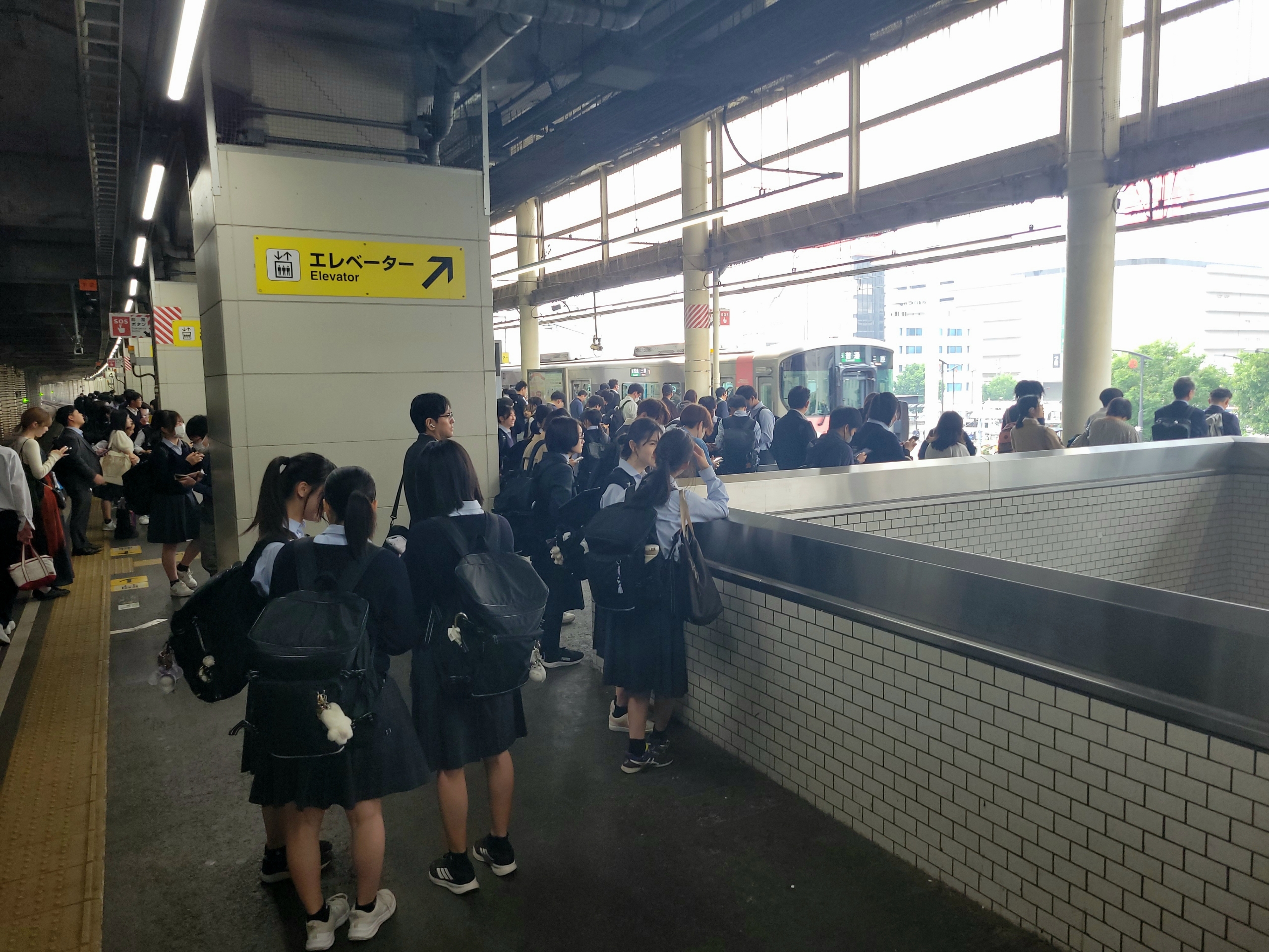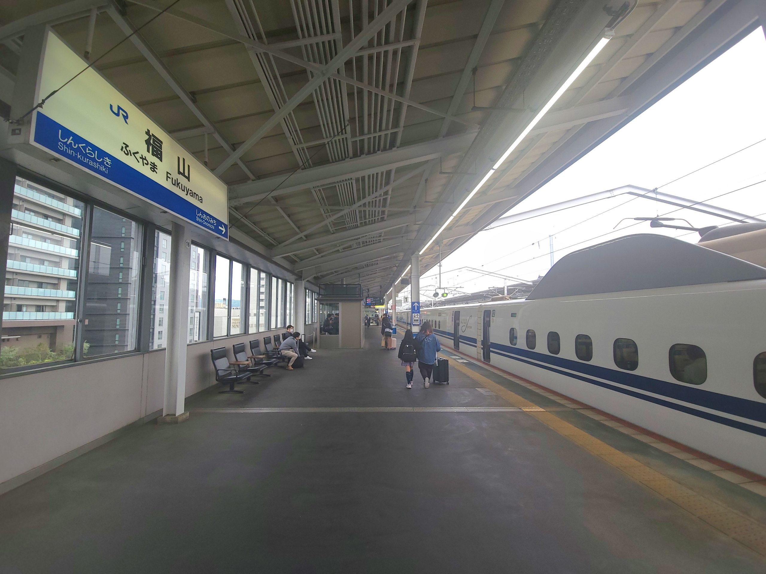 ちょうど通学時間帯だったようで、駅のホームは学生さんで賑わっていて、電車もぎゅうぎゅうになるかなと思いました。でも、福山駅でかなりの方が降りたので、乗ってみると意外と車内は余裕がありましたね。さらに次の備後赤坂駅でも多くの学生が下車したおかげで、早めに座席に座ることができました。