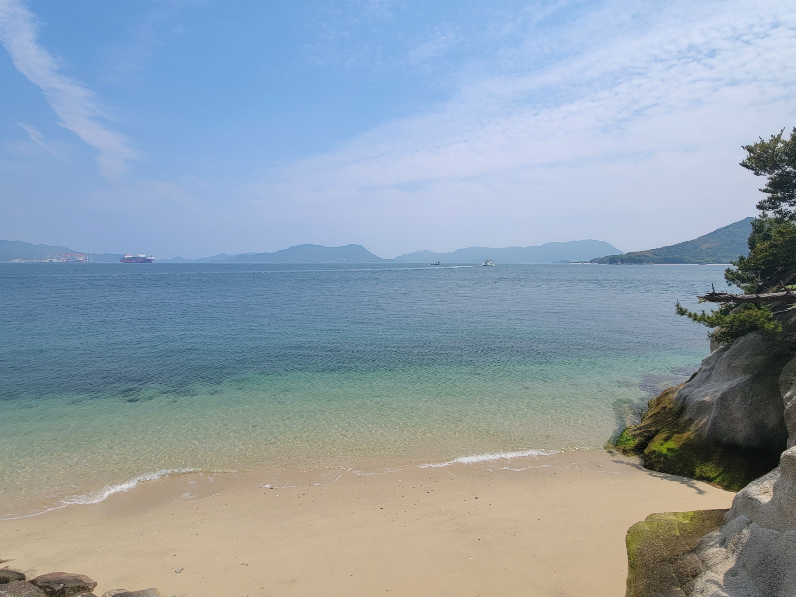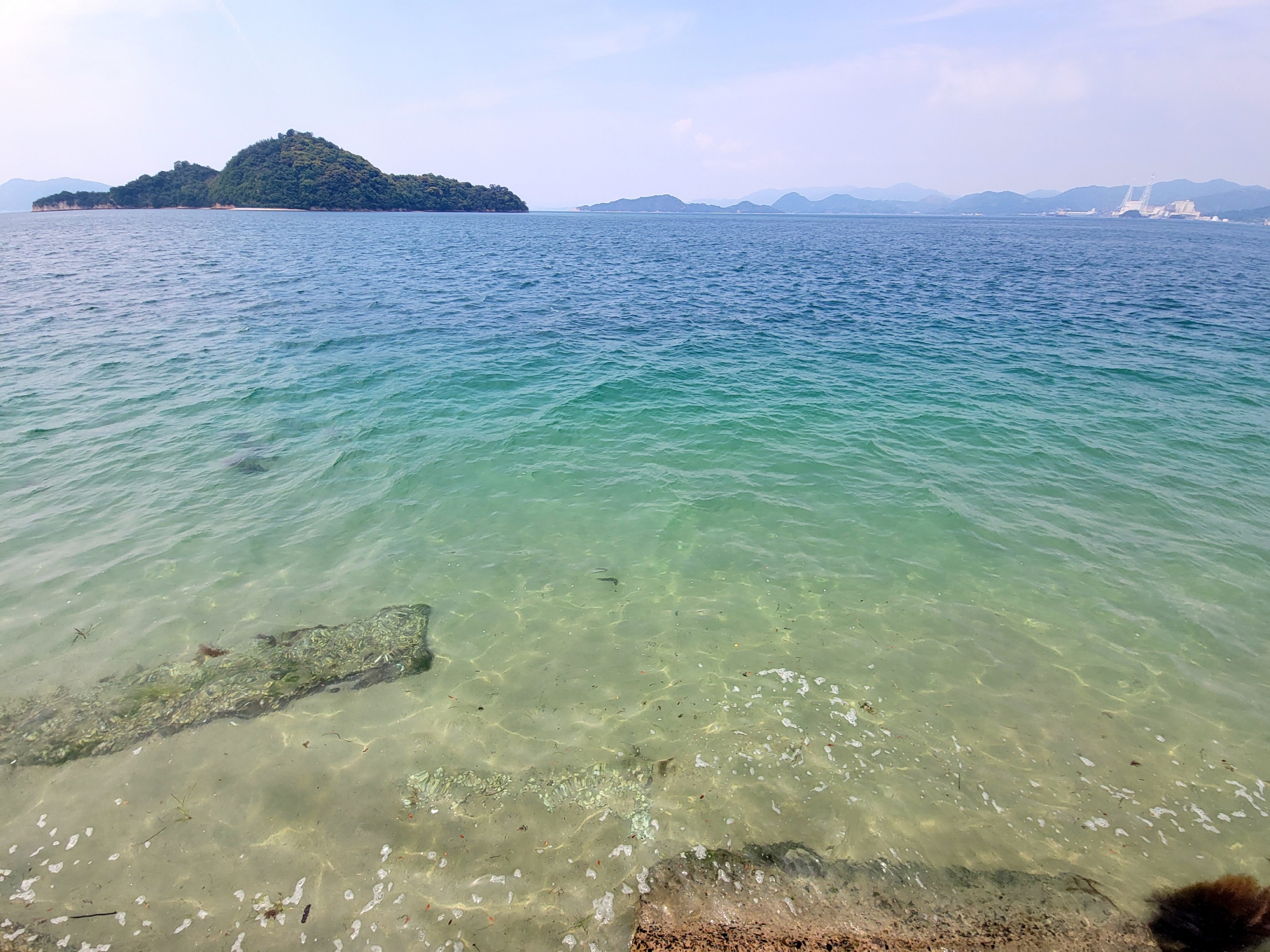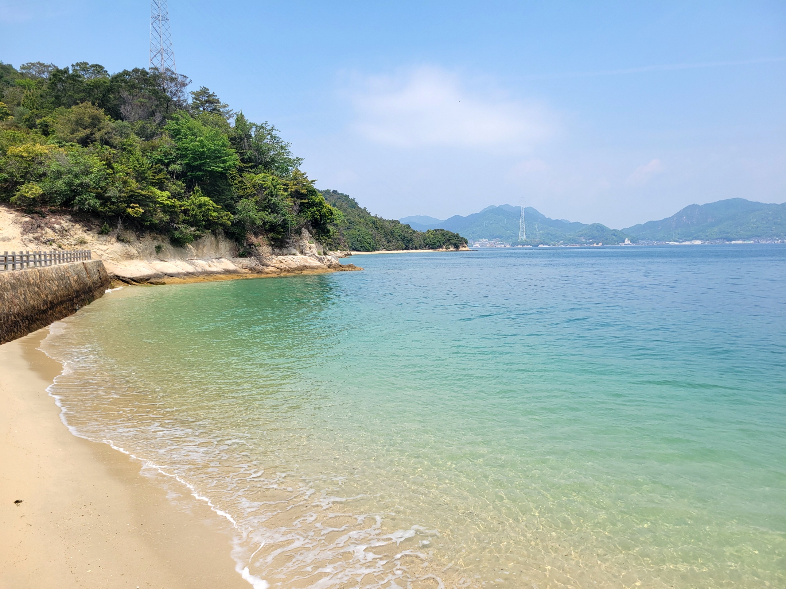 第2桟橋近くの発電所跡前の砂浜です。瀬戸内海の海もなかなか綺麗ですね。