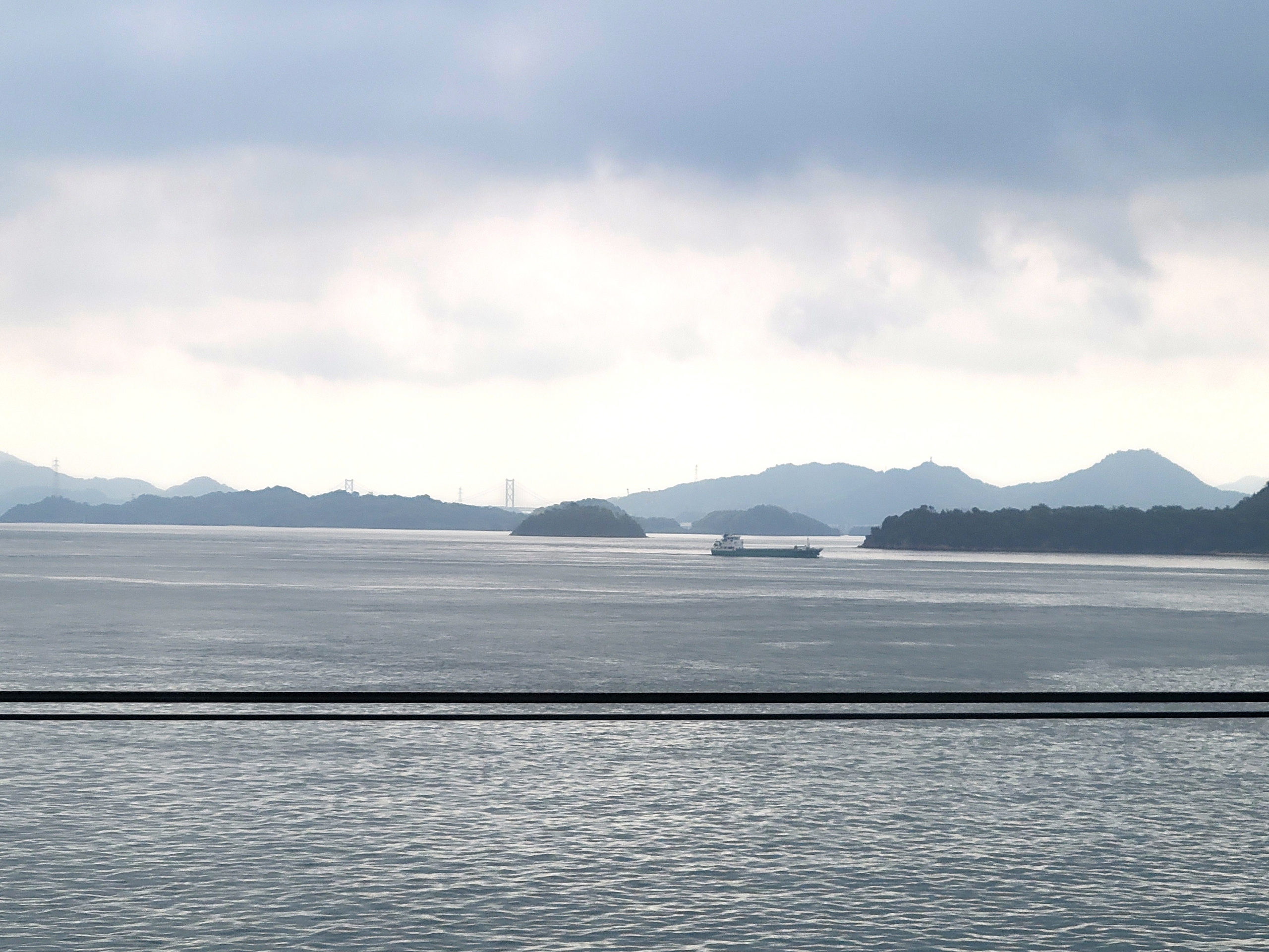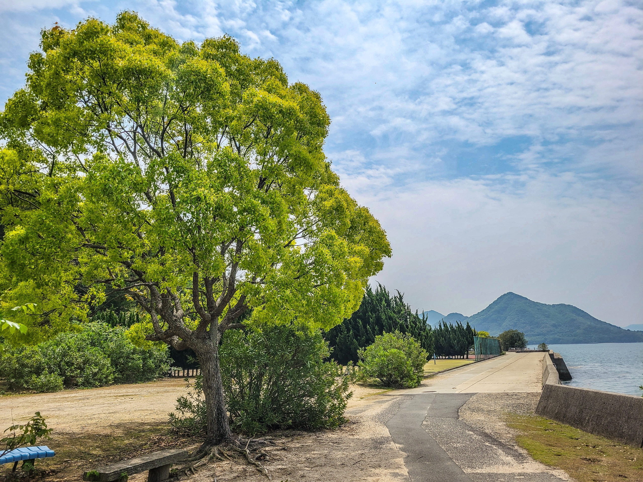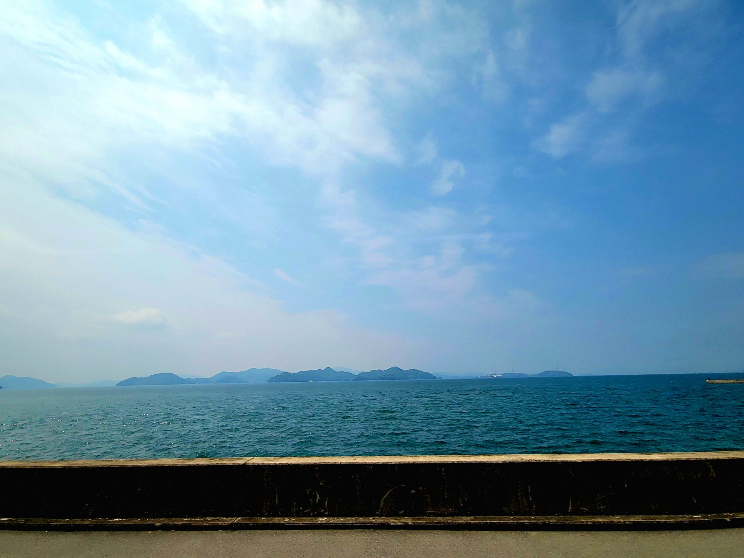 島の東側から北側にかけて続く周回道路は、比較的高い場所を通っているため、時折視界が開け、美しい瀬戸内海の景色が目に飛び込んできます。