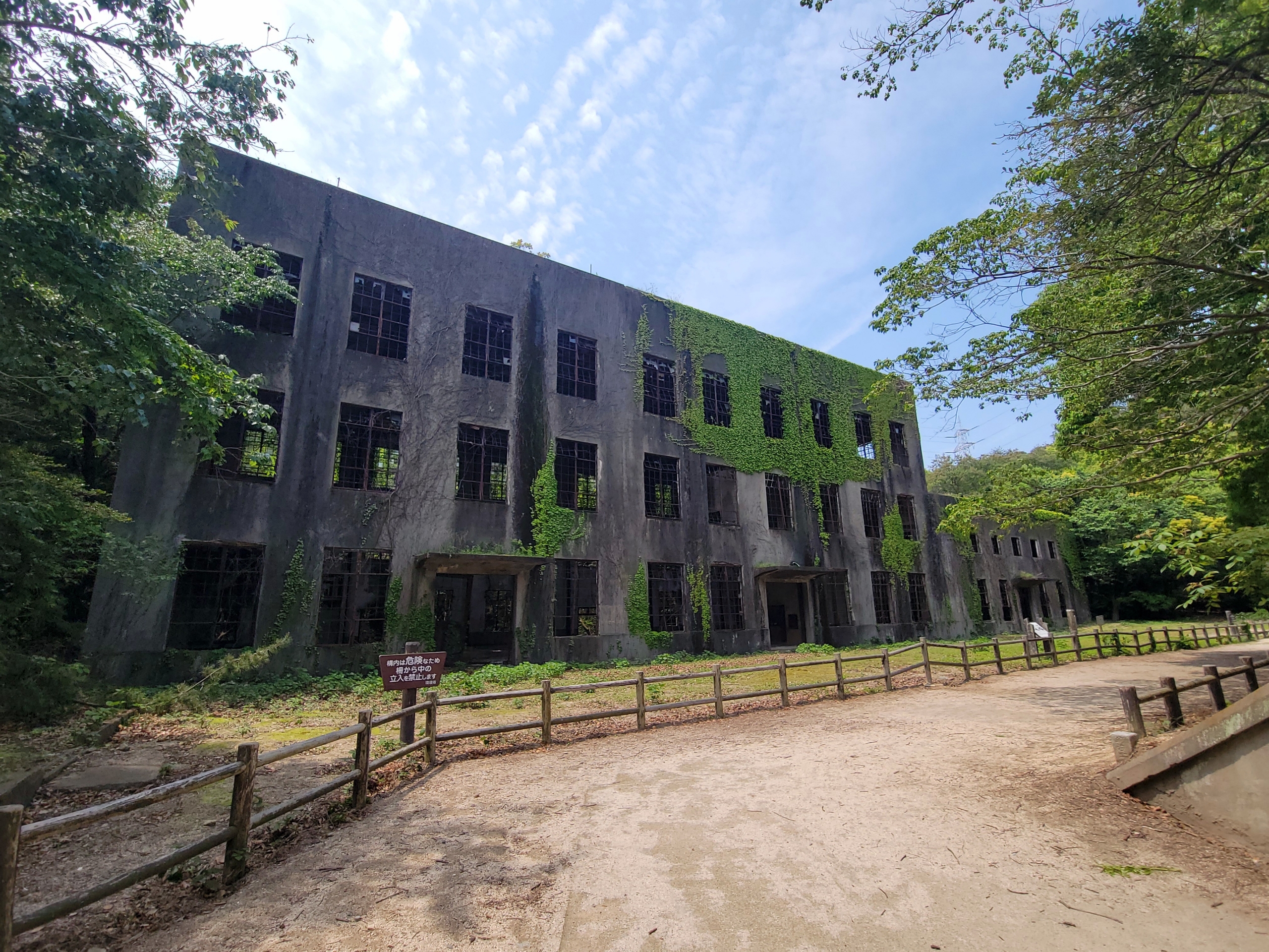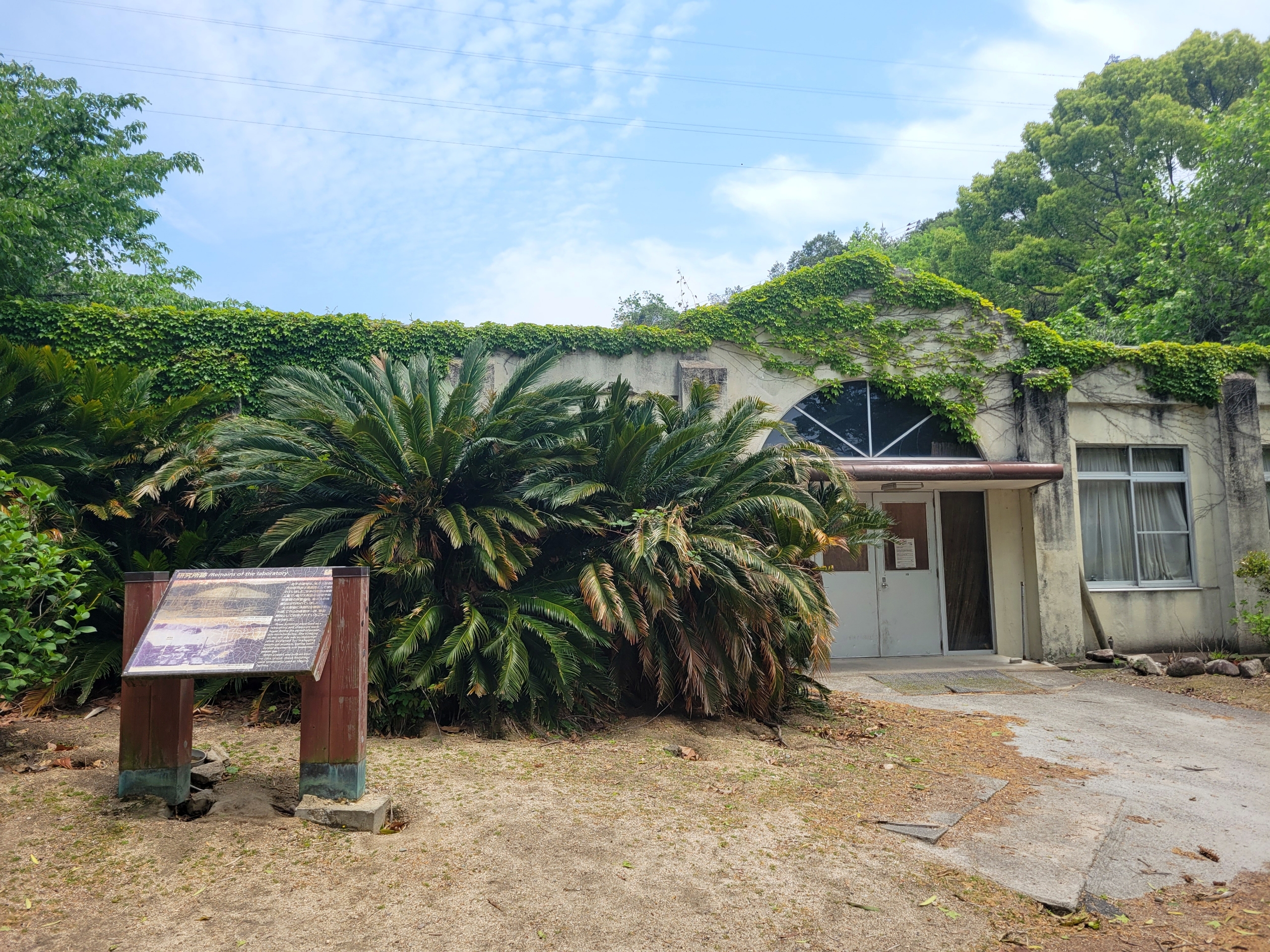 研究室跡。この研究室は、新たな毒ガスの開発や既存の毒ガスの改良、そして品質管理のための分析が行われていた、いわば島の頭脳部でした。建物自体は現存していますが、内部はすでに当時の面影をほとんどとどめていません。隣接する検査工室跡は、製造された毒ガスの効力や安定性を確認するための最終的な試験が行われていた場所です。ここで行われたのは、開発された毒ガスが狙い通りの効果を発揮するか、あるいは予期せぬ変化を起こさないかといった、極めて重要な「毒性の検証」でした。