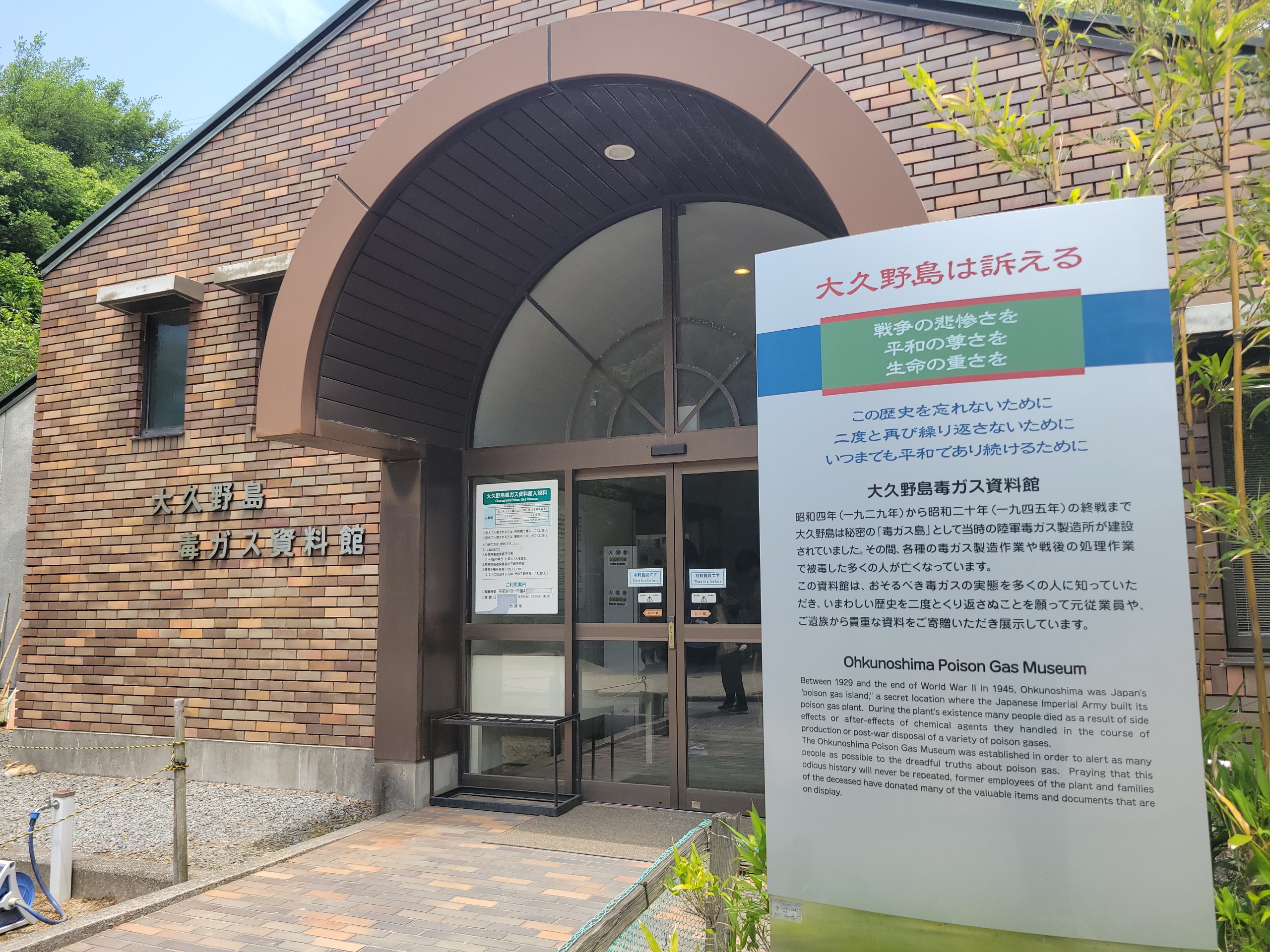 島内には当時の毒ガス製造施設の跡(発電所跡や毒ガス貯蔵庫跡など)が数多く残されており、その悲しい歴史を今に伝えています。1988年(昭和63年)には大久野島毒ガス資料館が開館し、戦争の悲惨さと平和の尊さを訴え続けています。