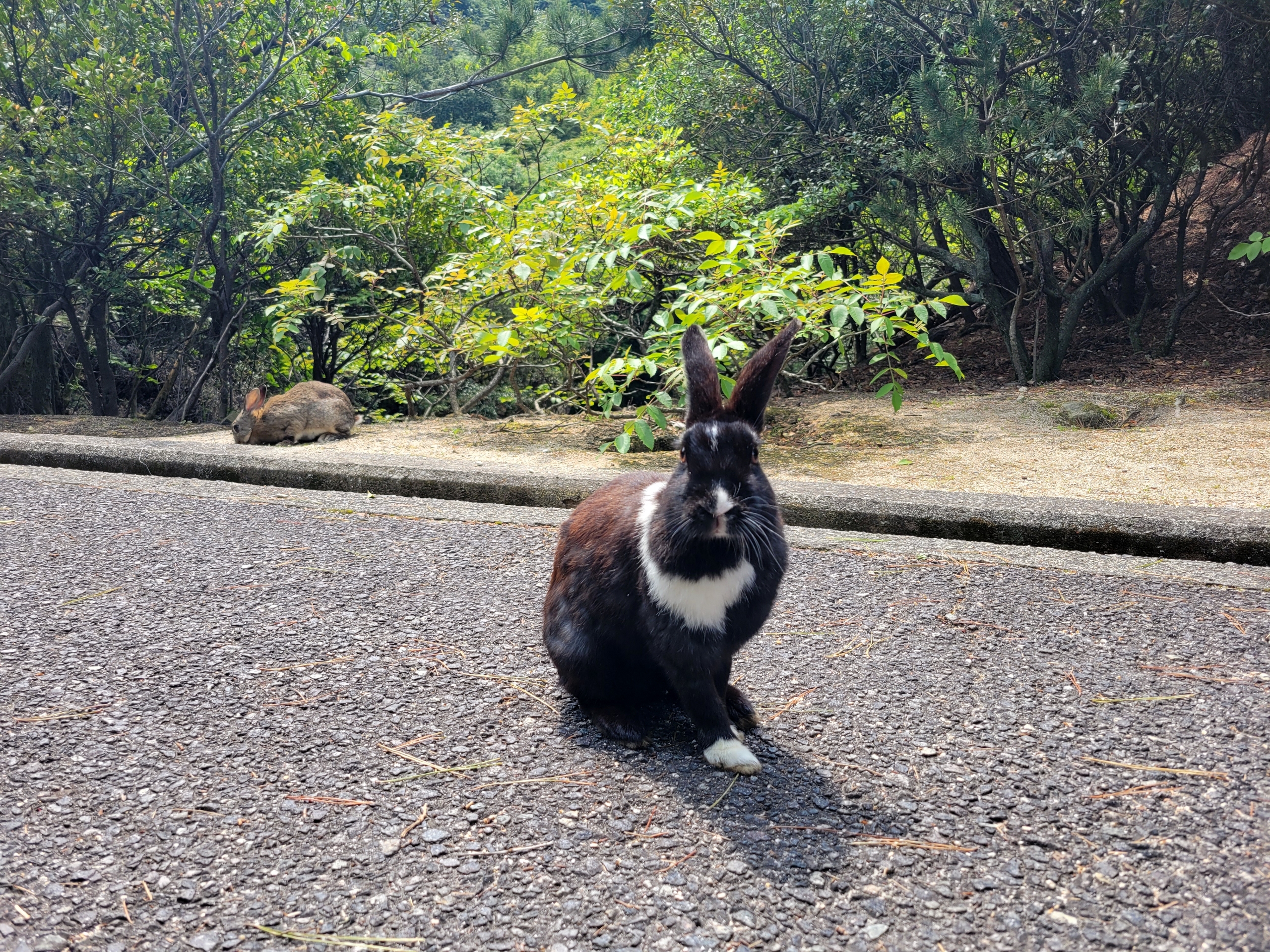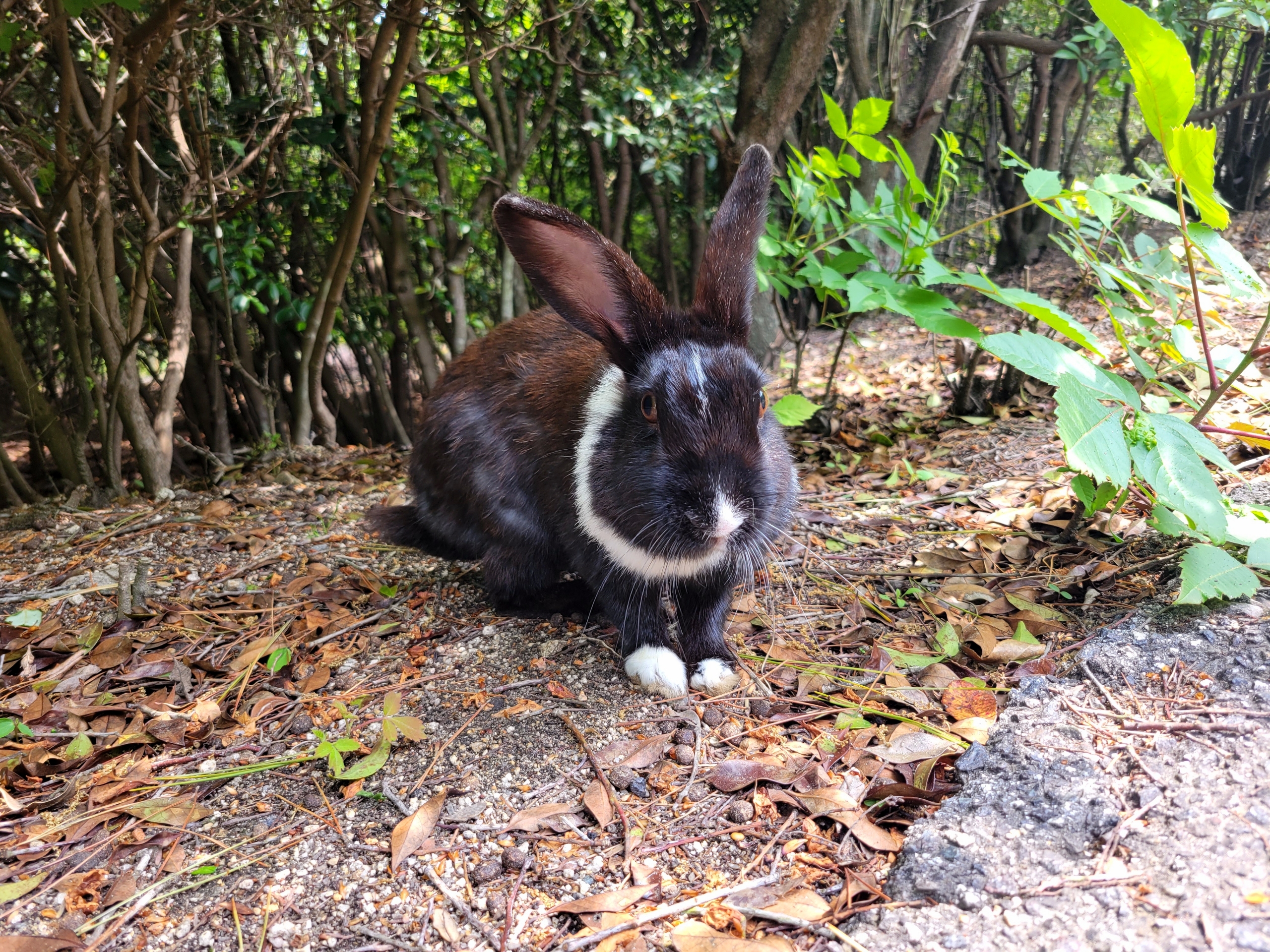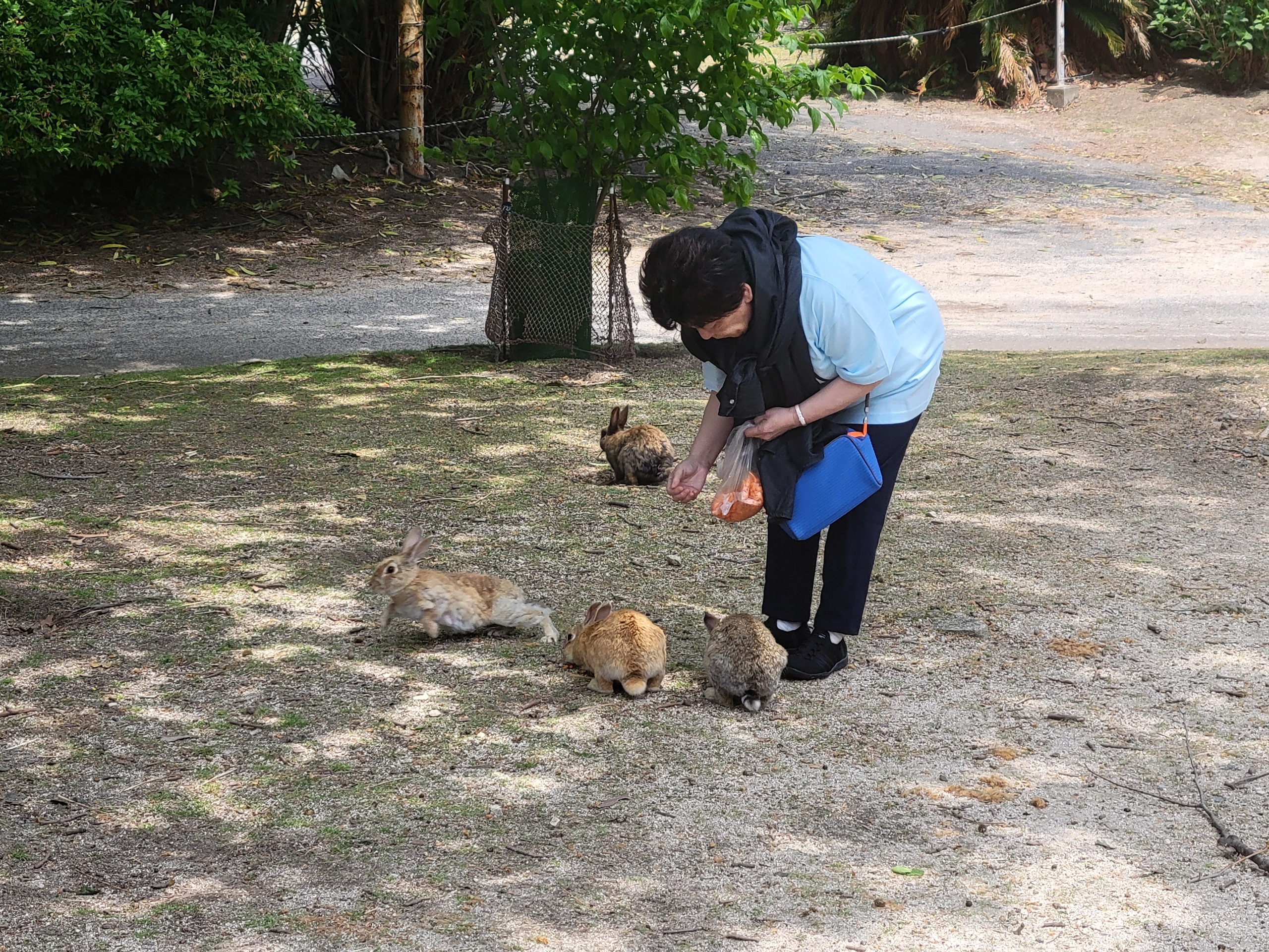 島を訪れる人の大半はうさぎの餌を持ち込んでいて、私のように手ぶらで来た人は少数派だと感じました。うさぎが多く生息しているのは、主に第二桟橋から国民休暇村にかけてのエリアです。観光客が多く、餌をもらえる機会が多いことが、そこにうさぎが集中する理由になっているようです。