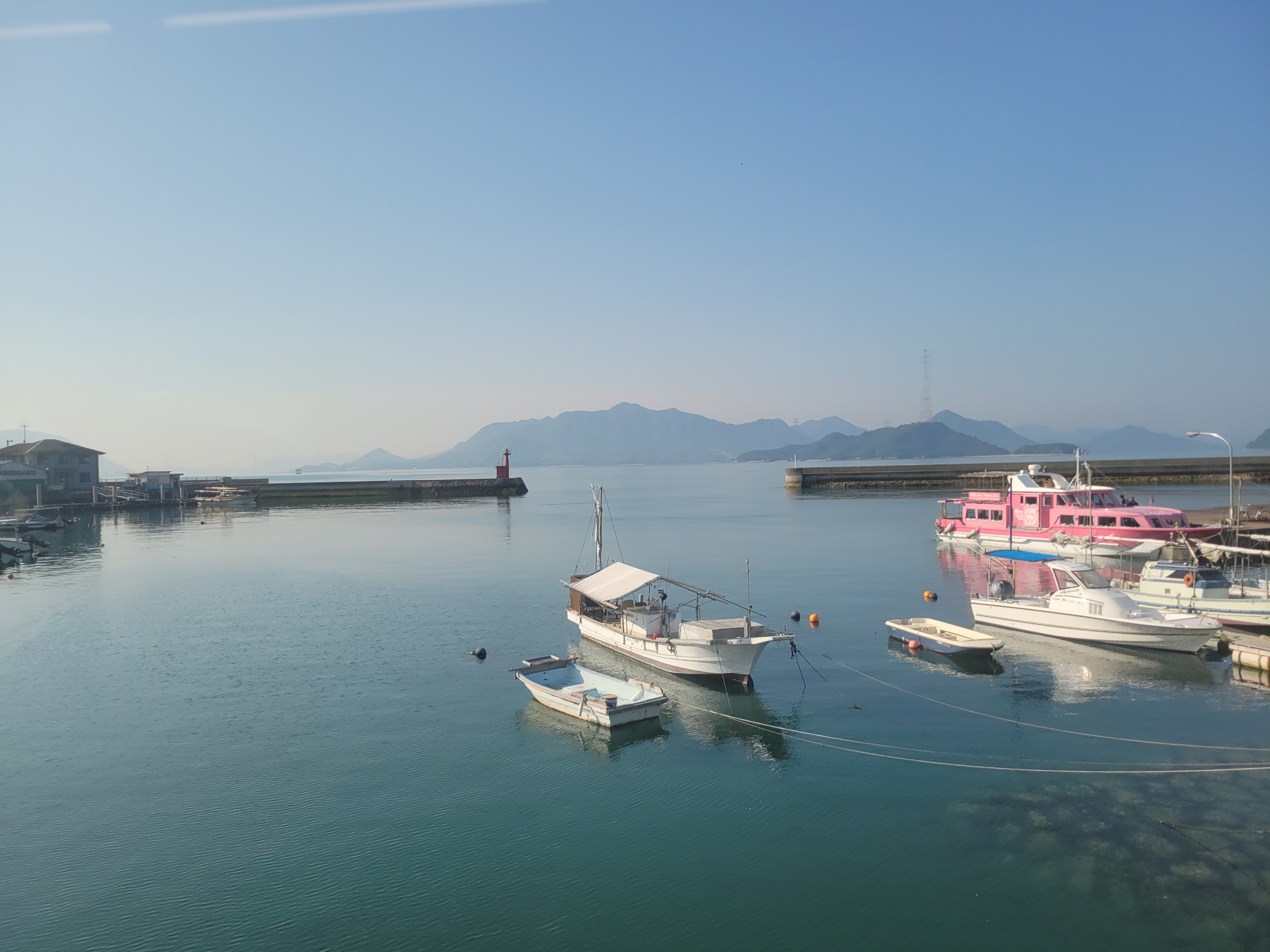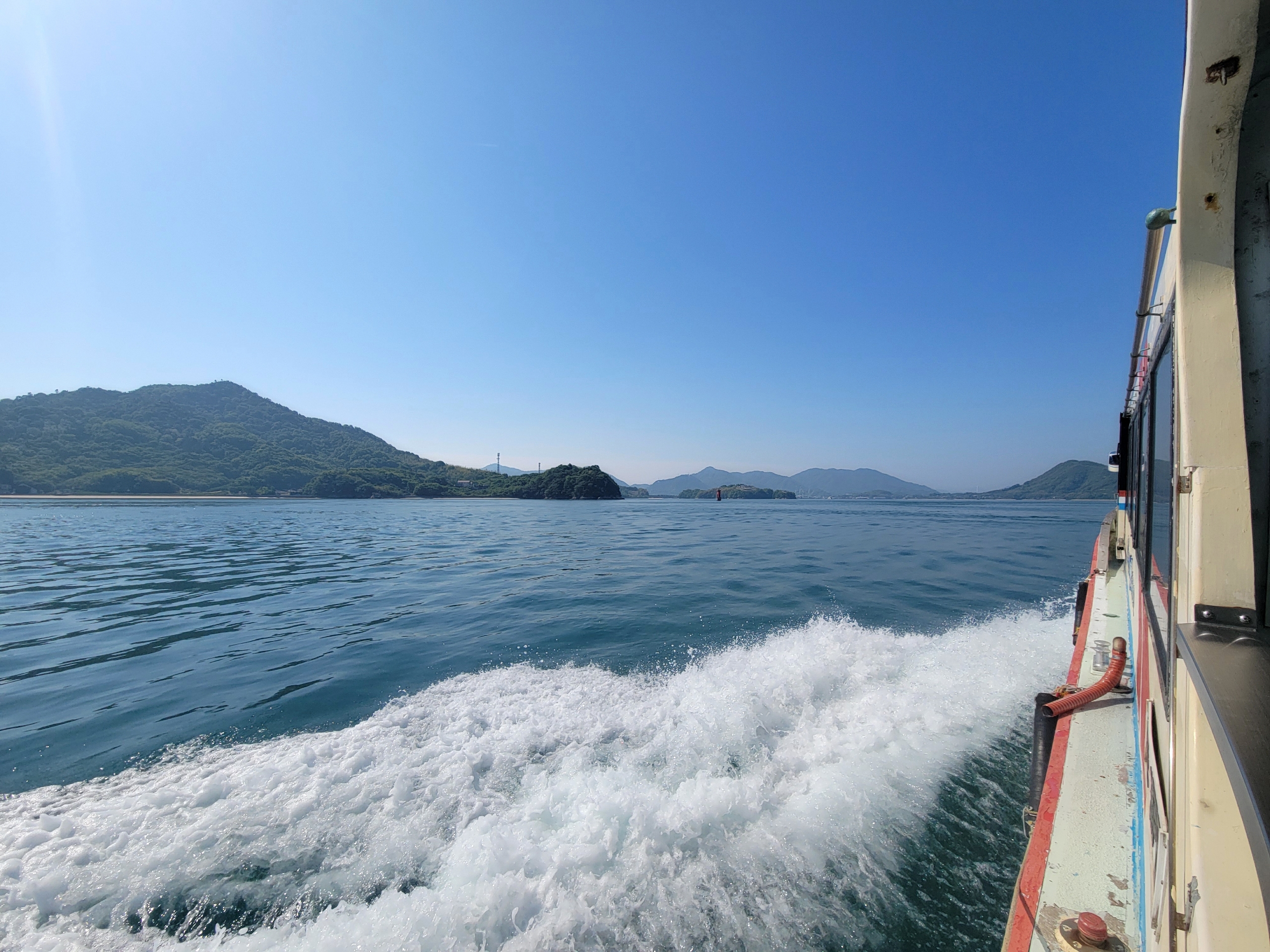 ただの移動といえばそれまでですが、これはまさに瀬戸内クルージングと呼ぶにふさわしい。朝の潮風がとても心地よく、景色も最高で、本当に気持ちいい!たった30分で到着してしまうのは、少し寂しく感じてしまいますね。