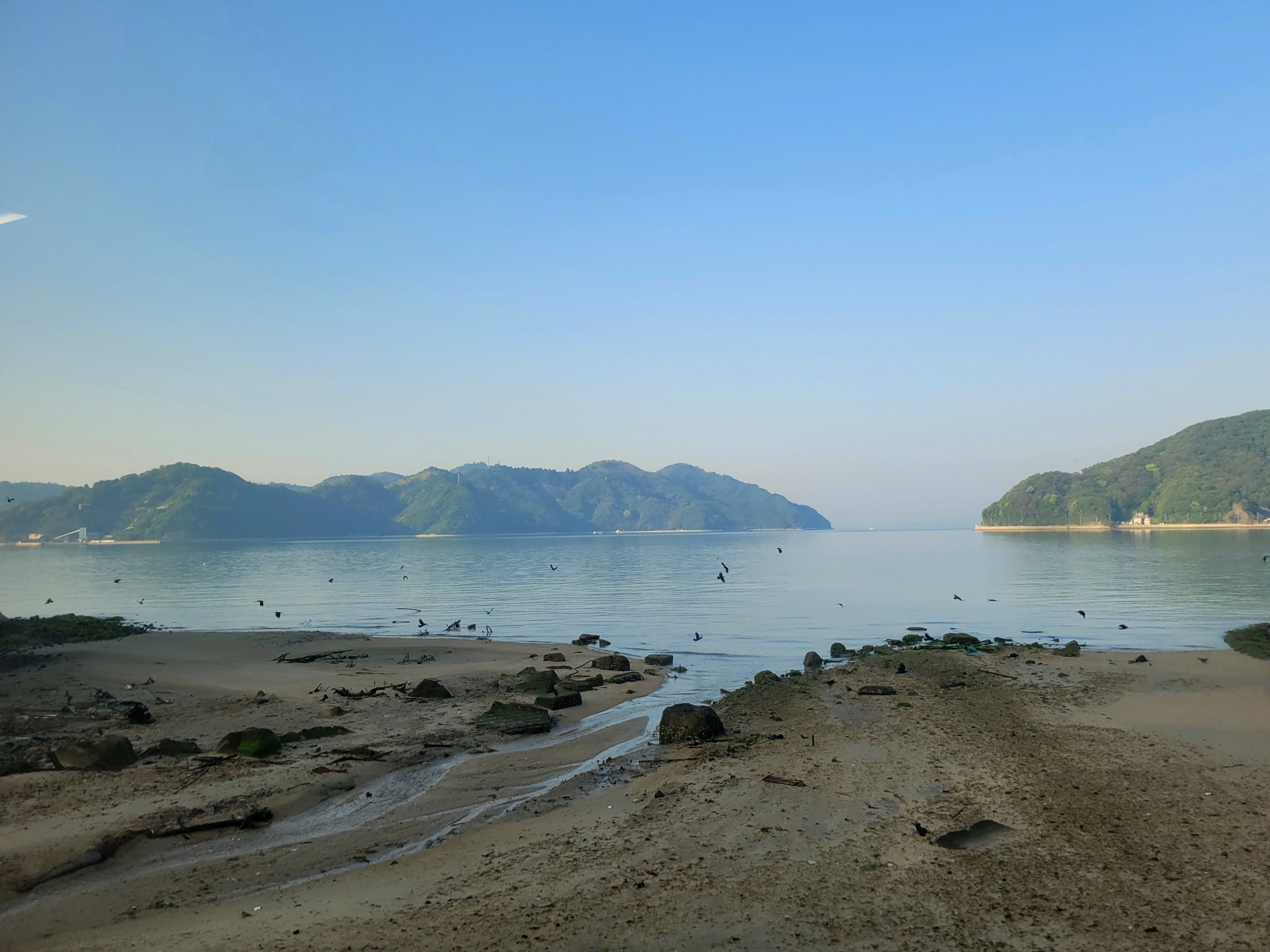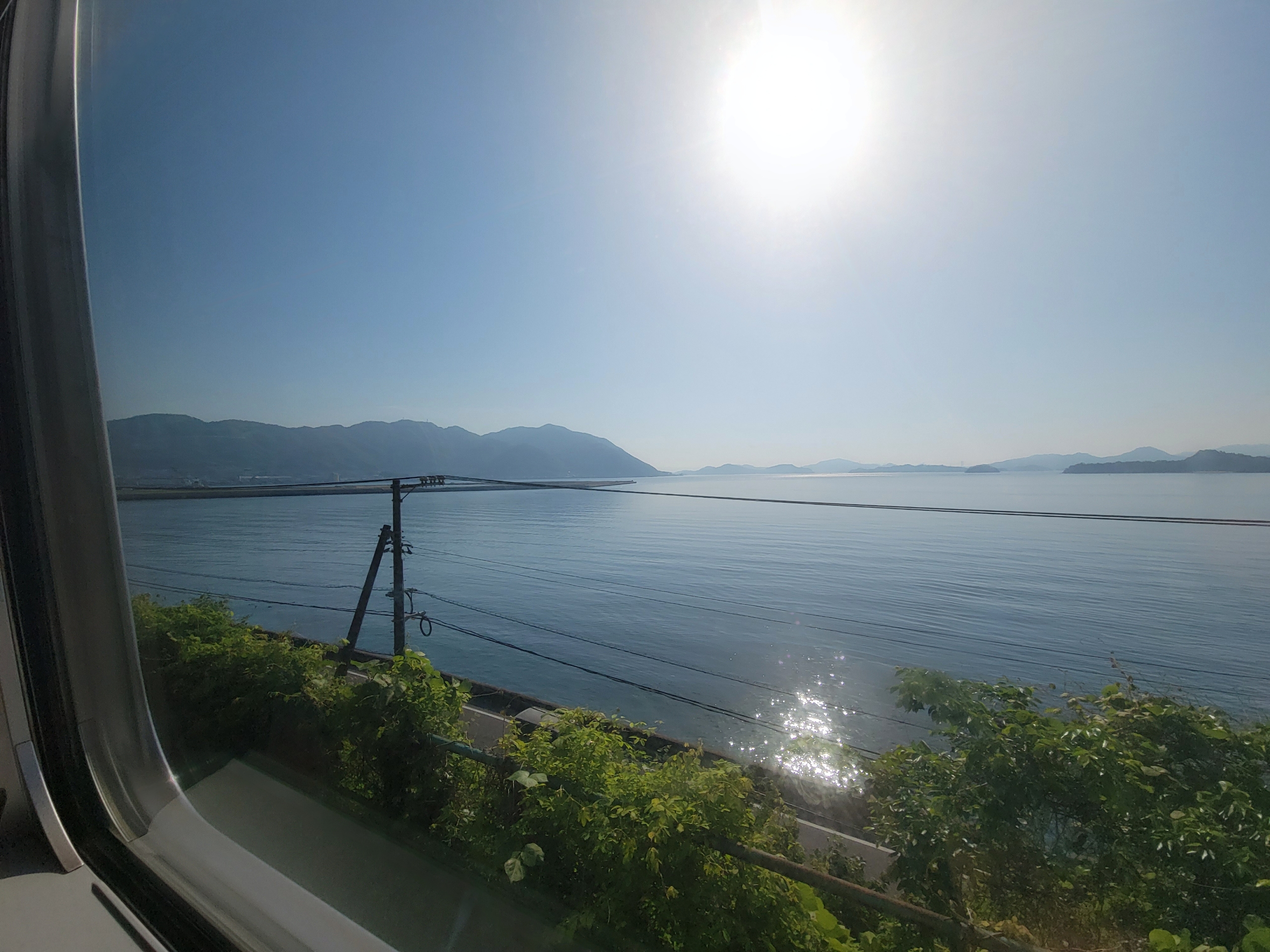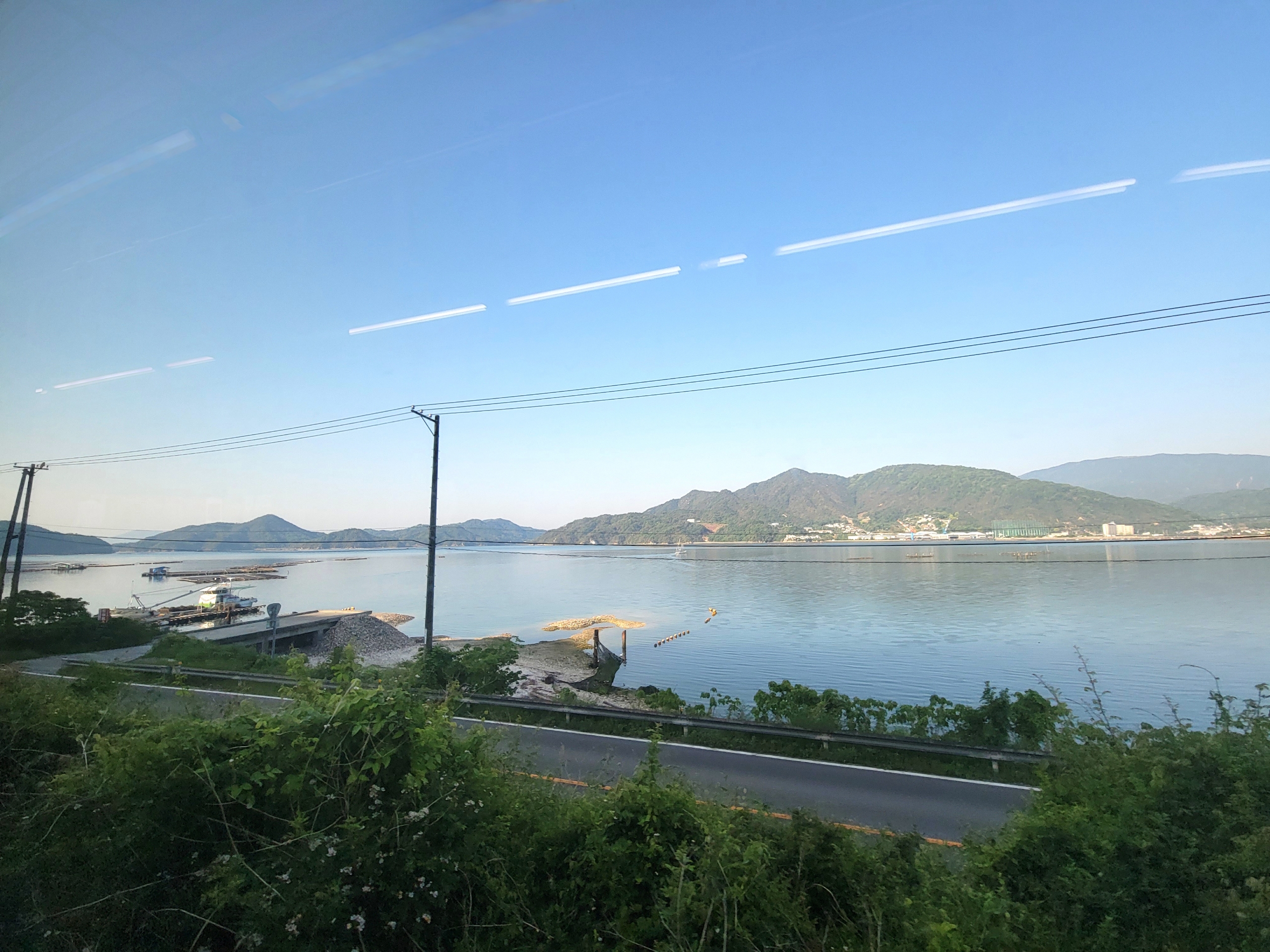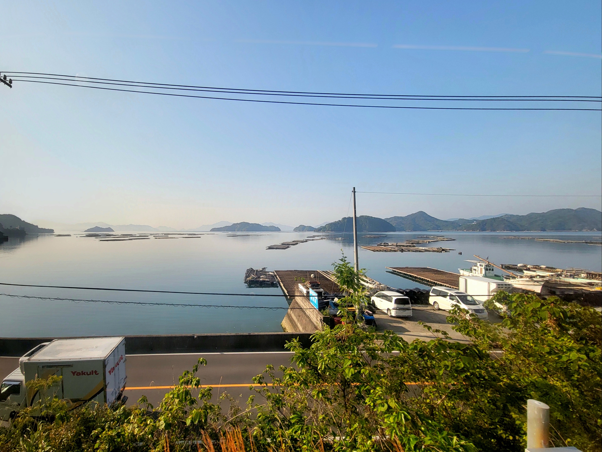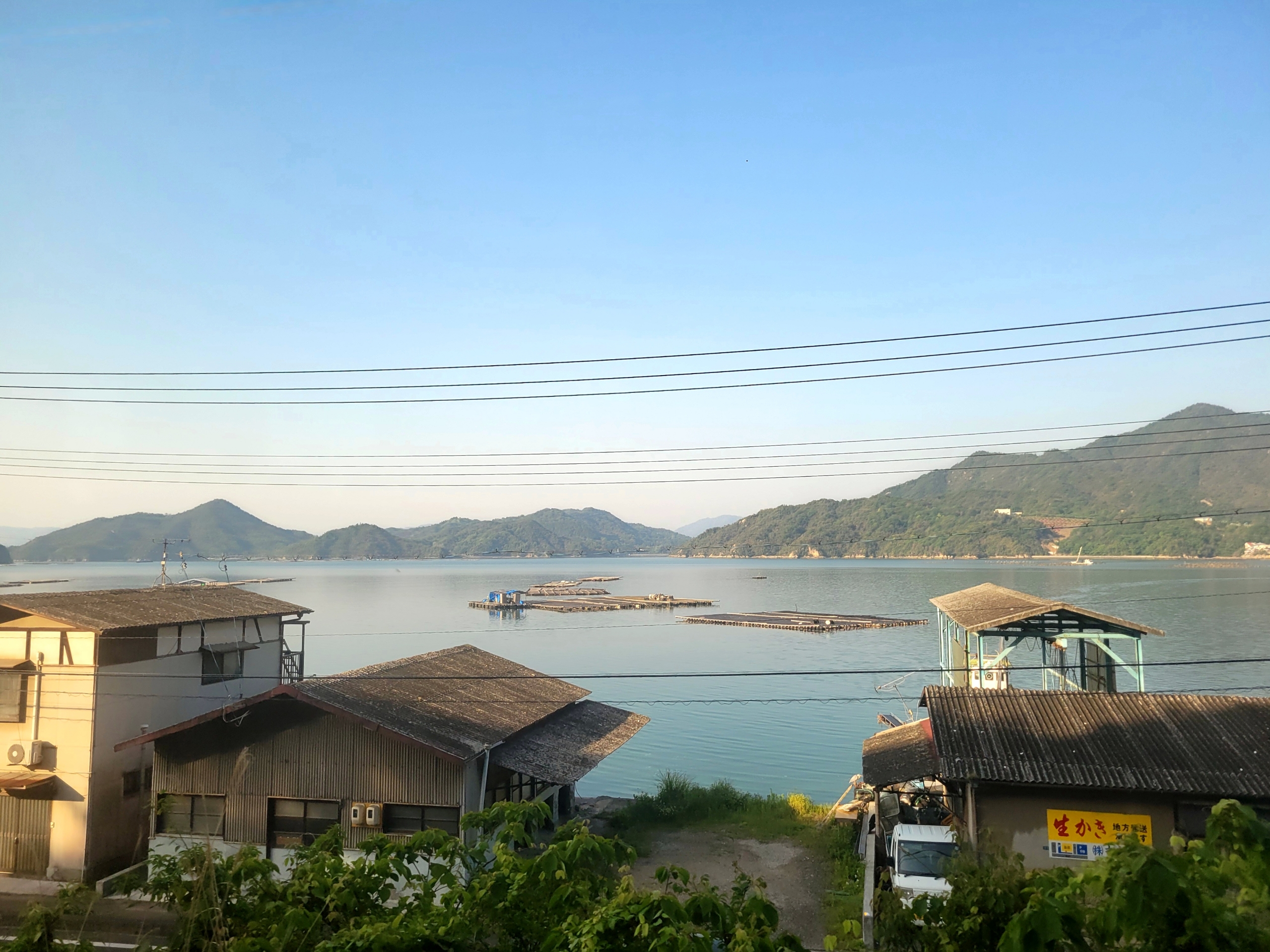 安浦駅から風早駅(かぜはやえき)にかけての区間では、多少建物が視界の邪魔になる箇所もありましたが、それでも海の景色は本当に素晴らしかったです。この区間で見えた安芸津の三津湾(みつわん)は、無数の牡蠣棚が穏やかな海に浮かび、まさに瀬戸内海らしい風光明媚な風景を心ゆくまで堪能することができました。
