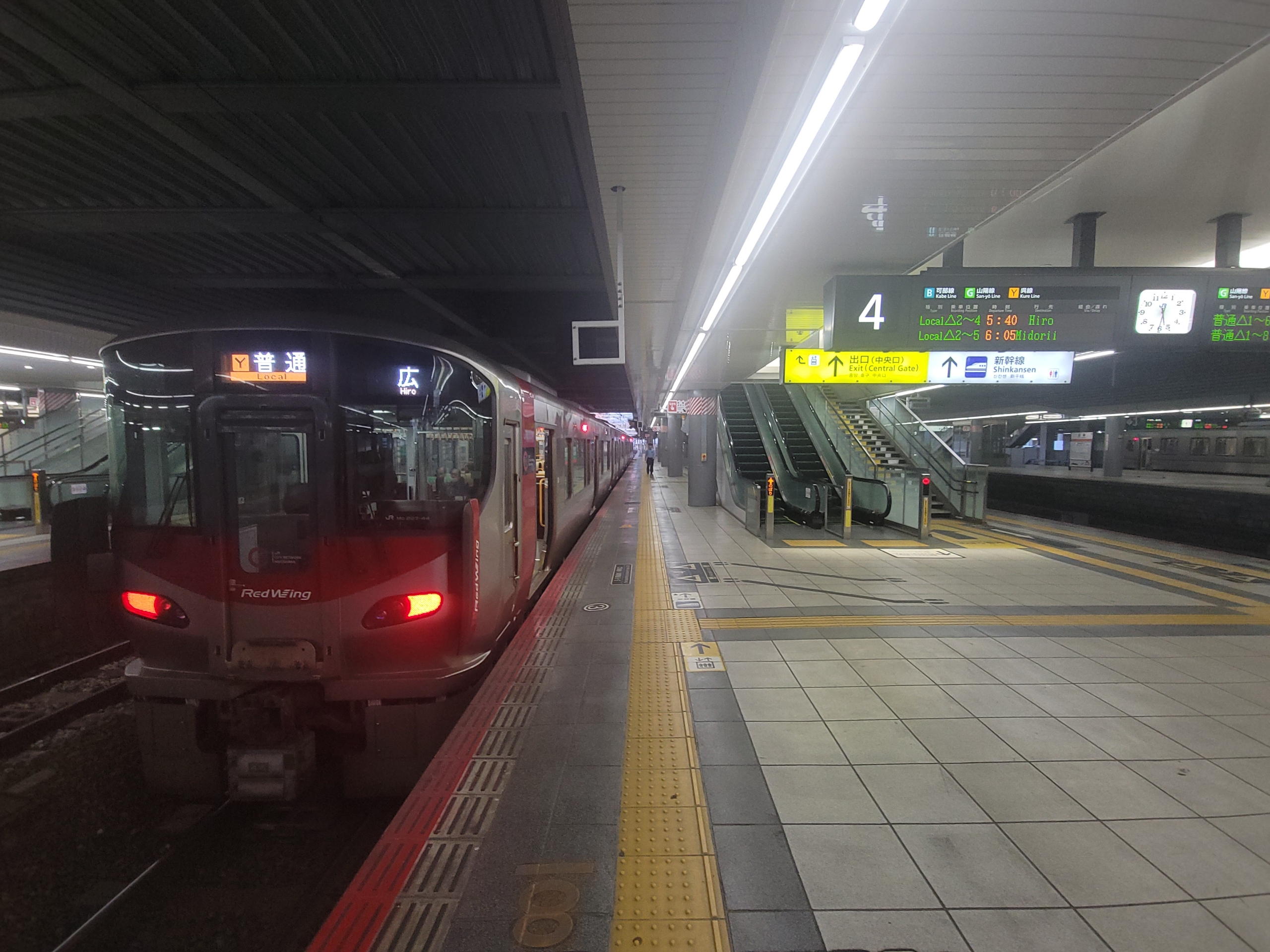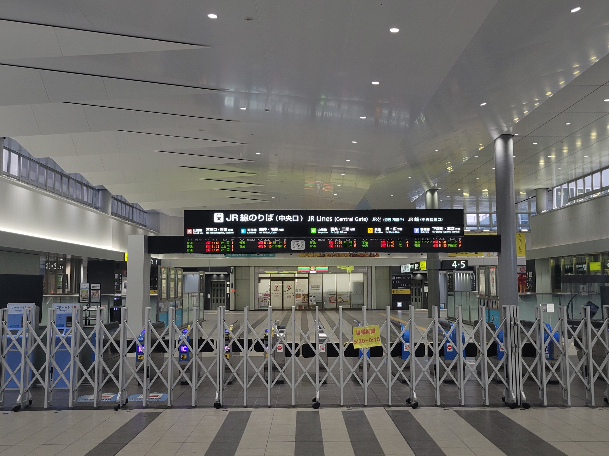 広島駅の改札は午前5時30分オープンなので、まだ開いていませんでした。日の出が早い時期だと、この時間は少し遅く感じてしまいますね。