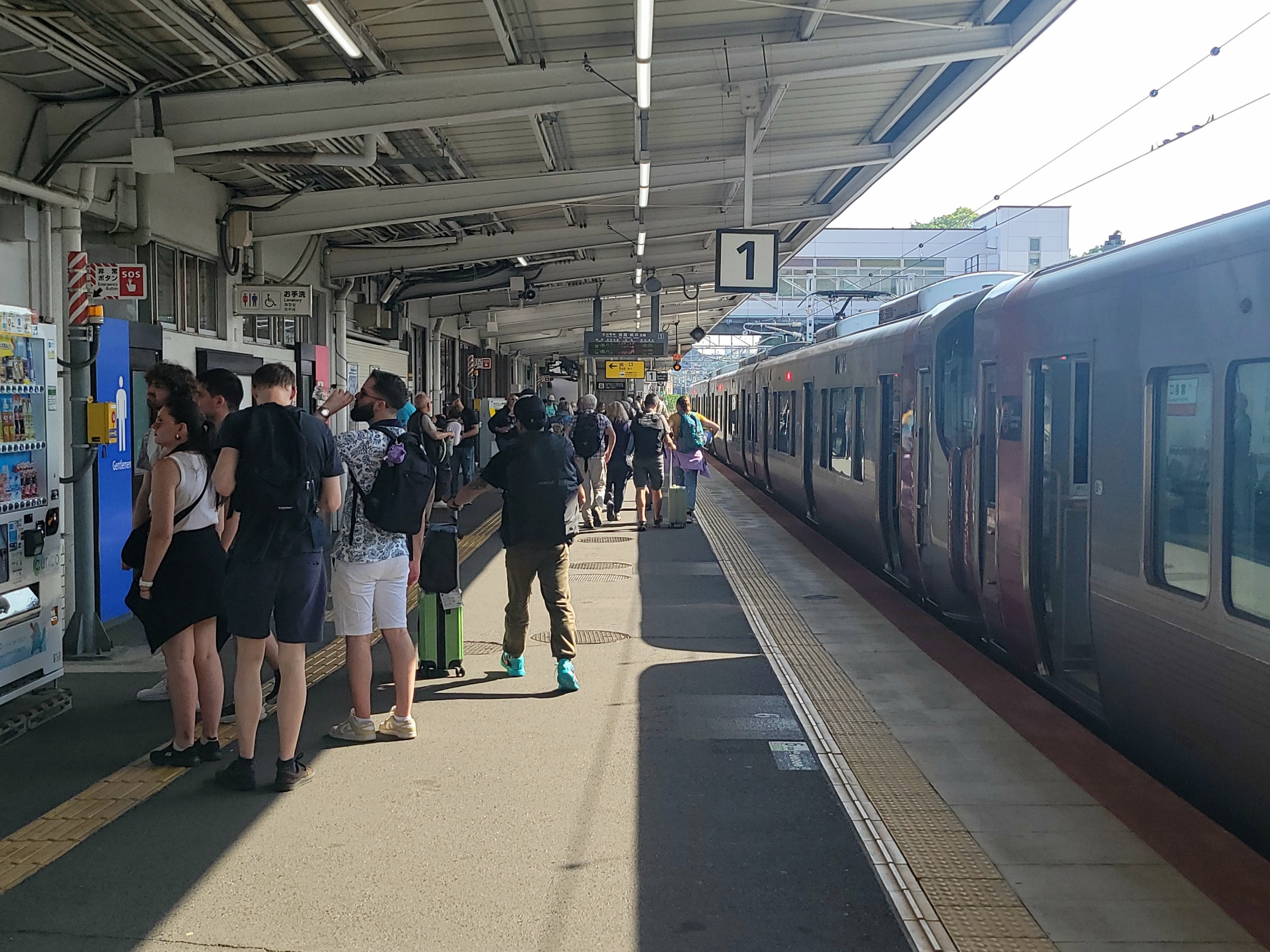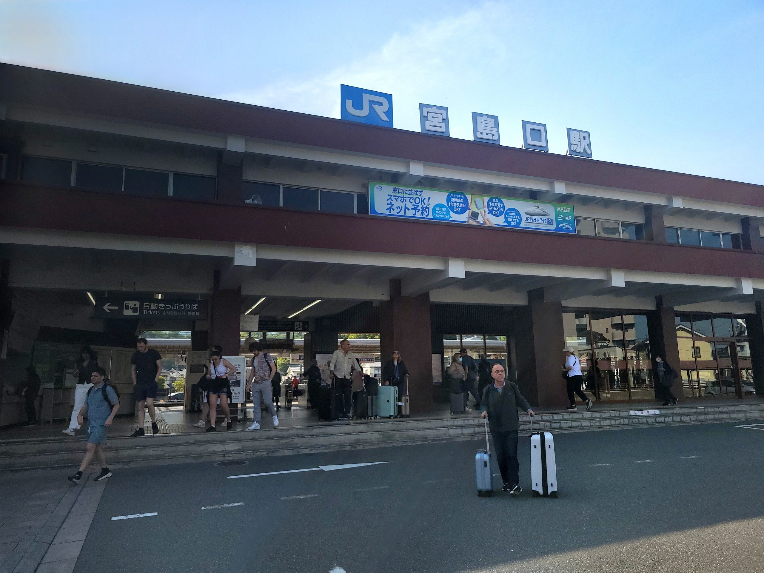 15時41分。ようやく宮島口駅に到着しました。もうすぐ夕方にも関わらず、わりと多くの外国人観光客が列車から降りてきました。広島駅から多くの外国人観光客が乗車してきていたので、ある程度は想像していましたが…。