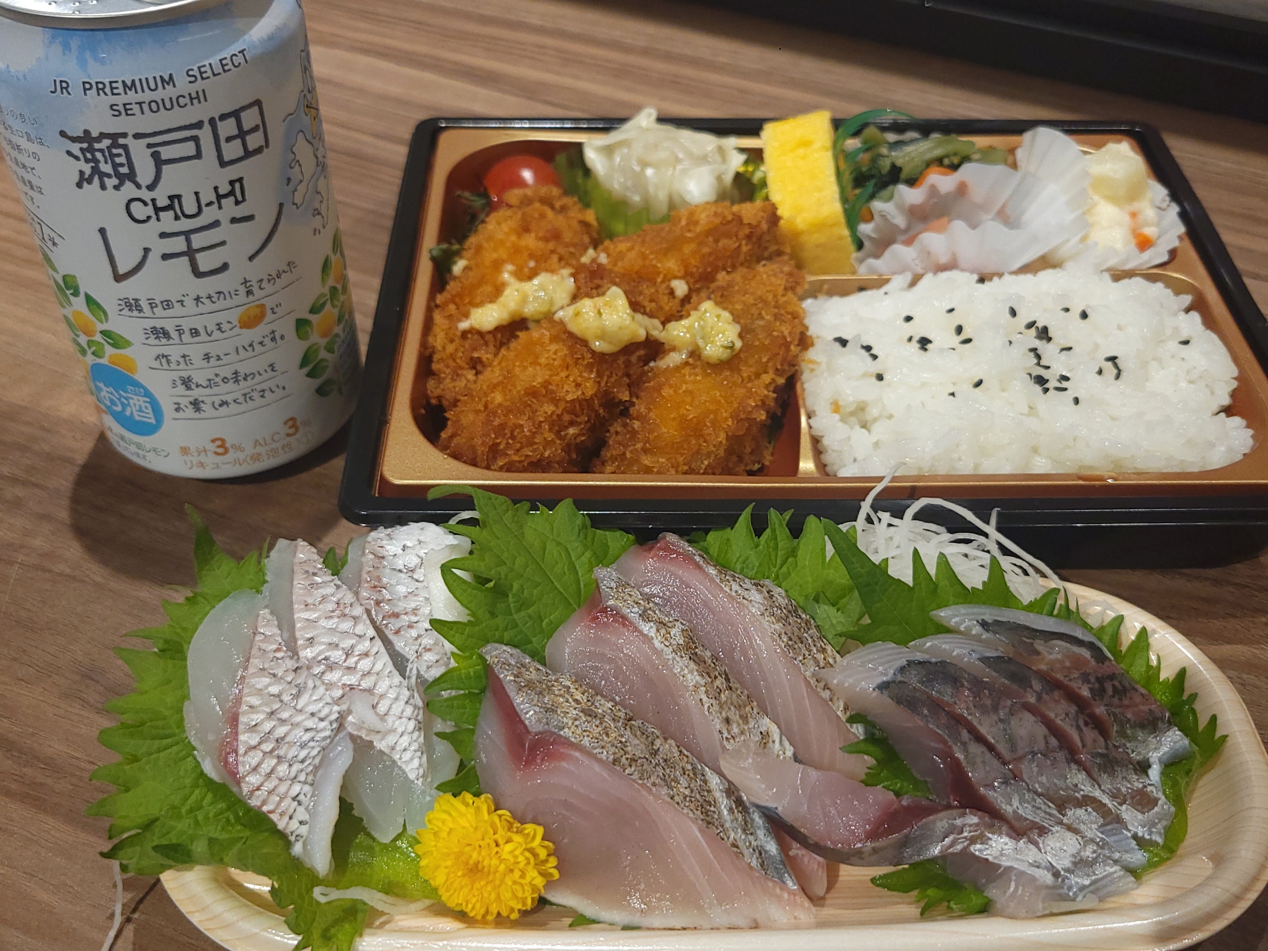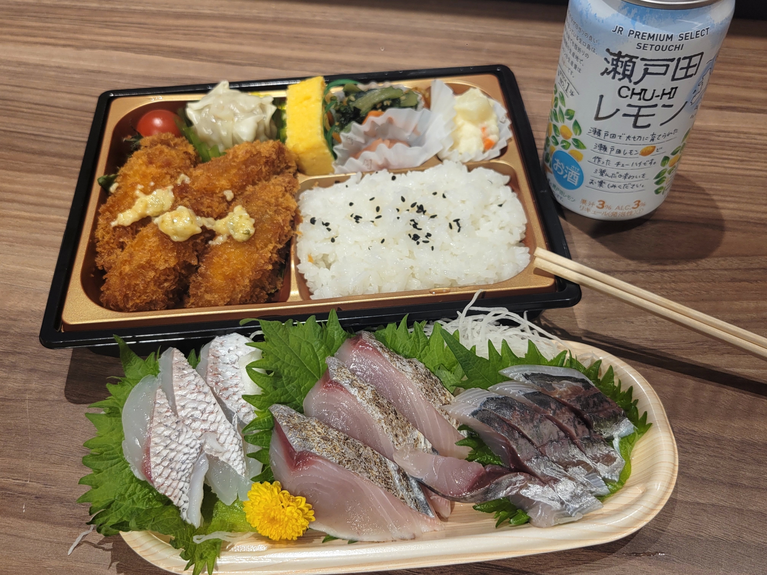 昨日も足を運んだ広島駅ビル「minamoa(ミナモア)」内のアバンセ。まさに惣菜コーナーで半額シールが貼られ始めたタイミングだったので、これはとばかりに物色し、宿でいただくことにしました。相変わらず半額にする決断が早く、貧乏旅行者にとっては本当にありがたい限りです。