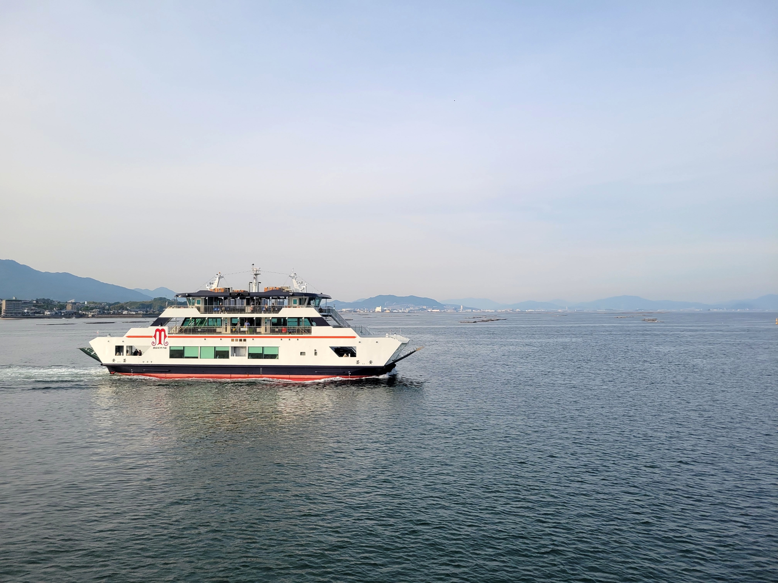 料金と所要時間に違いはありませんが、JR西日本フェリーは宮島へ向かう際、厳島神社の大鳥居により近い航路をとってくれるのが特徴です。今回、私が利用している「広島ワイドパス」にはJR西日本フェリーも含まれていますが、2023年から徴収されている宮島訪問税(100円)を、乗船受付で別途支払う必要がありました。
