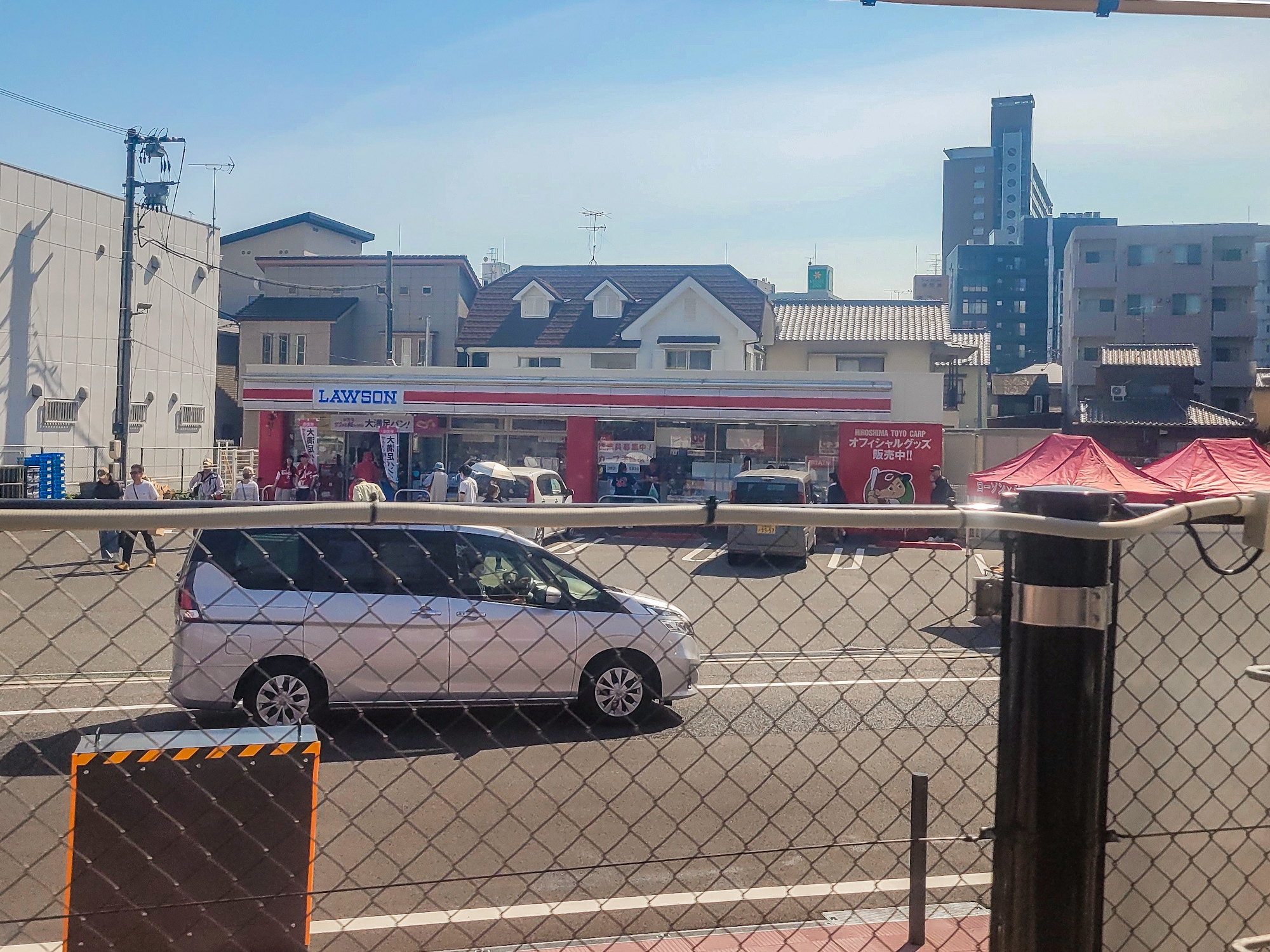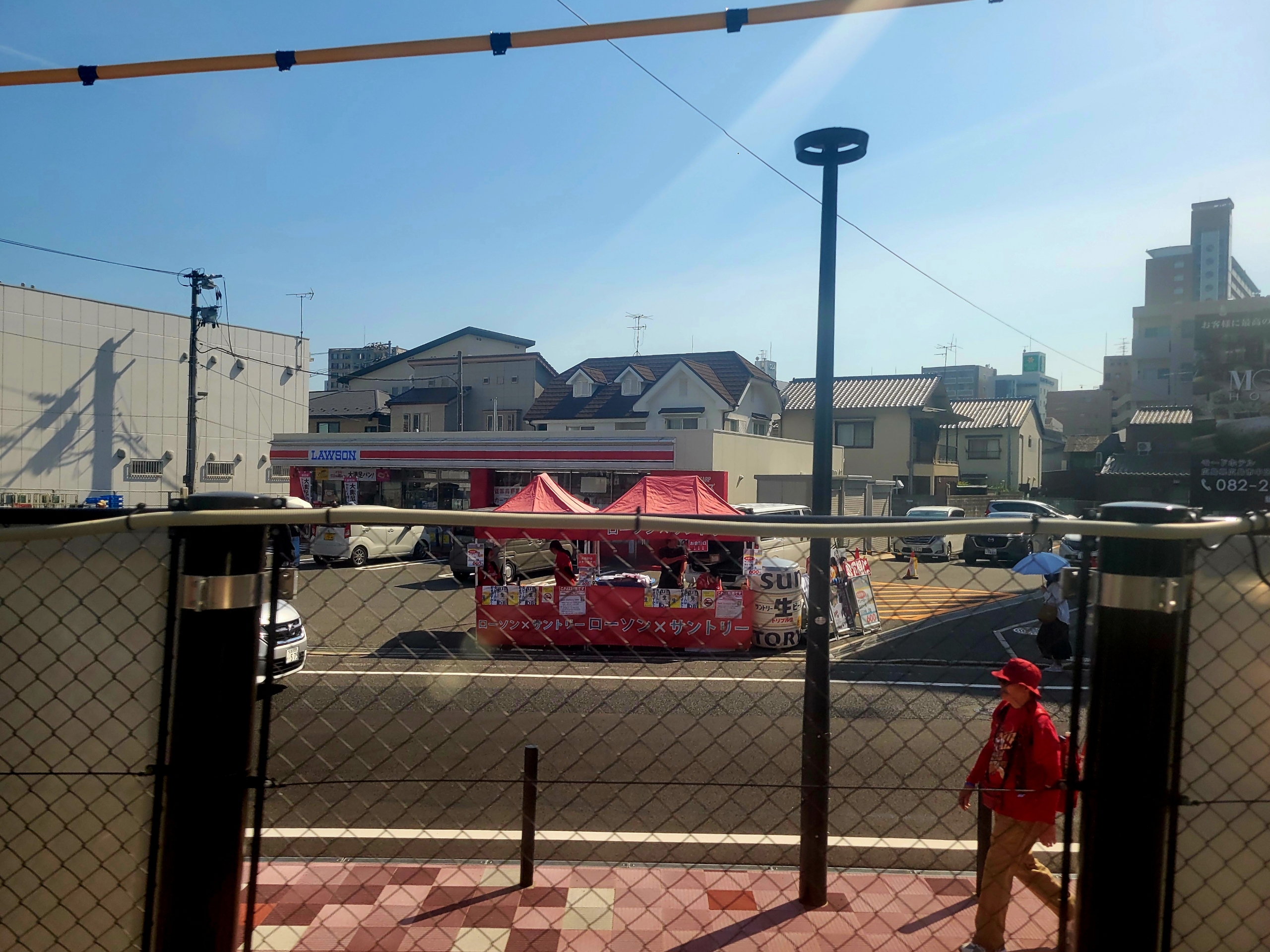朝みかけたマツダスタジアム近くの赤いローソン。屋台がでていて、赤い服の人がたくさん歩いているので今日は試合があるようです。試合開始のまだ3時間以上前ですが…