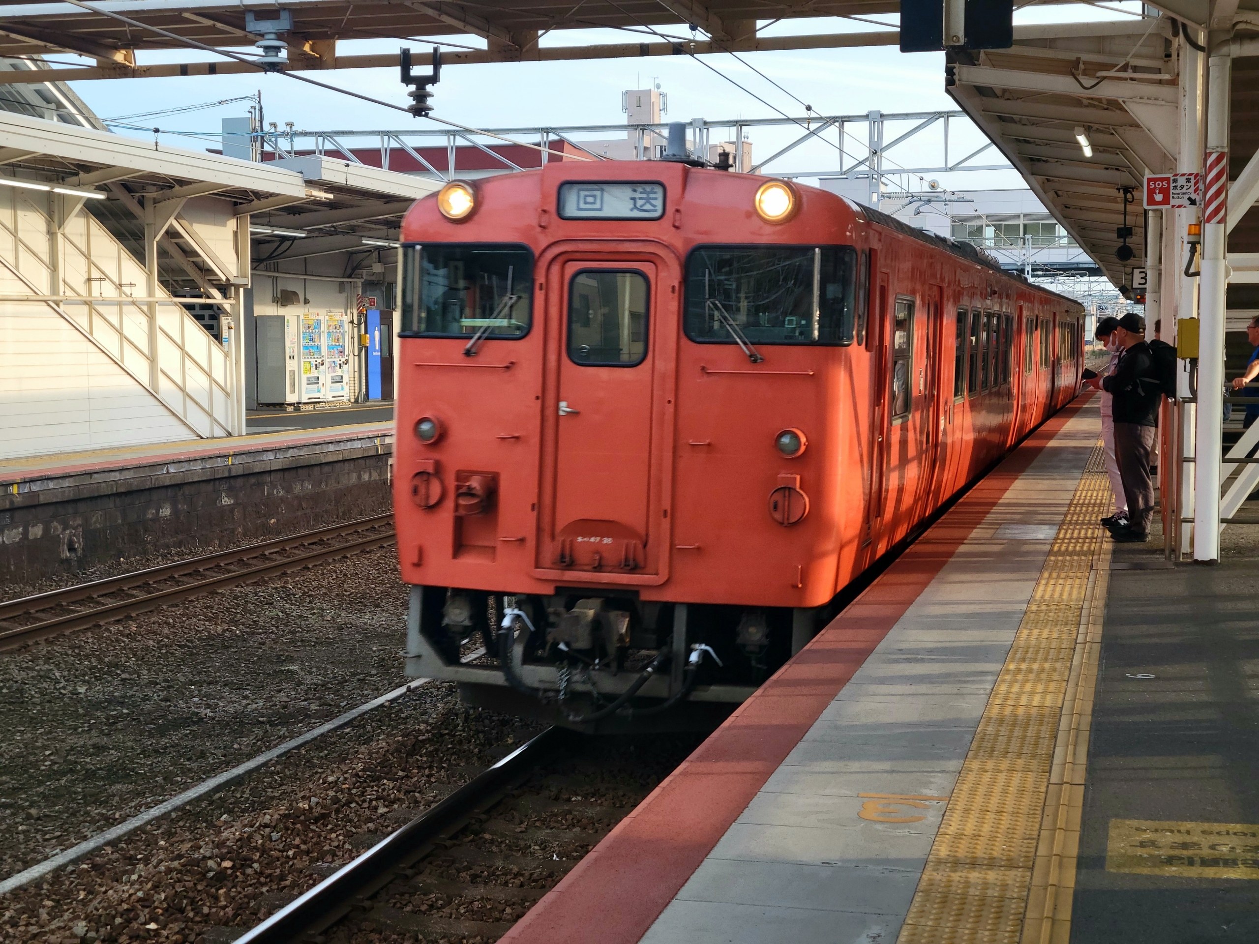 ちょうど帰宅時間帯だったため、岩国始発の列車は到着時にはすでに混雑しており、座席を確保できるどころか、途中からはさらに大混雑となりました。広島市内へ向かう列車とはいえ、想像以上の利用者の多さに驚きです。