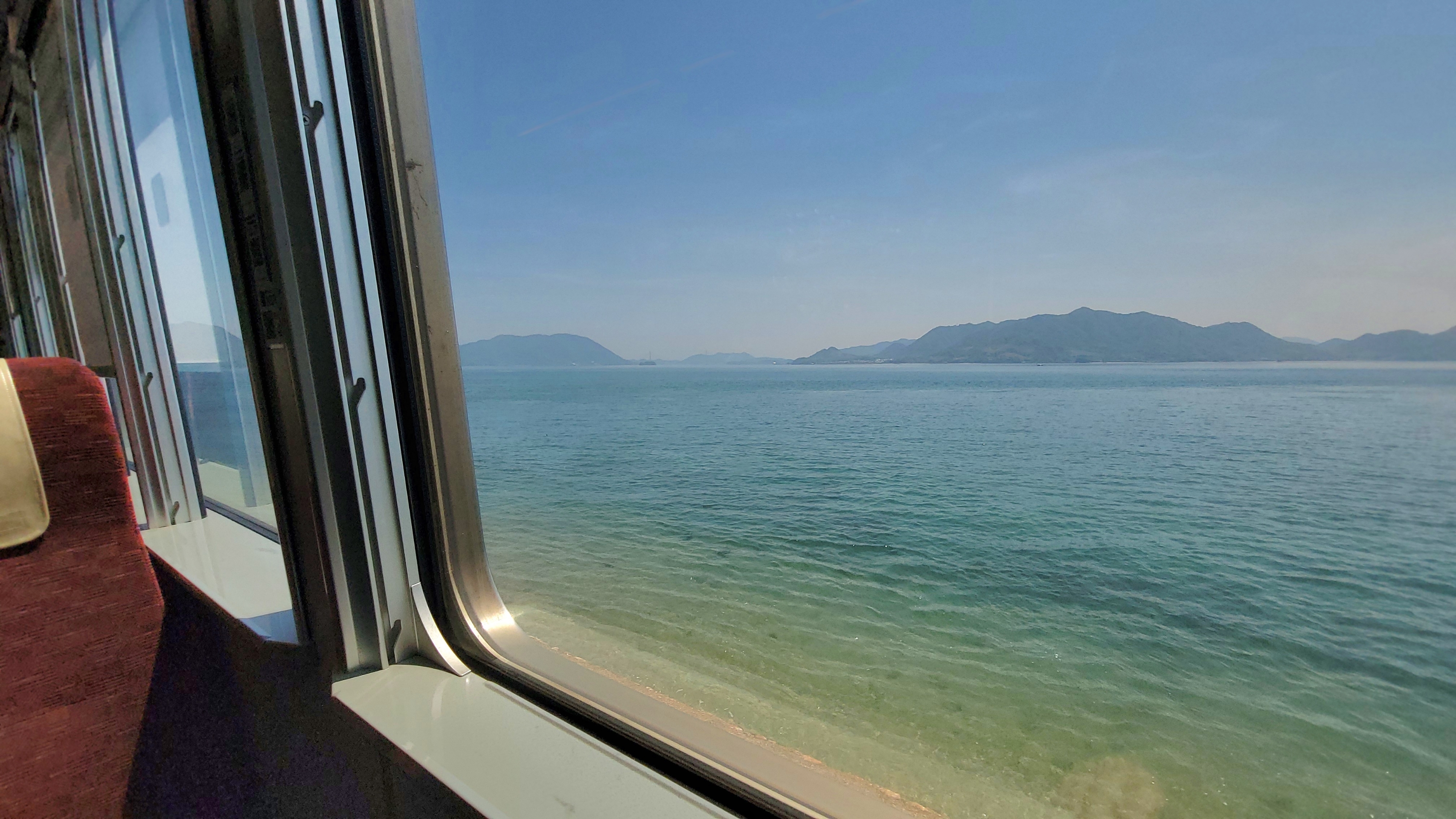 山陽本線から眺める海の景色は、海が南側にあるため、どうしても逆光になってしまうのが残念な点です。もし山陰本線のように、海が北側にあれば、もっと美しい海の風景を堪能できたかもしれませんね。
