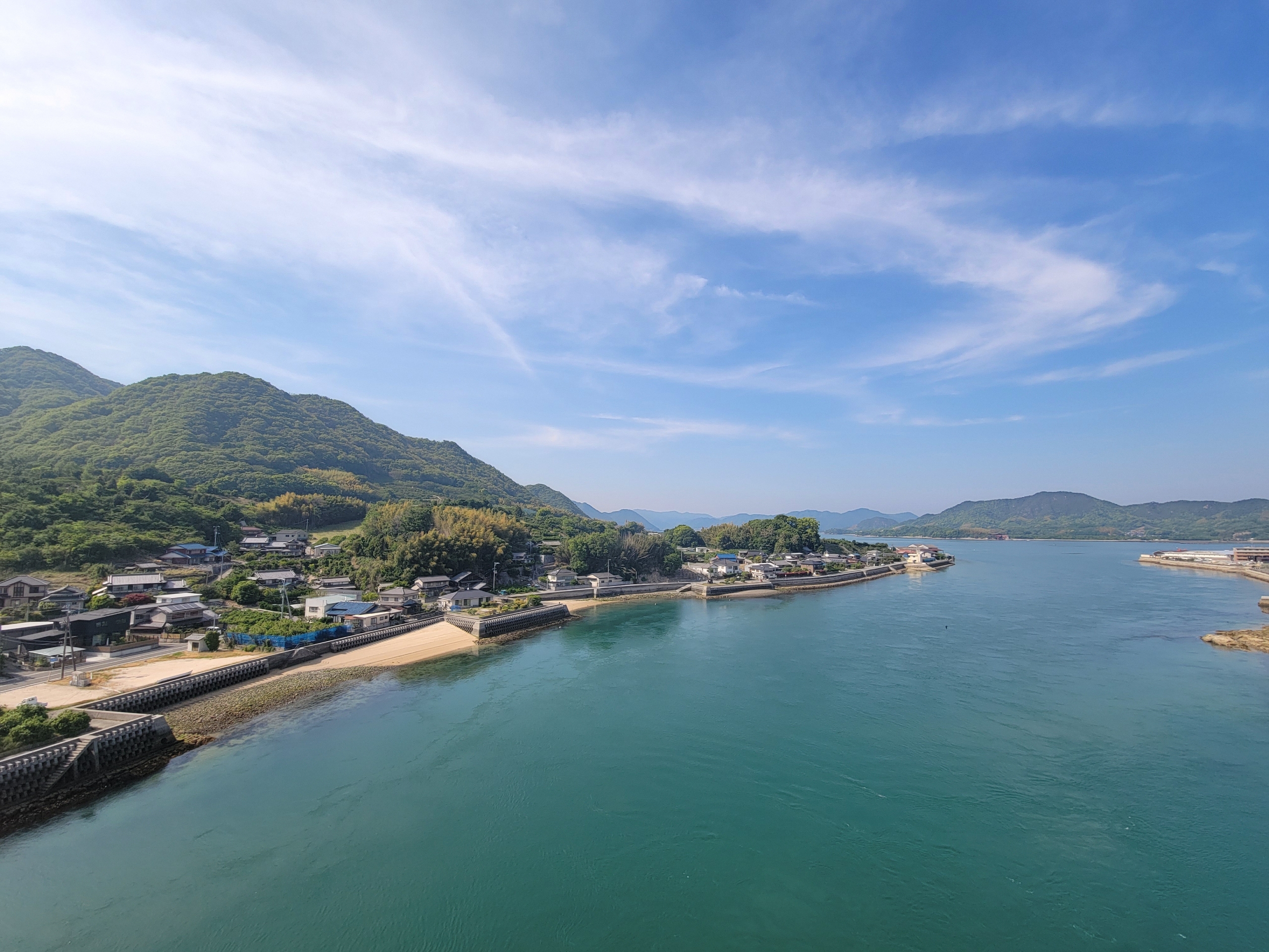 思ったよりも車通りが多いことに驚きました。もし歩道が整備されていれば、もっとのんびりと眺望を楽しめたでしょう。高根島の人口は432人と比較的多く、この橋によって生口島とのアクセスが格段に向上したはずです。