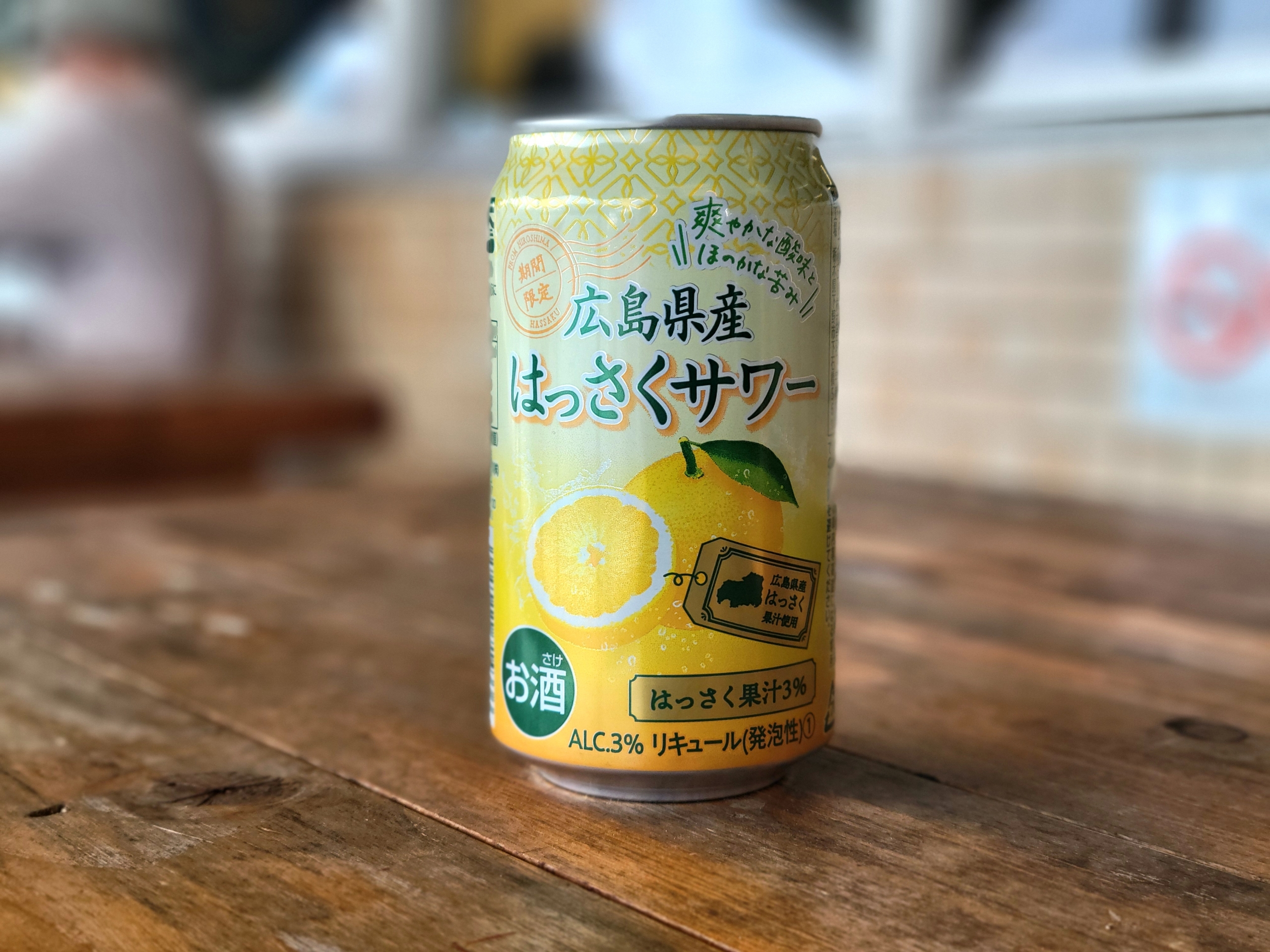 スーパーで見つけたのは「広島県産はっさくサワー」(141円)。三原港の乗船場前のベンチに座り、景色を眺めながら一口。八朔は初めてでしたが試してみることに。甘酸っぱさの中に感じられるほのかな苦みが絶妙で、期待を裏切らない美味しさでした。海風が心地よい中で飲むこのサワーは、まさに最高の休憩時間。気づけば、この一本で気持ち良く酔いが回っていました。