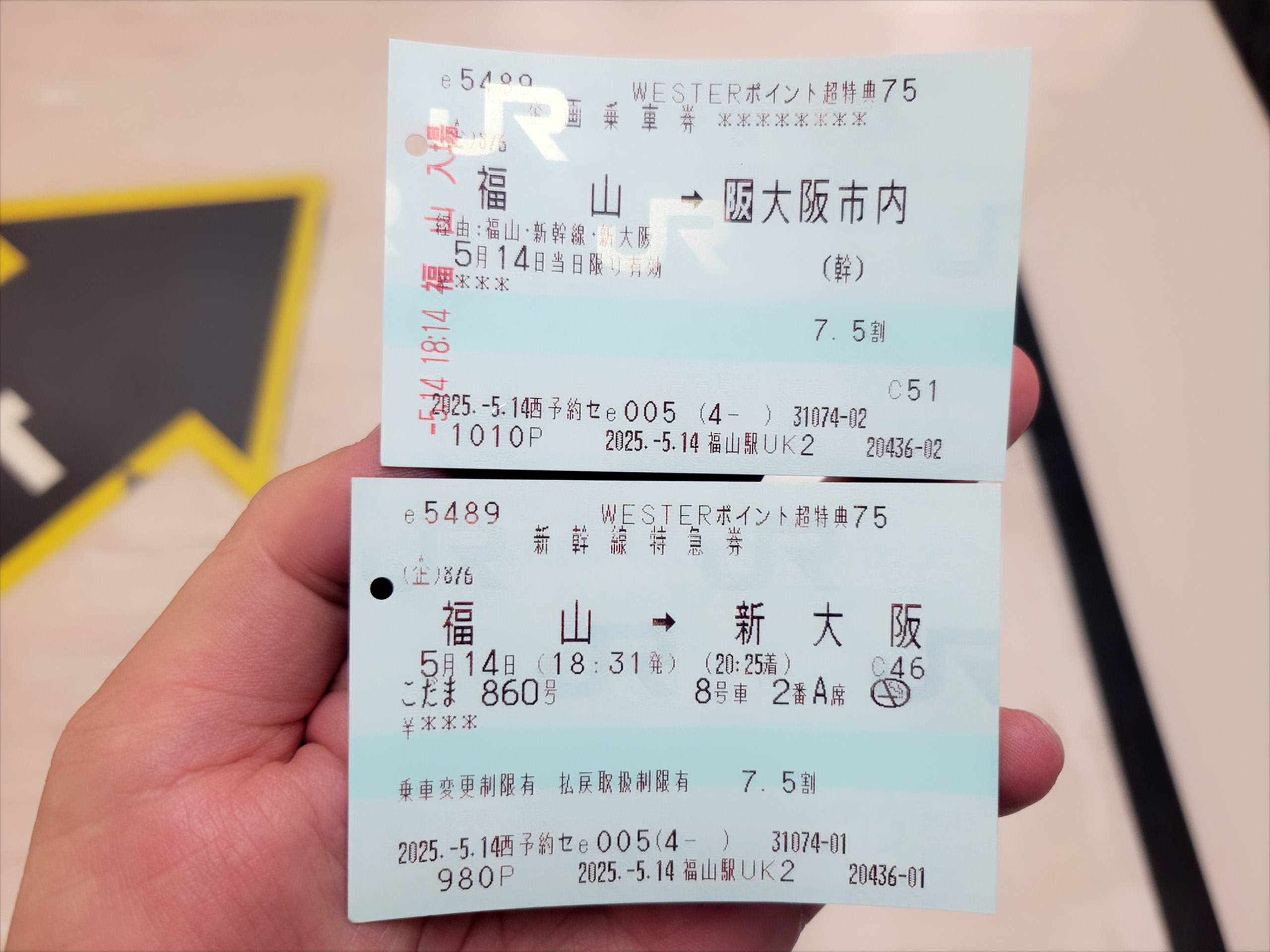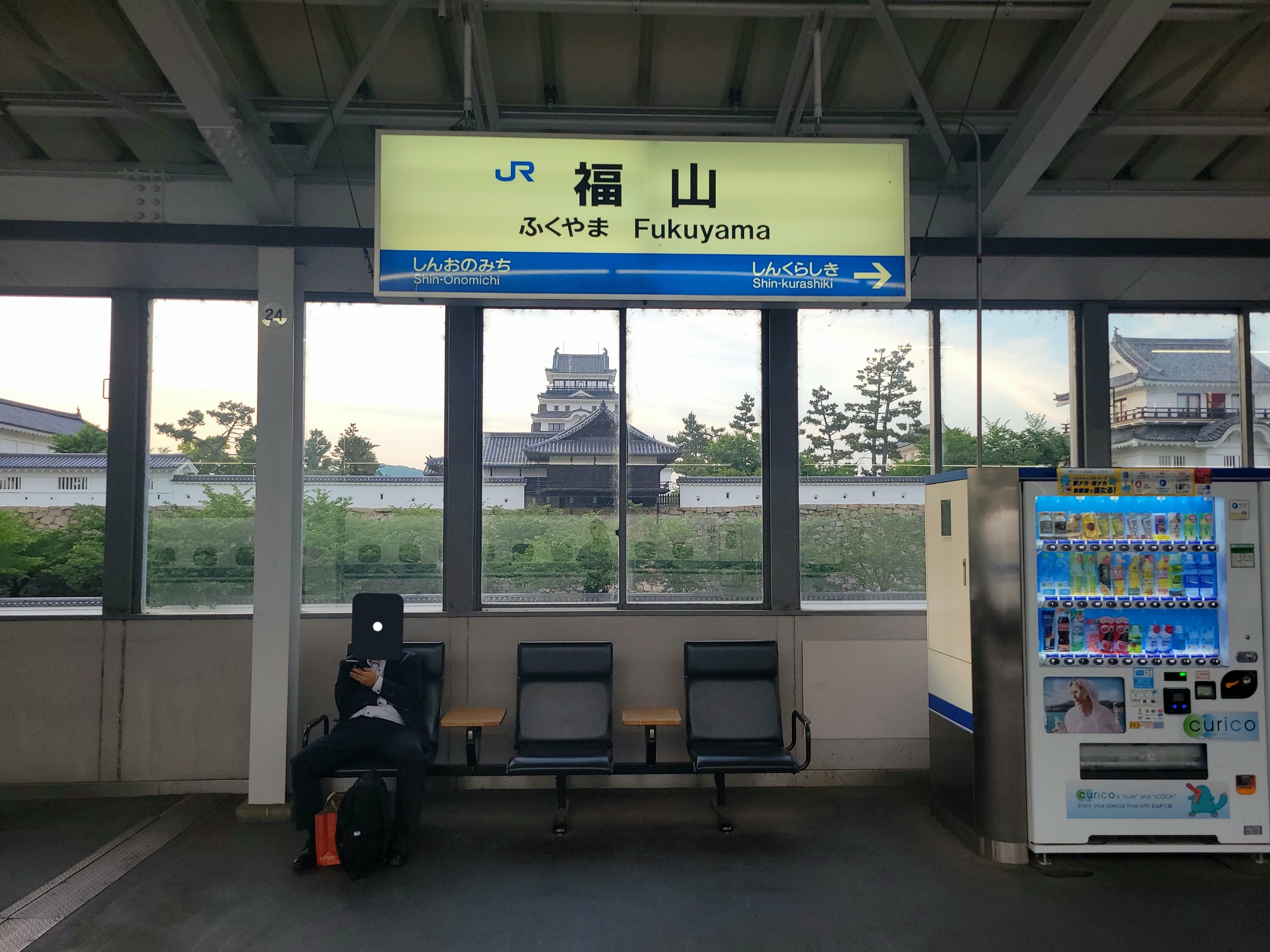 まだ17時ですが、今回の旅には十分に満足したので、そろそろ帰途につこうと思います。三原駅から帰るよりも福山駅からの方がWESTERポイントを200ポイント節約できるため、福山駅まで移動することにしました。