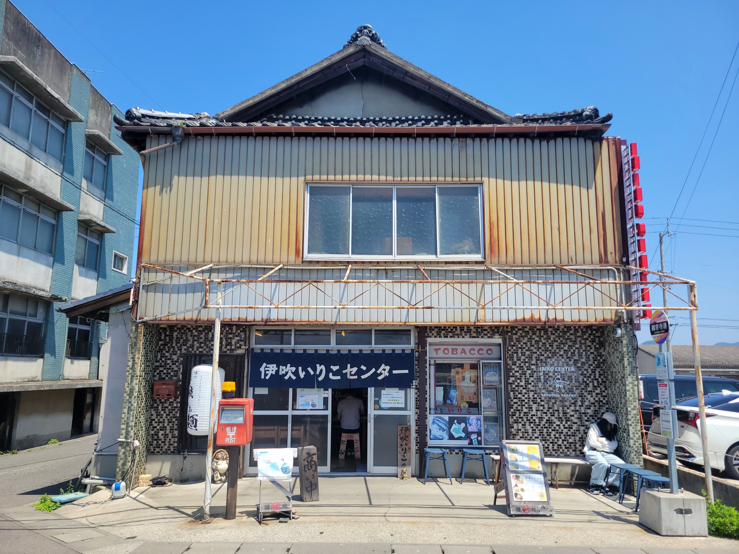 早速、伊吹いりこのラーメンを食べるべく、観音寺港付近にある「讃岐らぁ麺 伊吹いりこセンター」へ向かいました。お店は港に面した一の谷川の河口に位置し、観音寺駅からは1.6kmほど離れています。