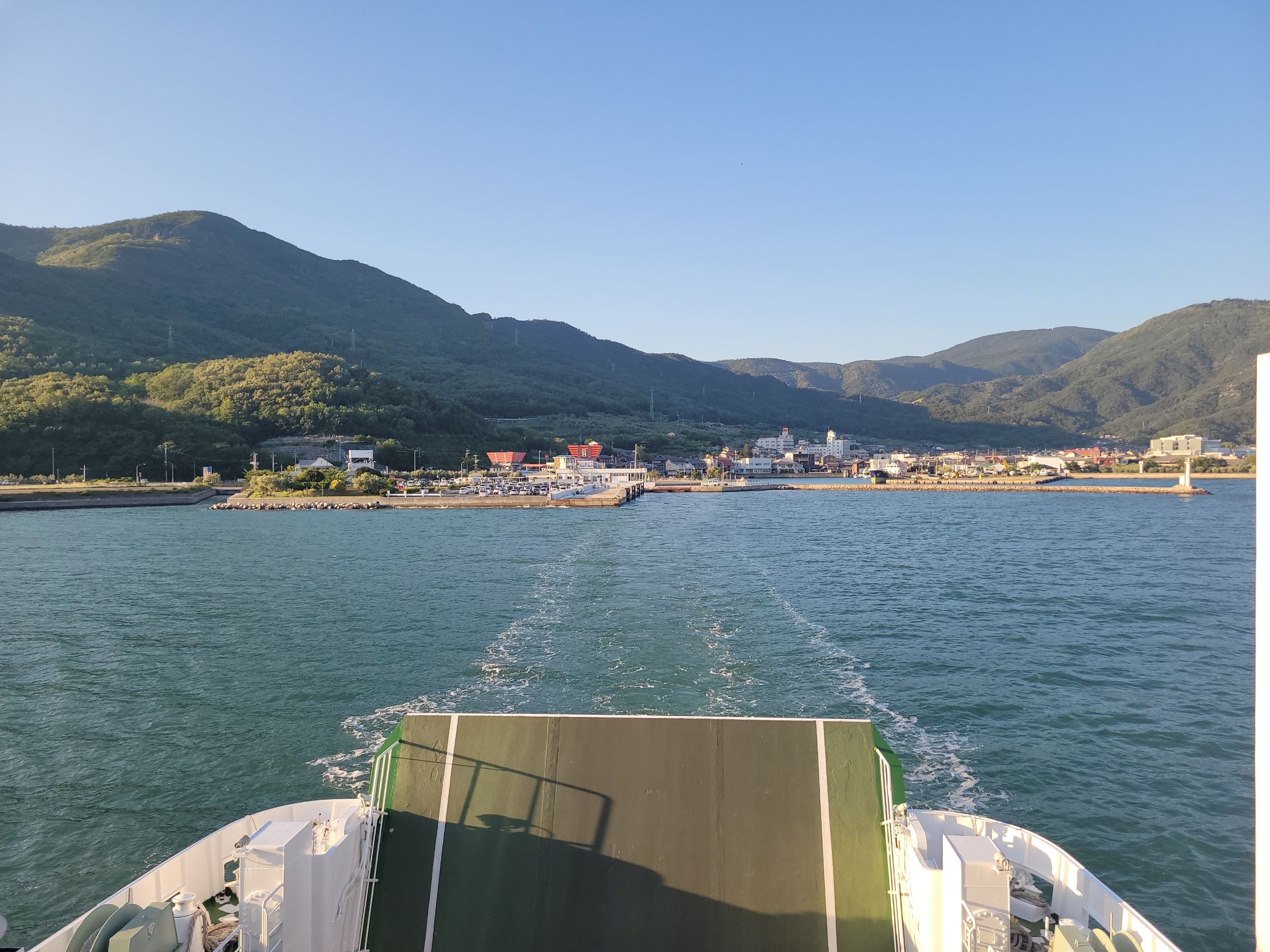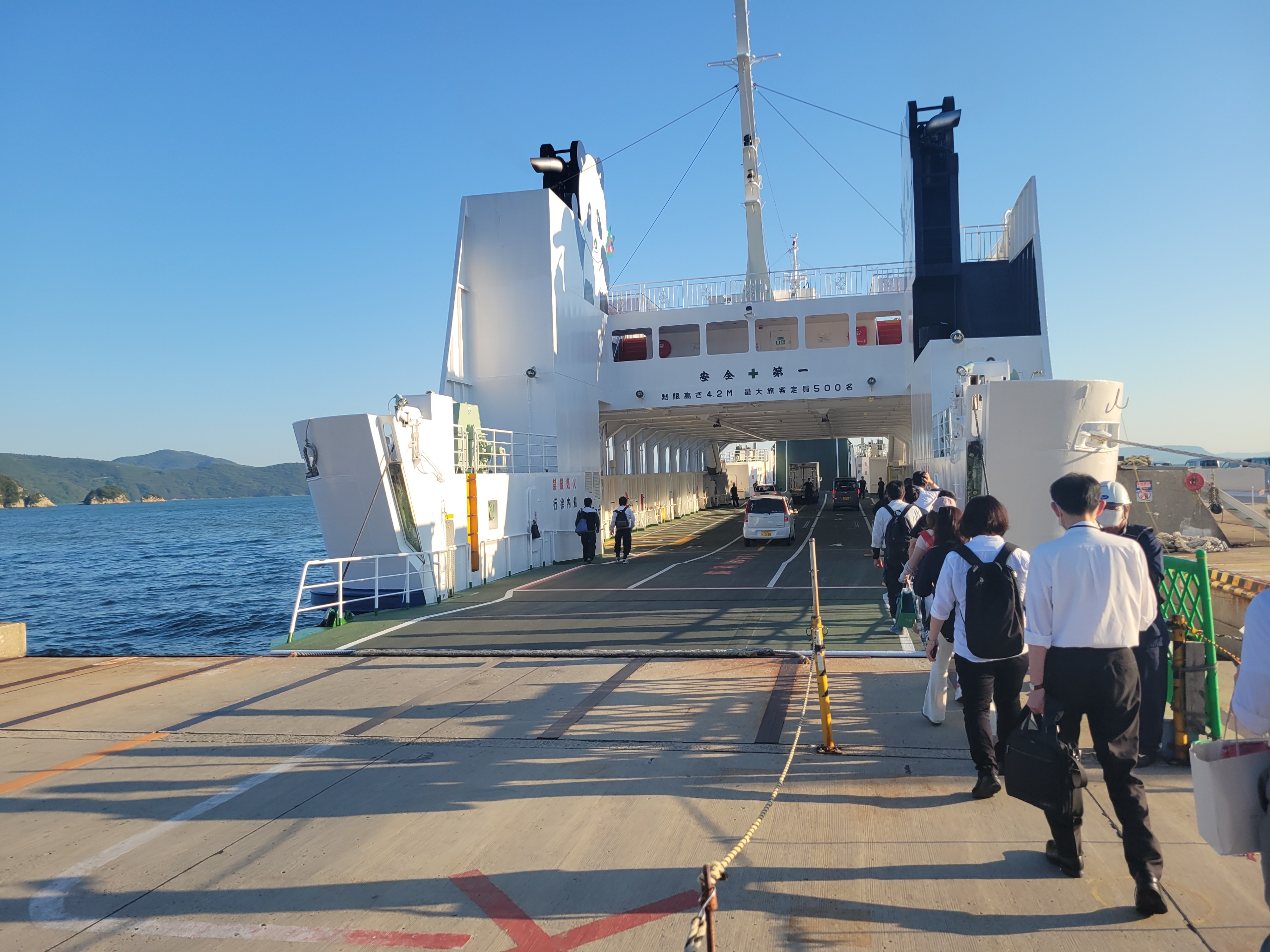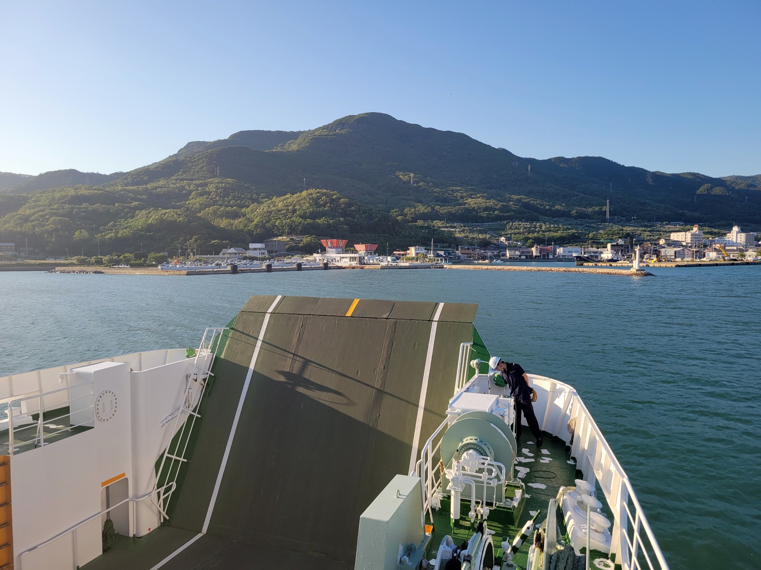 フェリーの乗客は通勤、通学客が大半なので、帰りも甲板は貸切状態です。