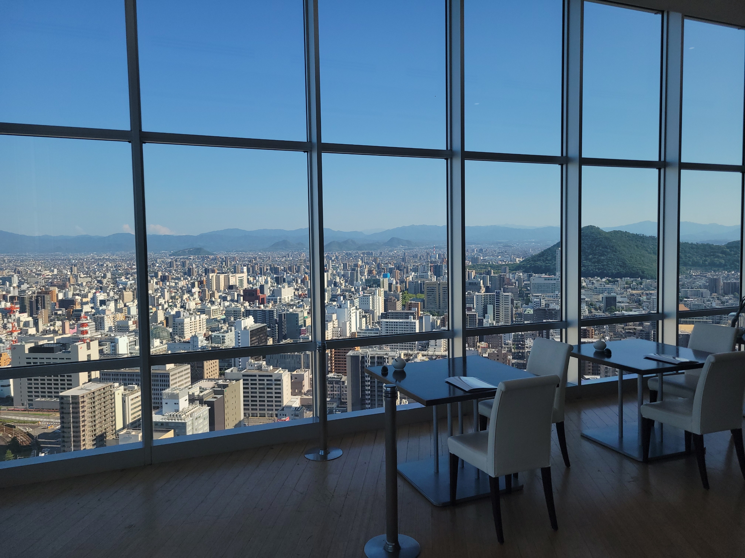 四国で一番高い建物、高松シンボルタワーの29階には展望スペースがあり、無料で見学することができます。オープン当初はレストランが入っていたため、エレベーターホールのあるは西側しか景色を見ることができませんでした。しかし、苦戦からかレストランが撤退し、結果として私たち観光客が景色を独占できる絶好の特等席に。運営側にとっては痛い話でしょうが、この絶景を独り占めできるのは本当にありがたい限りです。