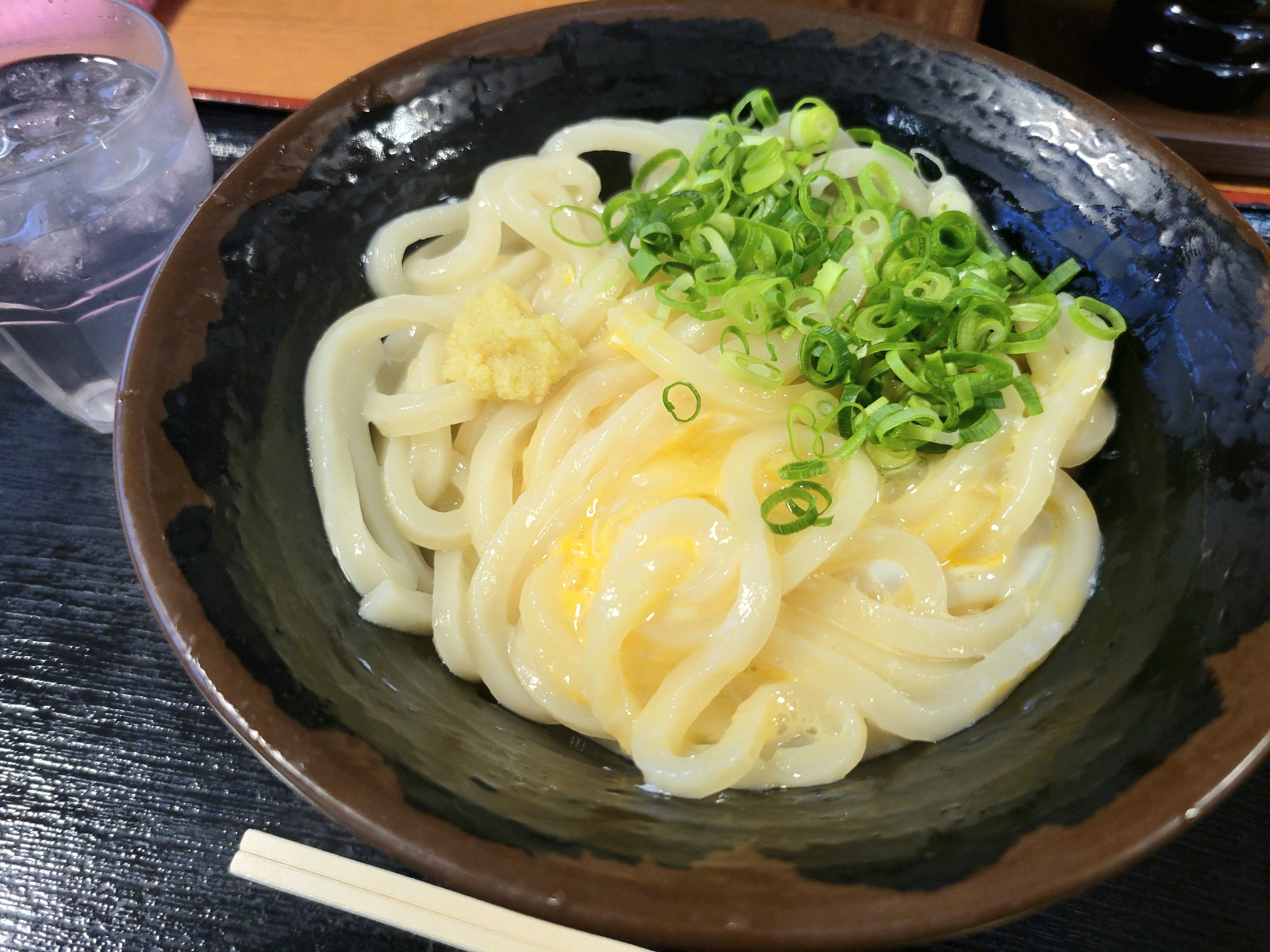 今回は「釜玉うどん(大)510円」をいただきました。美味しいことは美味しいのですが、「さすが本場」というレベルまではいかないというのが正直な感想です。本当に美味しいお店のうどんは、コシと柔らかな食感のバランスがとても良いものです。噛むたびに弾力が感じられつつも、表面は滑らかで柔らかい。それに比べると、「めりけんや」のうどんは、コシはそこそこあるものの、柔らかな食感は表面の一部だけ、といった印象でした。