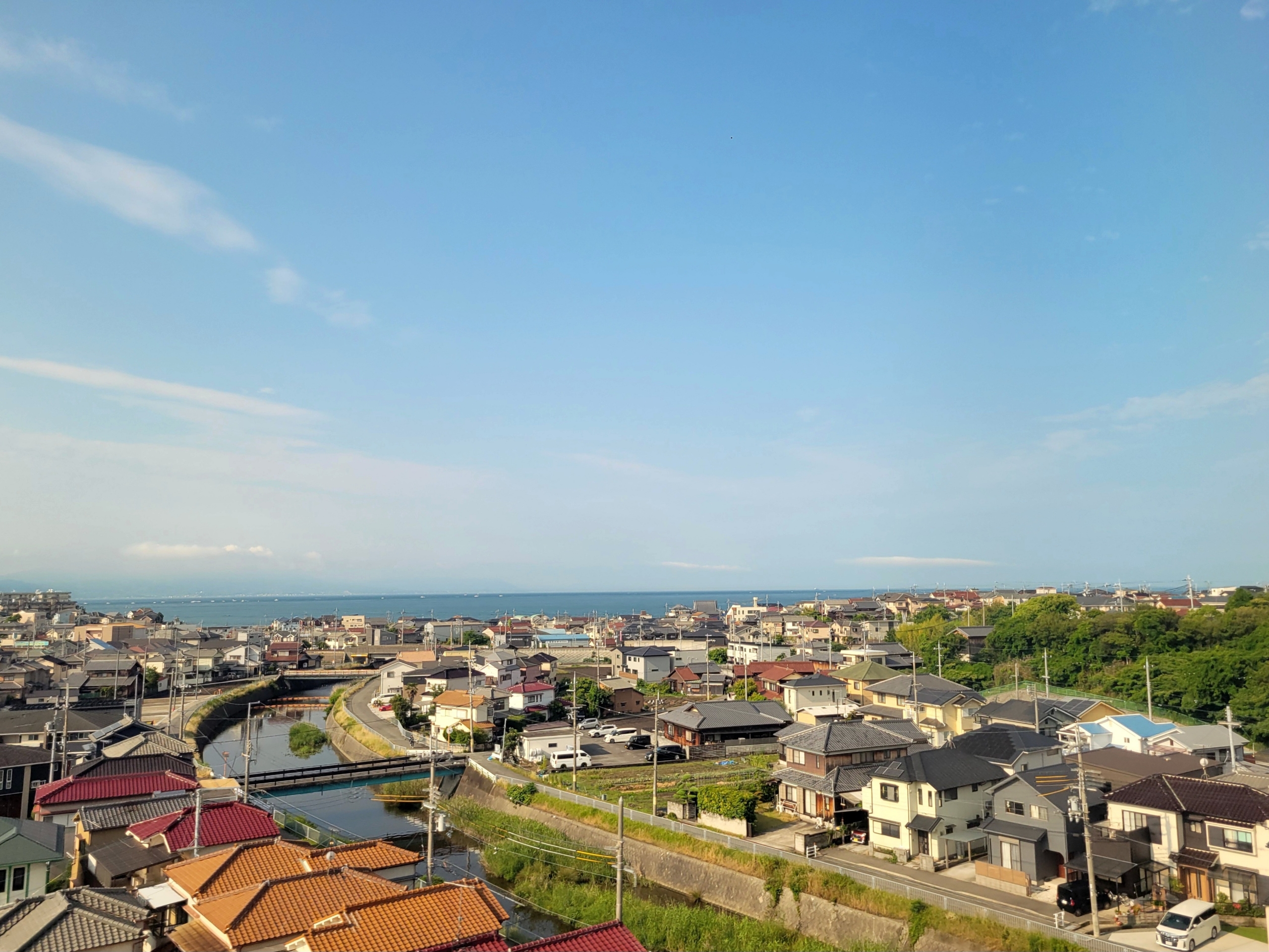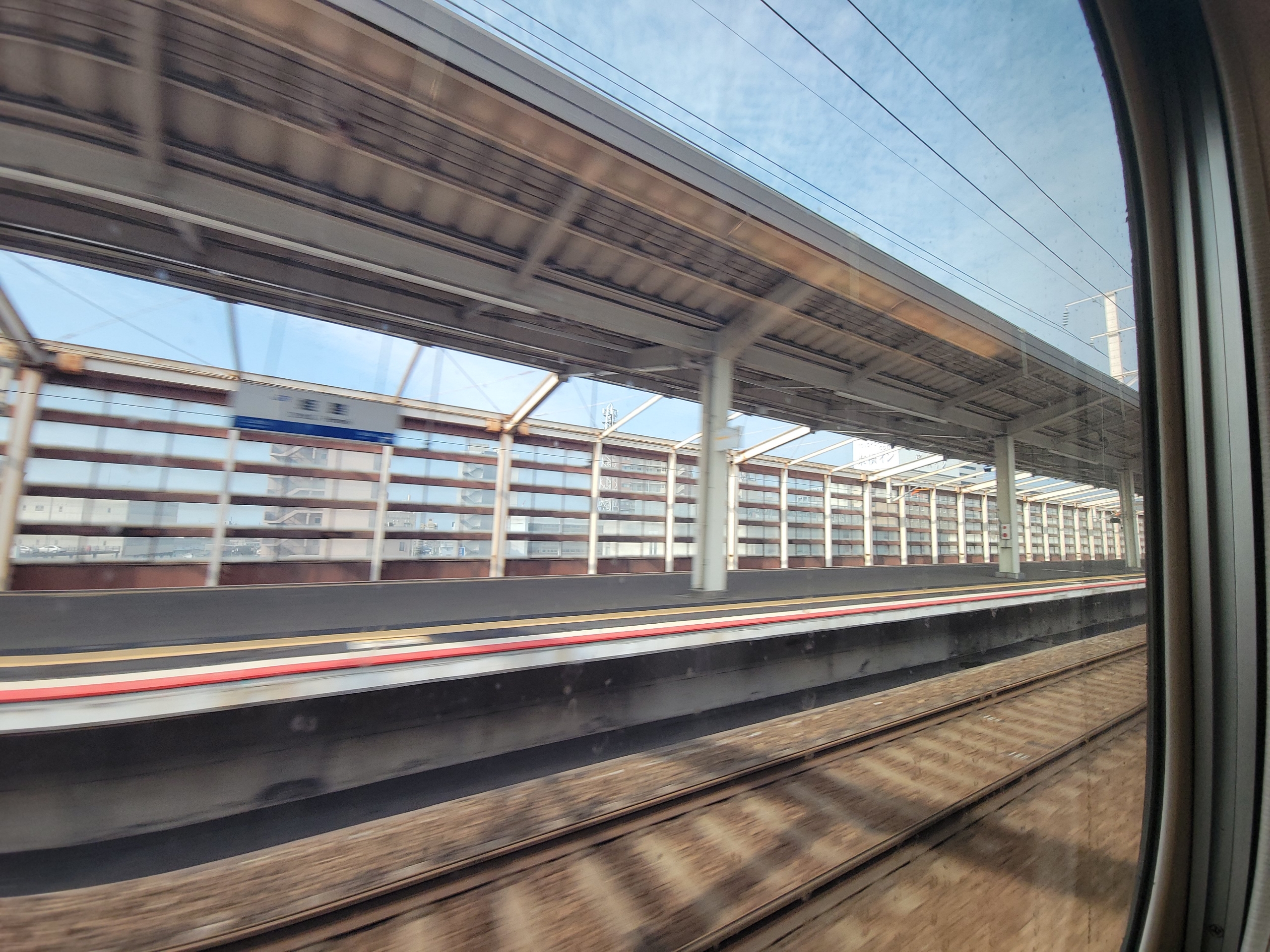 西明石駅を出発して左手に見えてきた最初の海が瀬戸内海で、良い感じで晴れていました。山陽新幹線で瀬戸内海が見えるのは意外と少なく、他には徳山駅前後にコンビナート越しに見えたぐらいでしょうか。