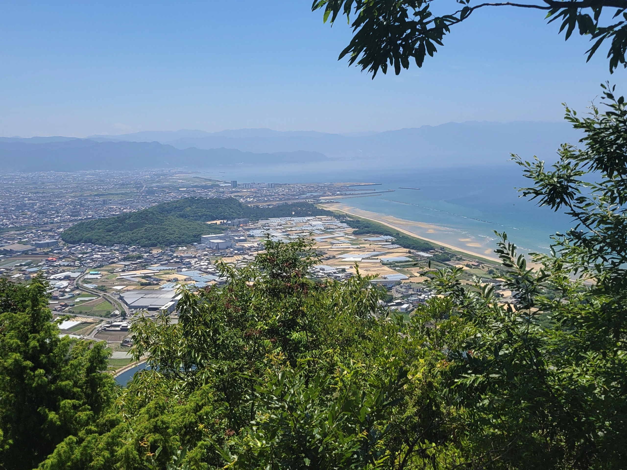 視界が開けると、北側の海岸線、そして遠くにはウユニ塩湖っぽい写真が撮れる父母が浜がある市街地が見えました。