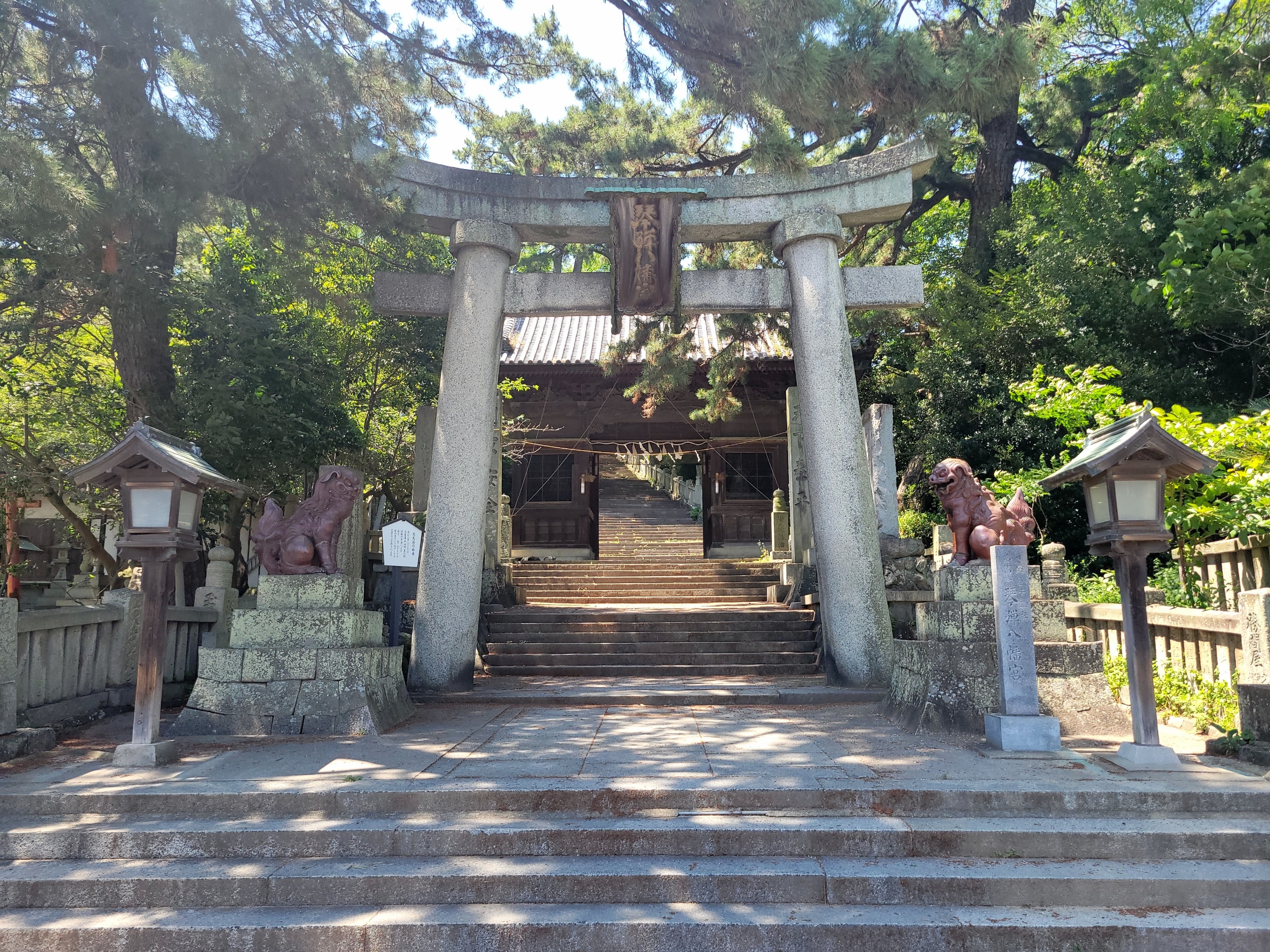 琴弾八幡宮の本殿、展望台までは長い石段になっていました。また登るのか…