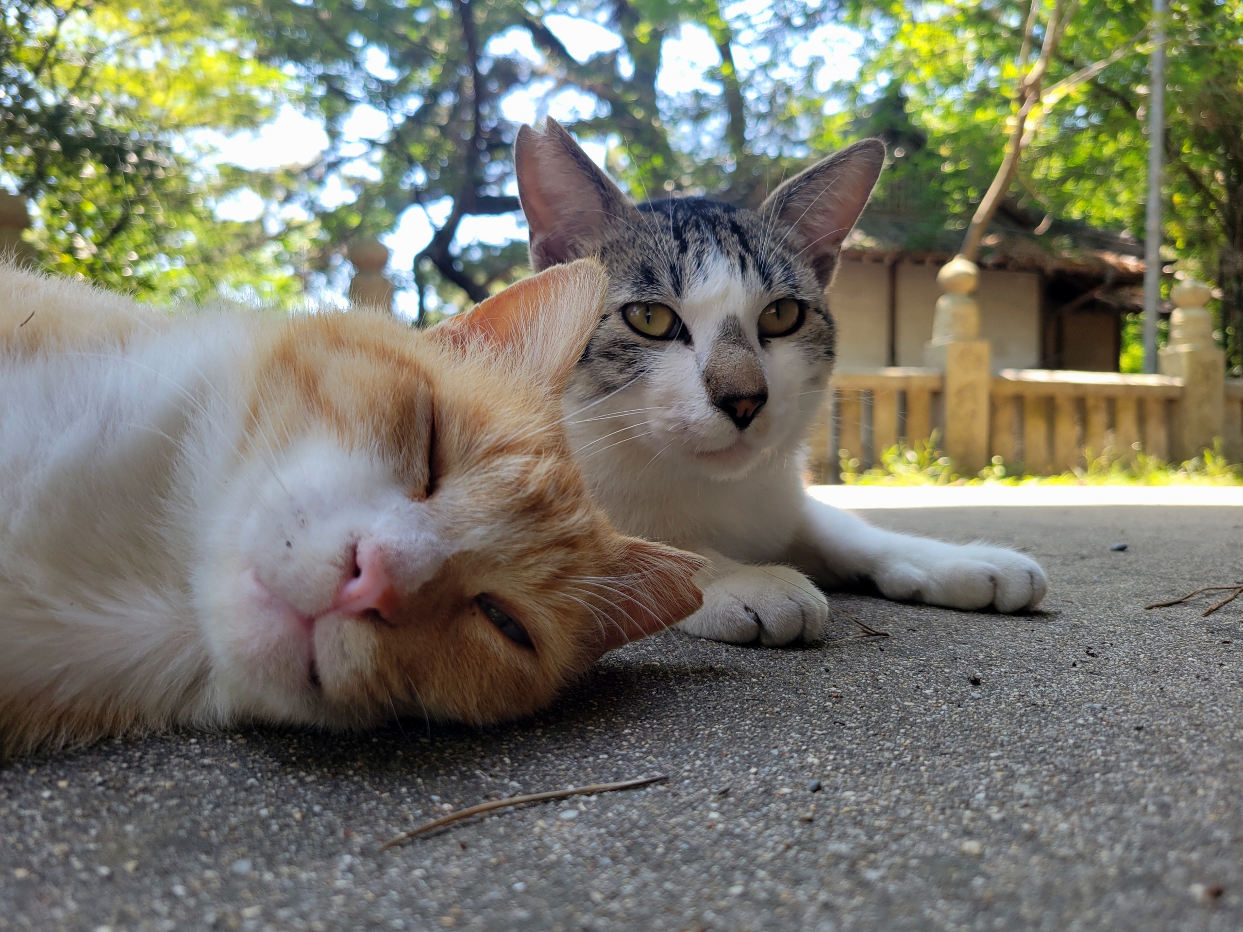 随神門の横にねこちゃんが昼寝中。かわええな…。次の列車まで急げば間に合うはずでしたが、猫トラップにひっかかってしまい、急ぐのはやめました。