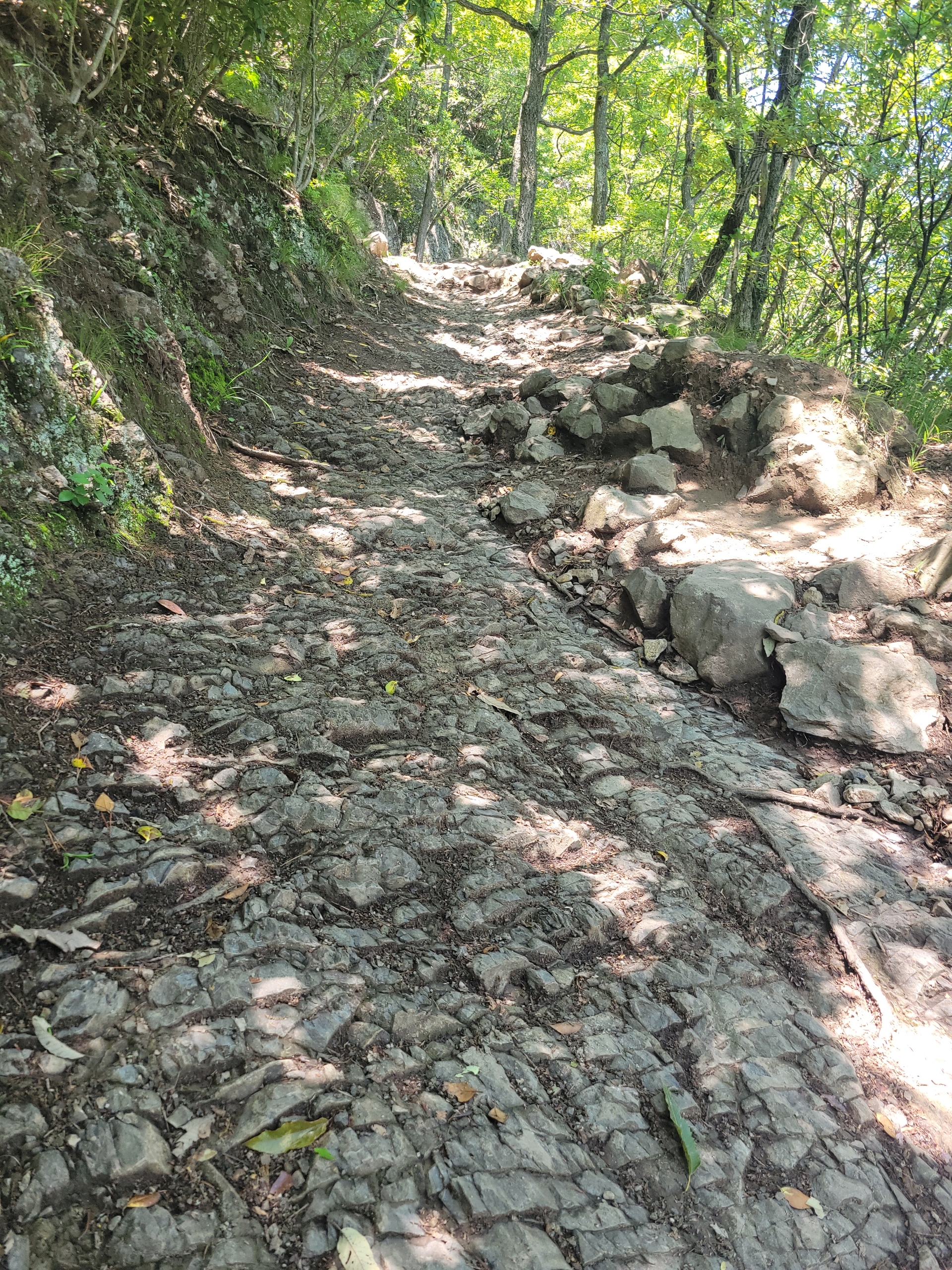 幸い、道中は大半が木陰だったので、日中の暑さは少し和らぎました。登山道は九十九折になっていて、それほど急な場所はありません。