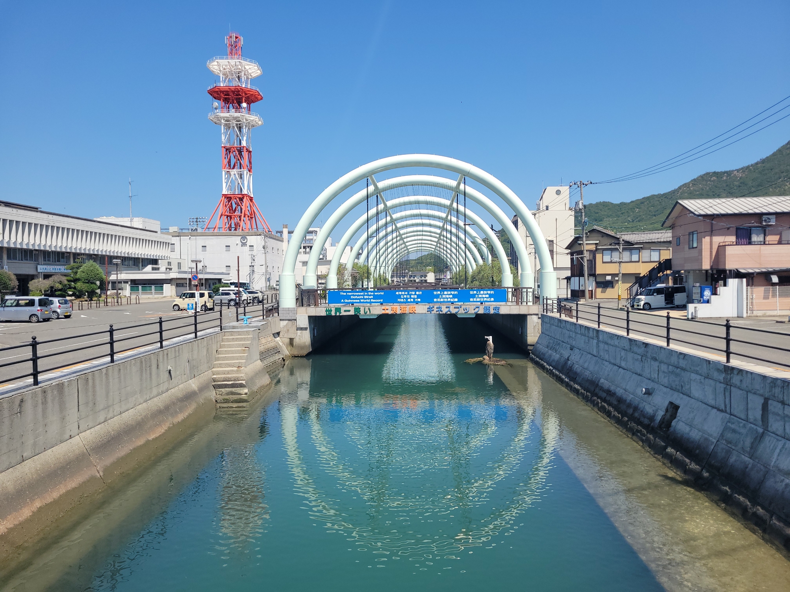 ギネスブックにも登録されているらしい世界一狭い海峡の土渕海峡。長さは2.5km、もっとも狭い場所は9.93m。