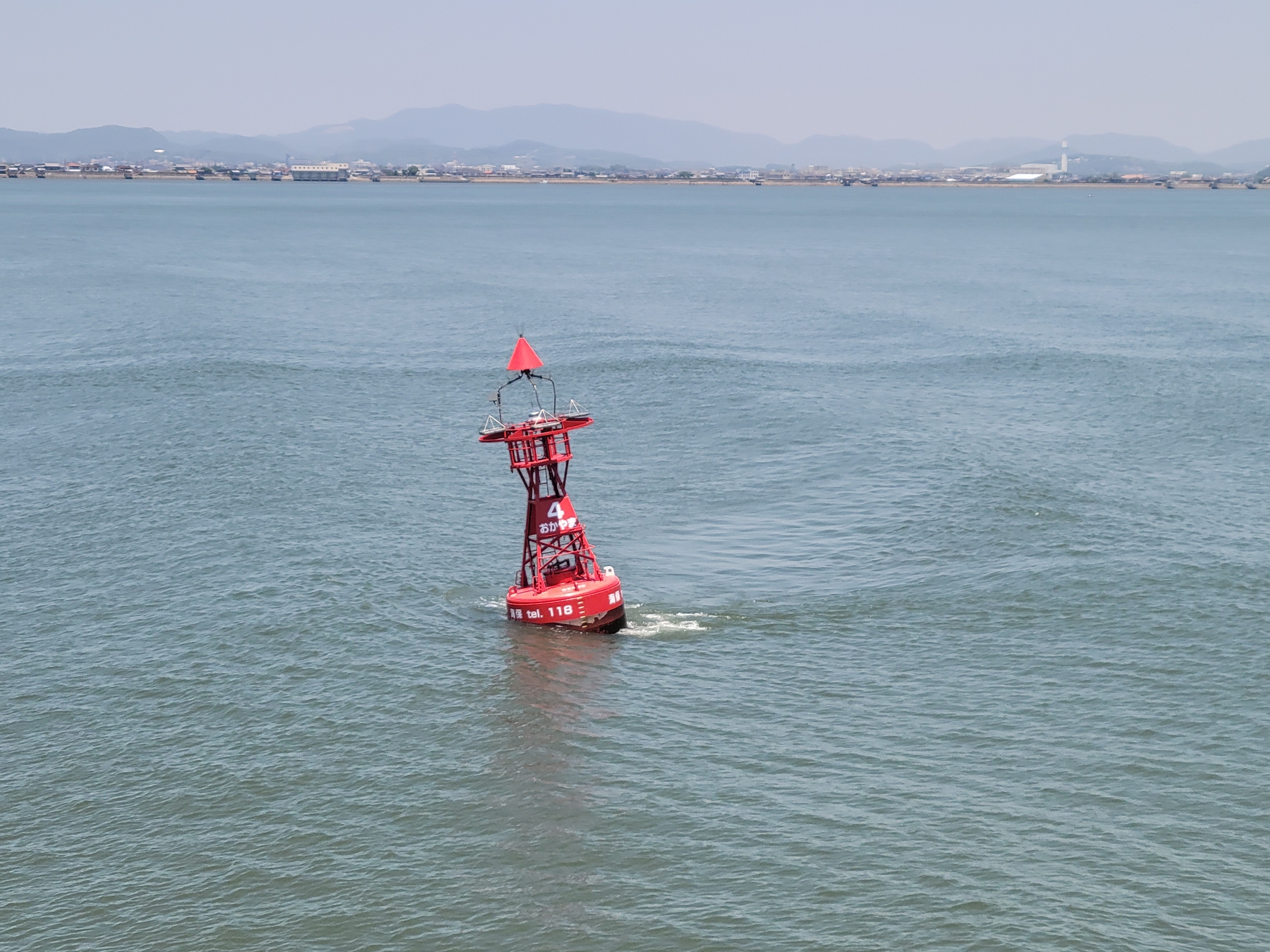 海流の影響でブイが傾いてます。湾内に溜まっていた海水が外に流れ出ていってるようです。瀬戸内海って干満差が大きいので、意外と怖い海なんですね。