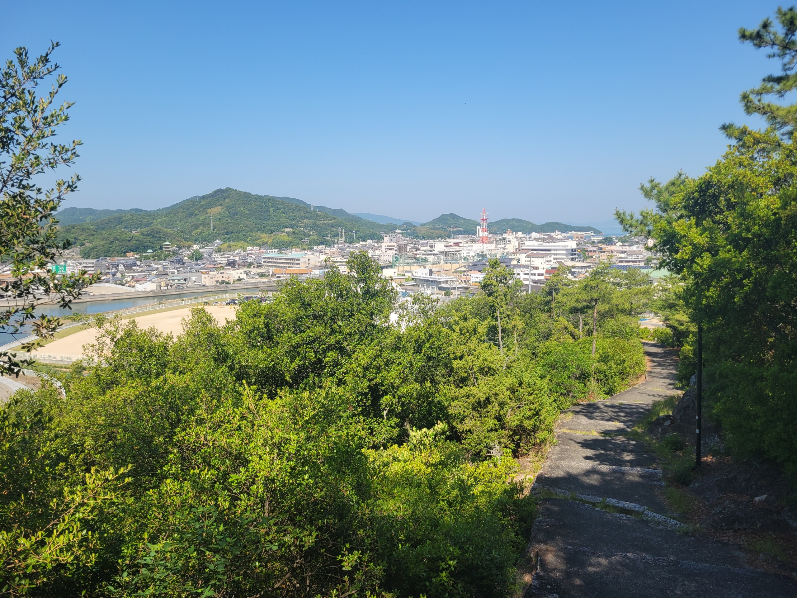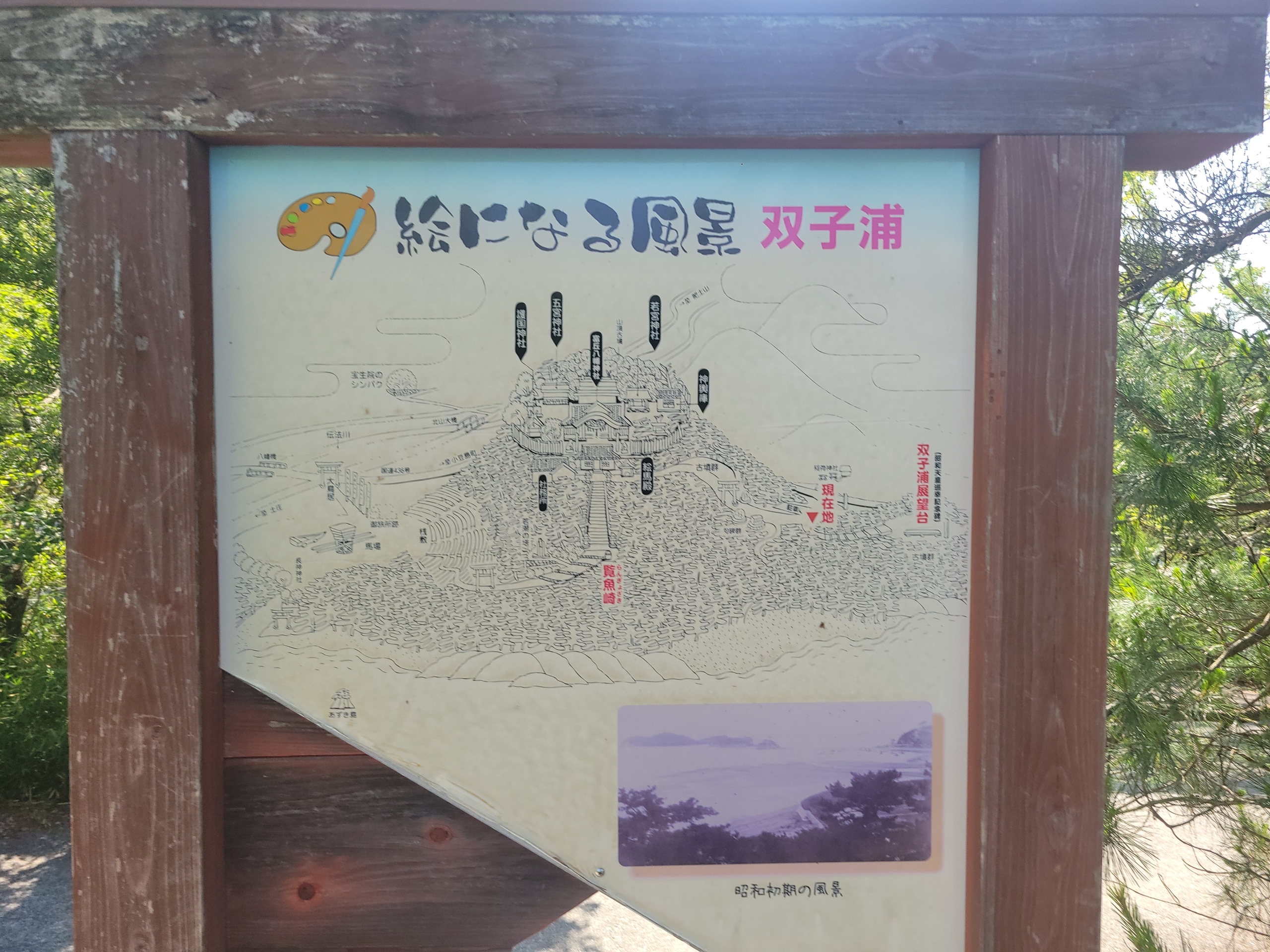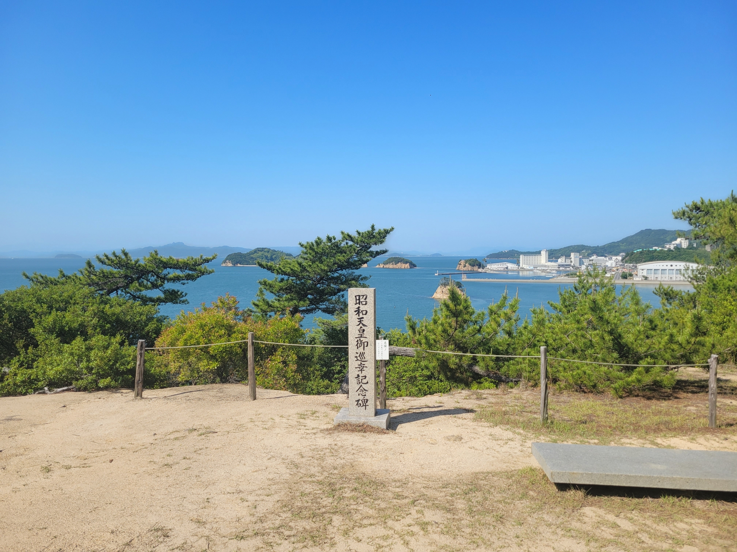 双子浦展望台。周囲の松が邪魔してそれほど眺めが良くはなかったのが残念。