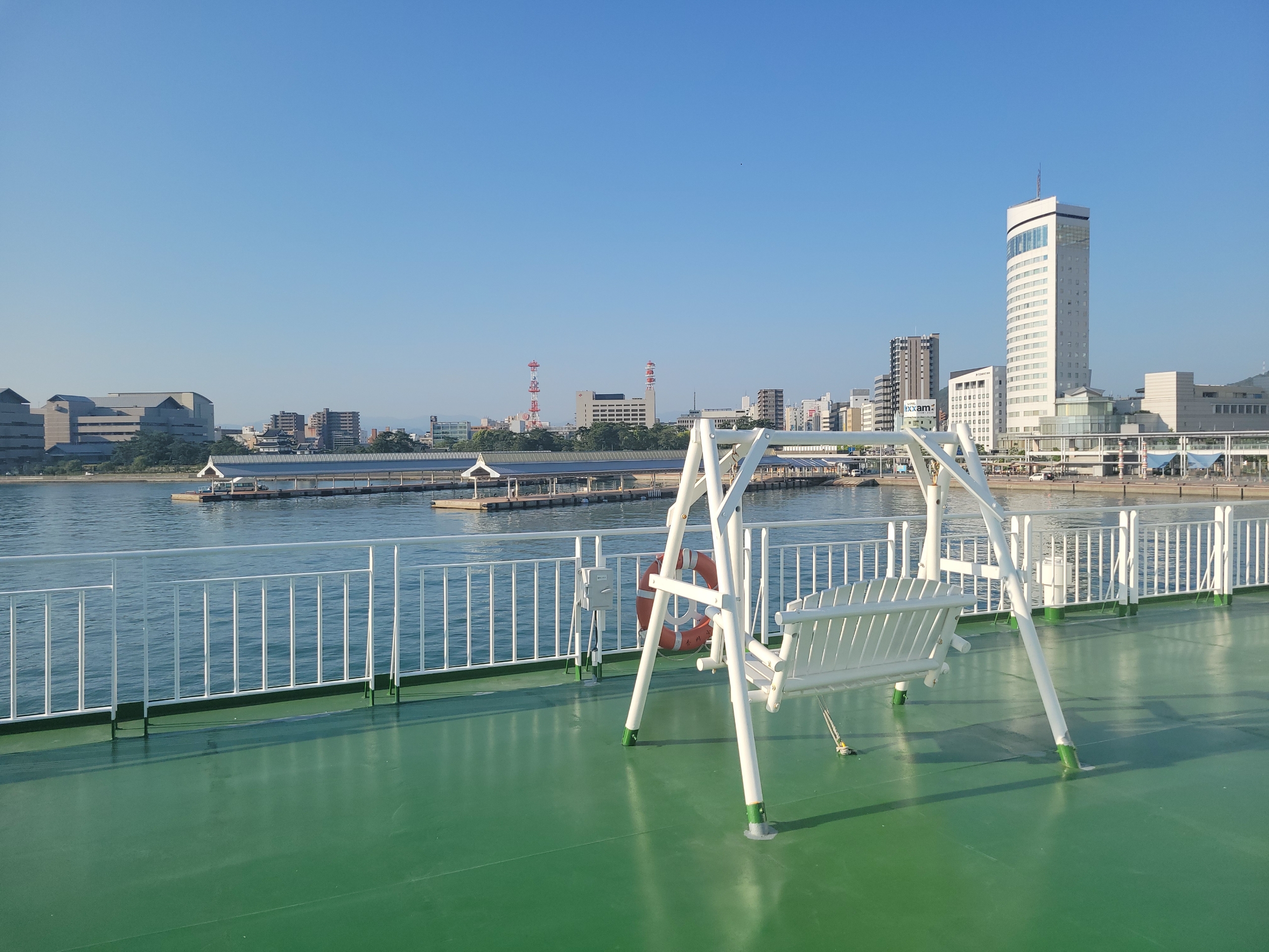 朝は船舶の航行も盛んですね。人々の生活が活発に動き出した雰囲気が海の上からも感じられます。