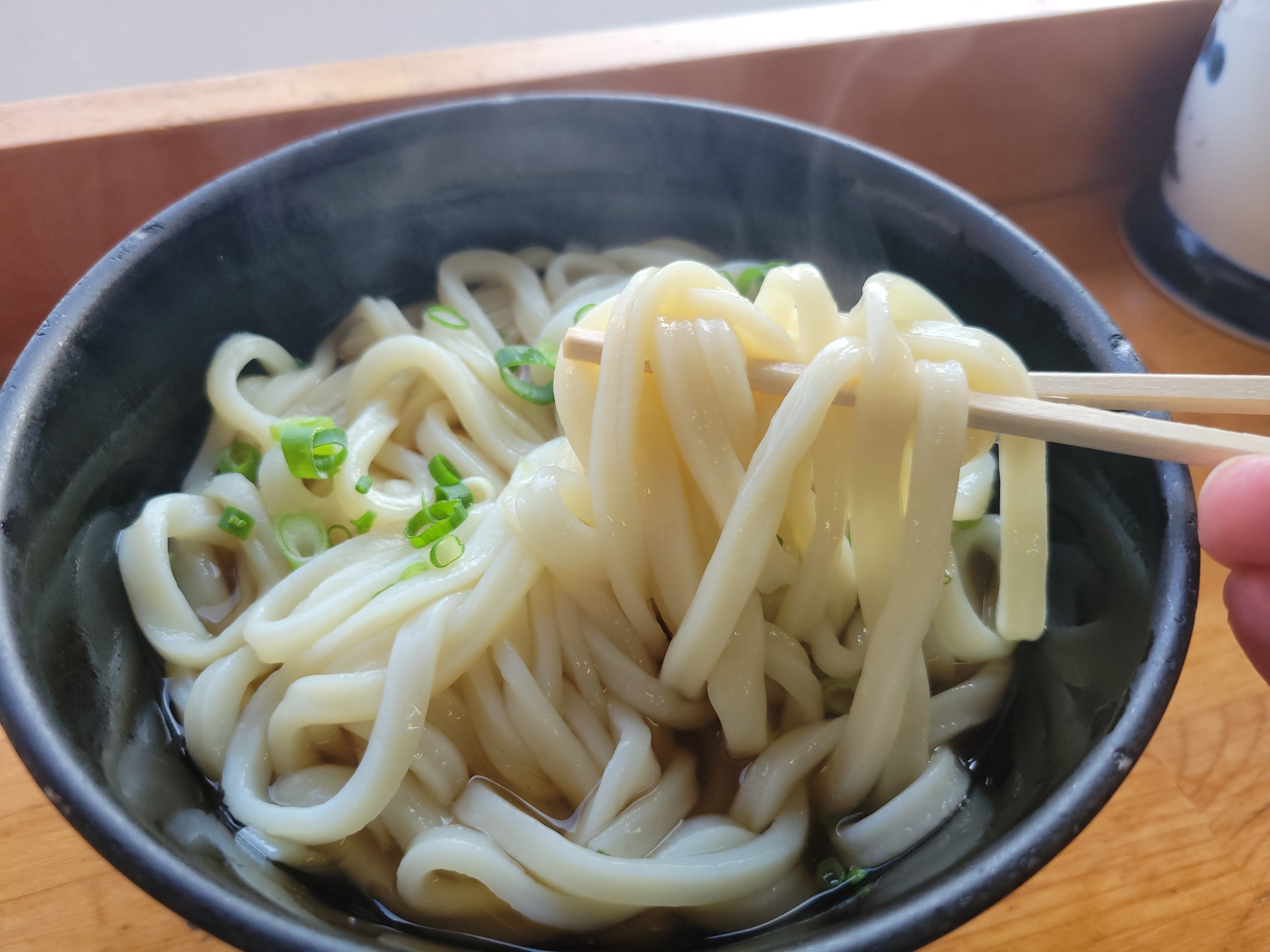 コシはほどほどで、どちらかというともちもちした麺。人気店のような本格的な讃岐うどんじゃないけど、温かみのある味で美味しく感じます。「あー、こういうのでいいんだよ。」という言葉が思い浮かびました。鰹だしがきいたおつゆも美味しかった。毎日食べても飽きない味ですね。