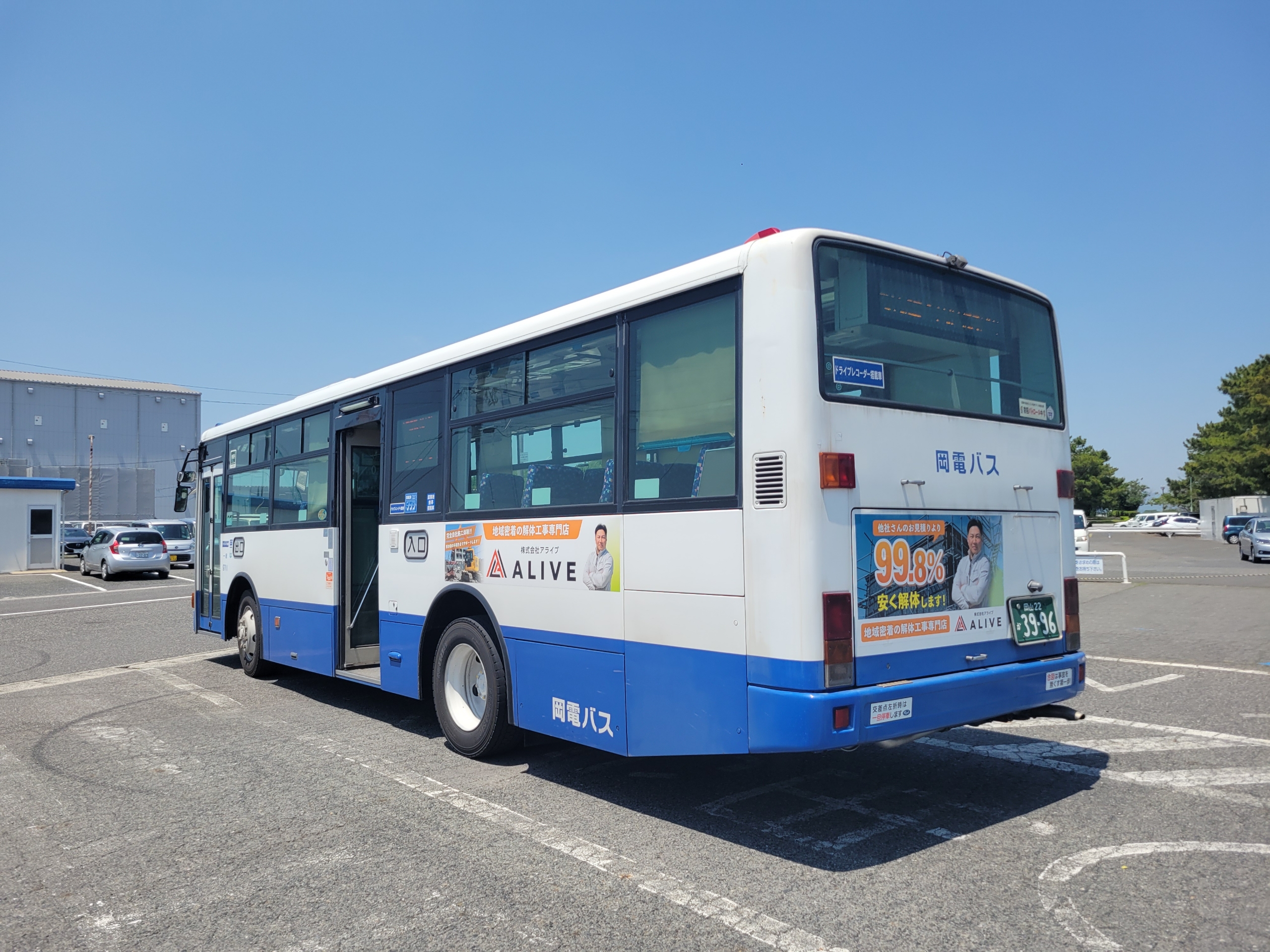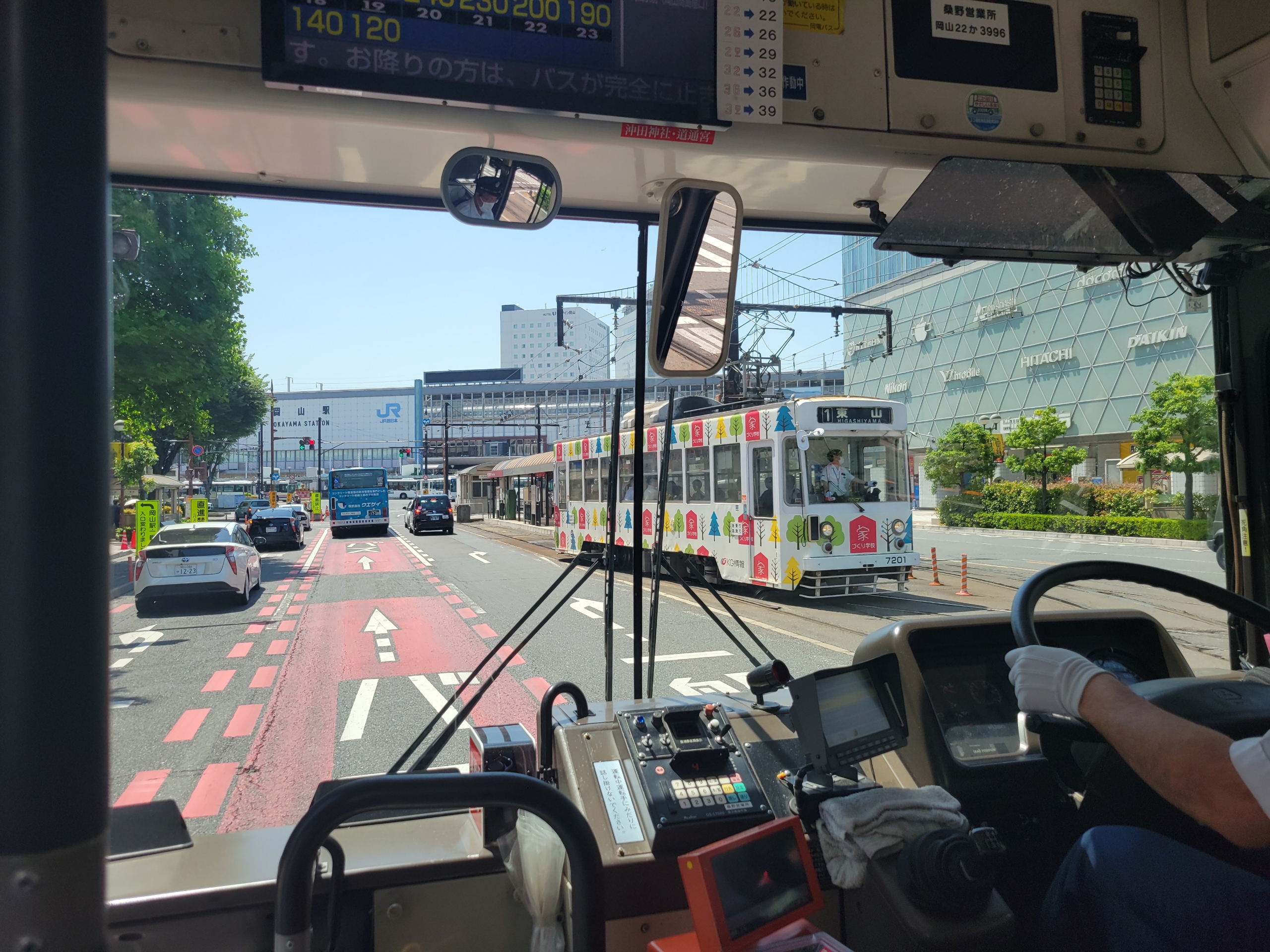 当初は散策しようと考えていたのですが、結構歩いたし、フェリーではずっと甲板にいて、潮風と太陽を浴びていたので、体力を消耗していたのと、エアコンの効いたバスから降りるのが億劫になって、そのまま岡山駅まで行くことにしました。