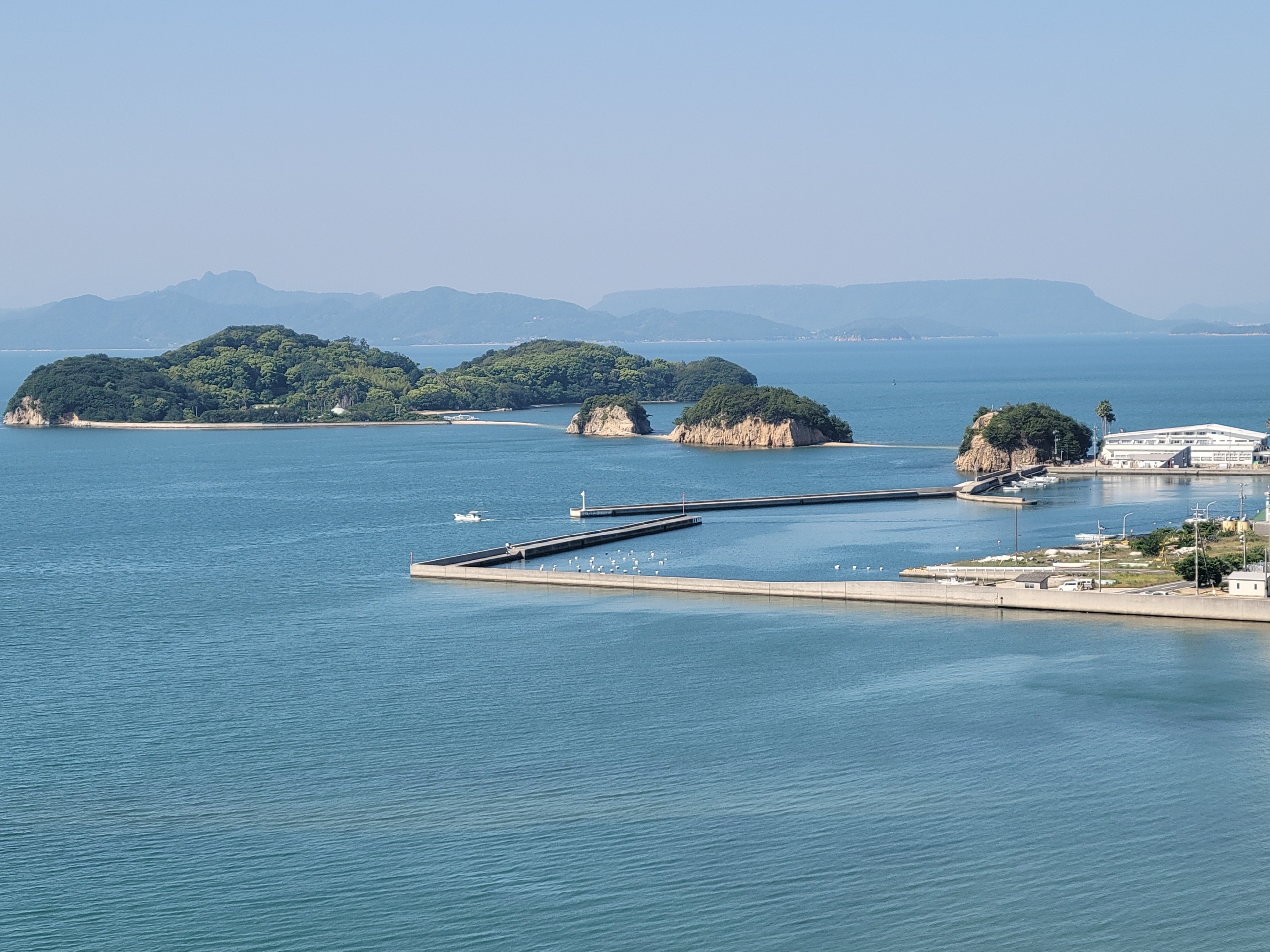海峡とは陸と陸の間に挟まれた海のことなので、小豆島はひとつの島だけど、実際にはふたつの島に分かれているということ。北側を向いて写真を撮っていますが、右(東側)が小豆島本島、左(西側)が前島だそうです。