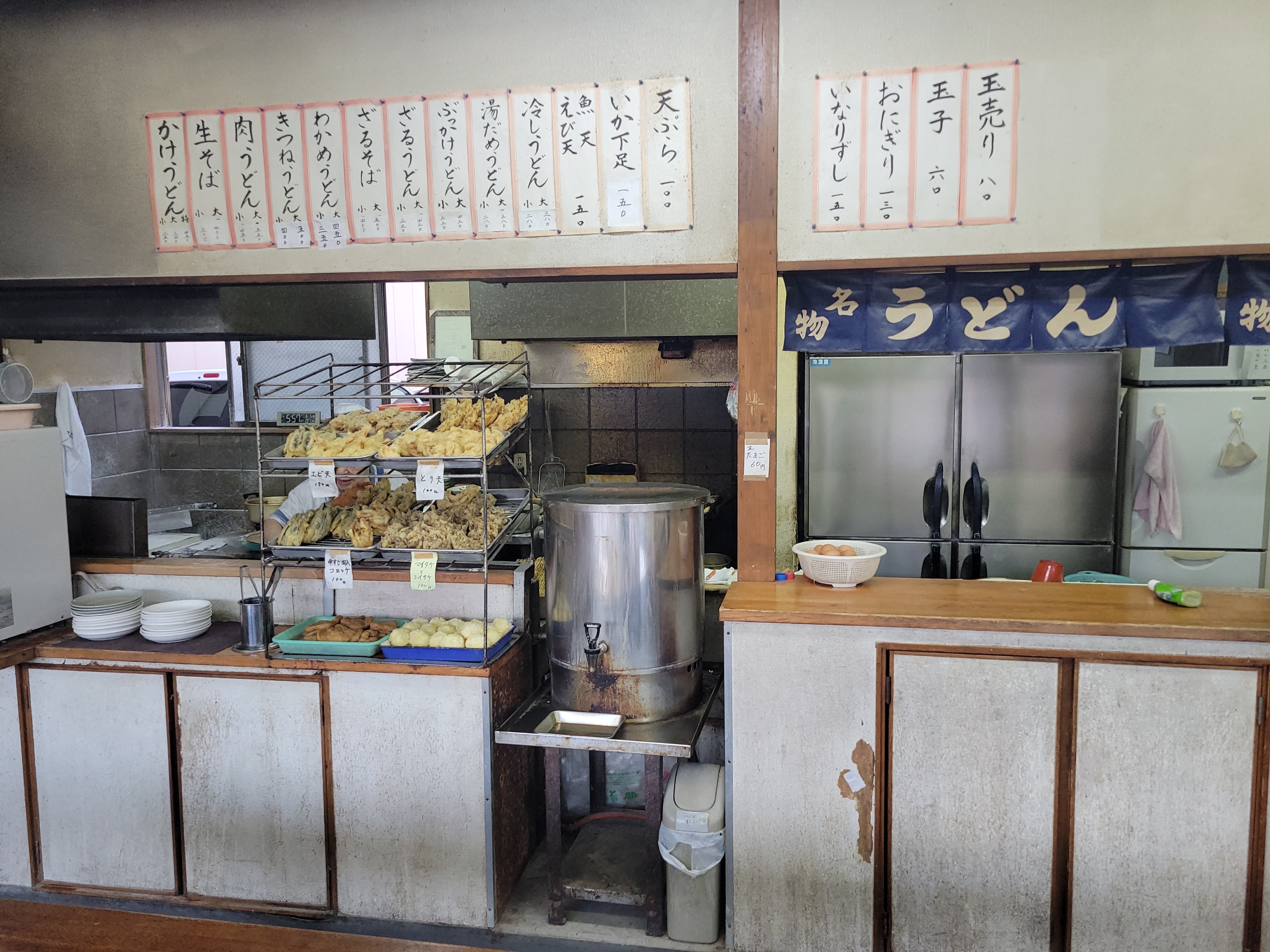 シンプルにうどんを楽しみたいので、あまりトッピングすることはありません。カウンター席からは高松駅が見えます。