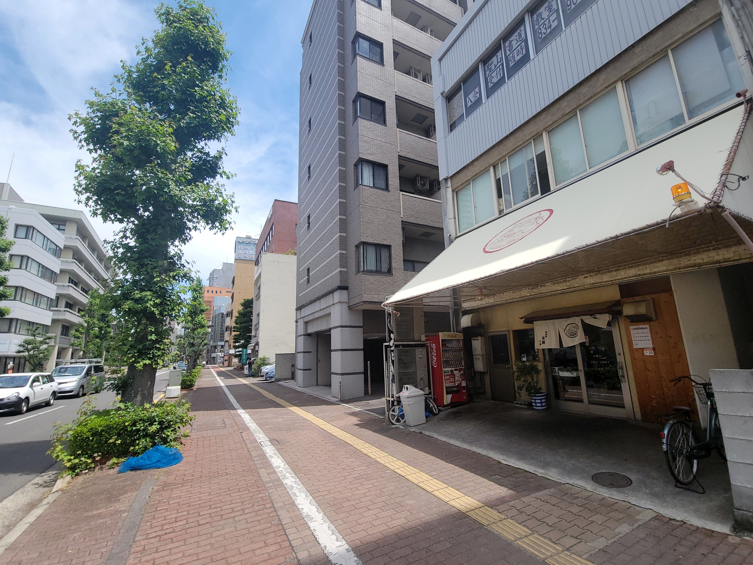 「めんや七福 高松店」。香川県庁の少し南にあるお店です。お昼のピーク前にやってきました。営業時間:平日10:00~14:30