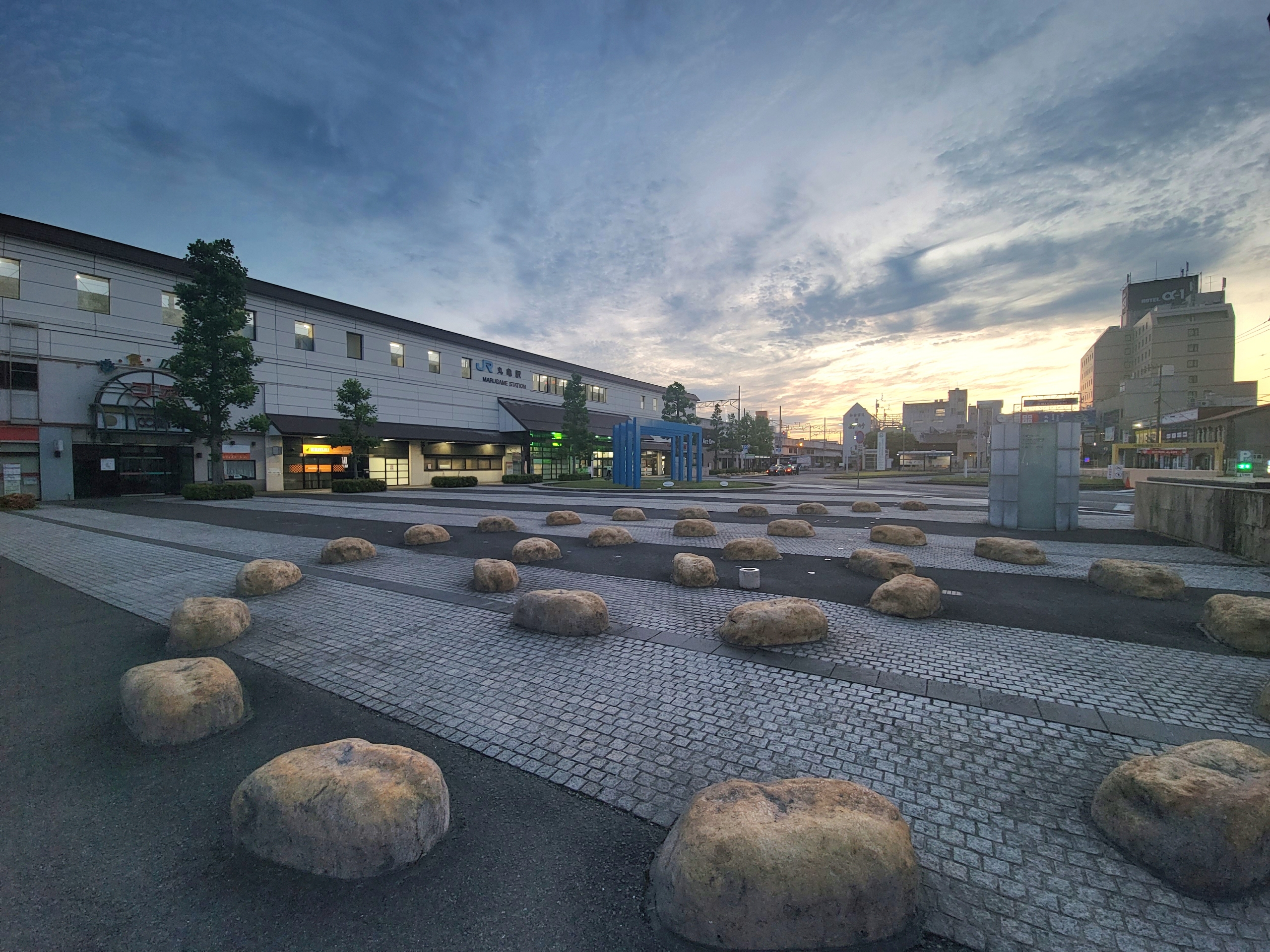 丸亀駅前にある謎の石、実はこれ夜になると光ります。というか今も光っているけど、外が明るくてわかりません。実際にはこれ石ではなくて、強化プラスチックでした。
