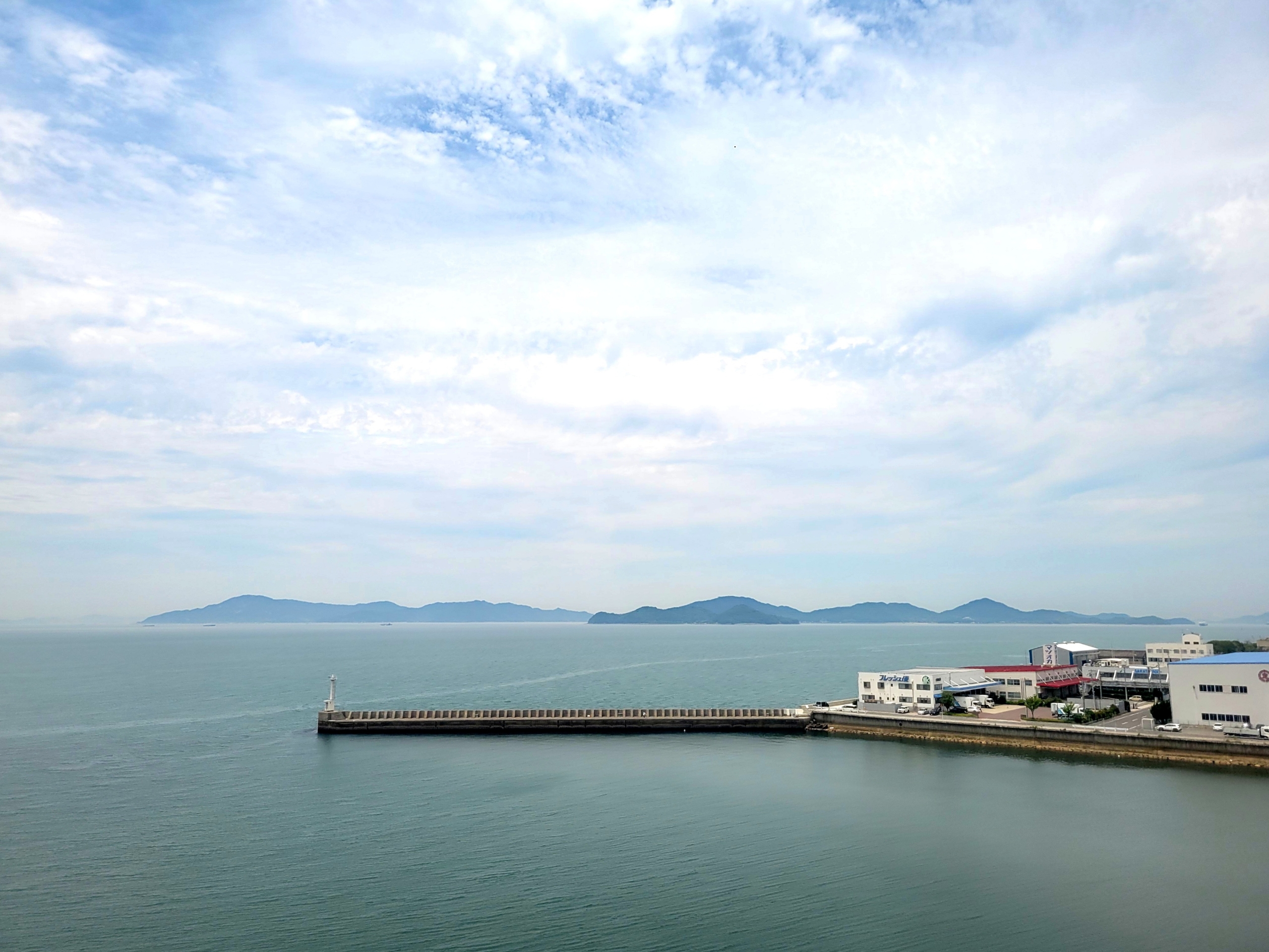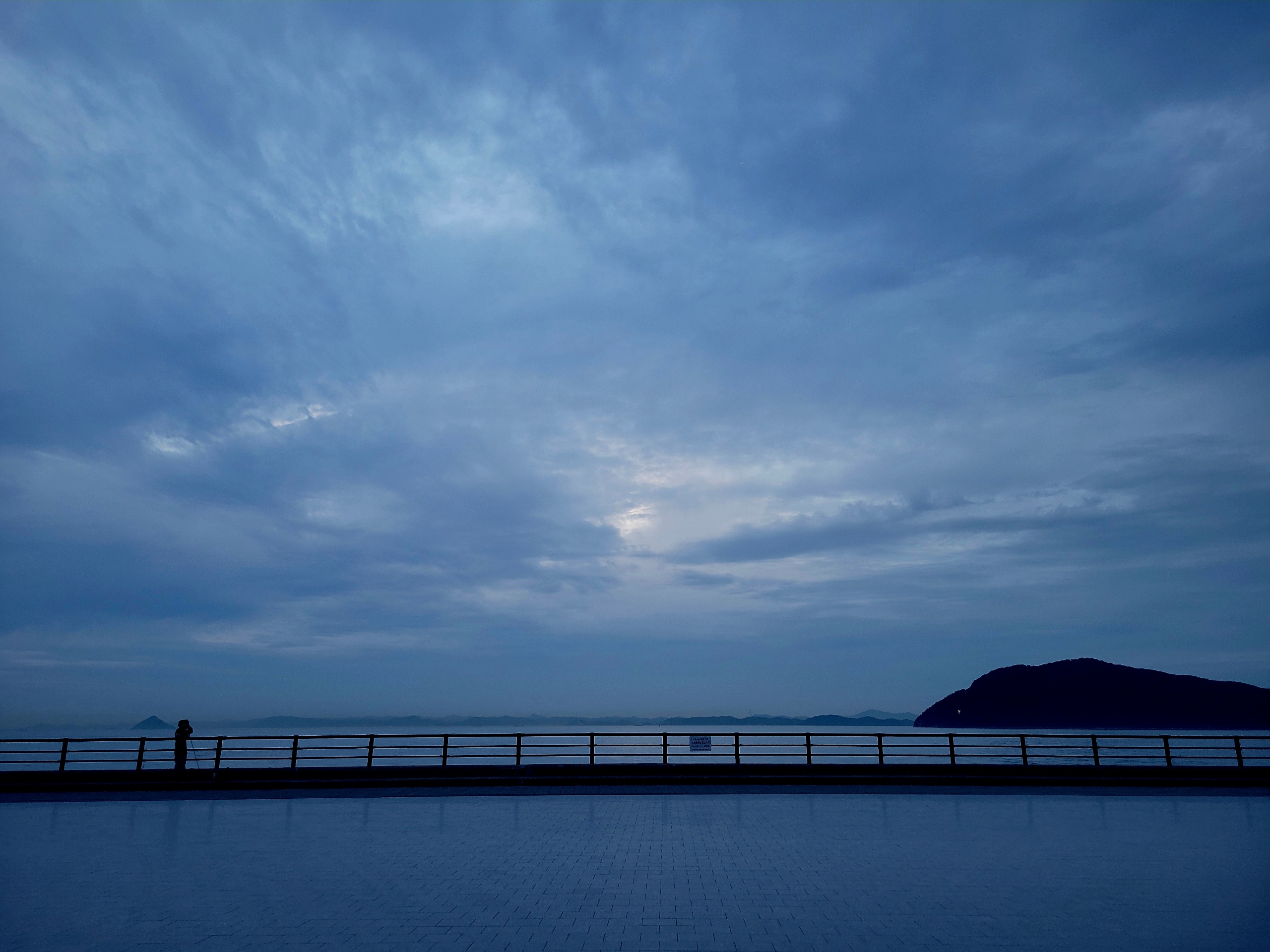 夕日は無理だろうとわかっていたけど、お腹いっぱいになったので、食後の散歩がてら、あなぶきホール近くの海までやってきました。