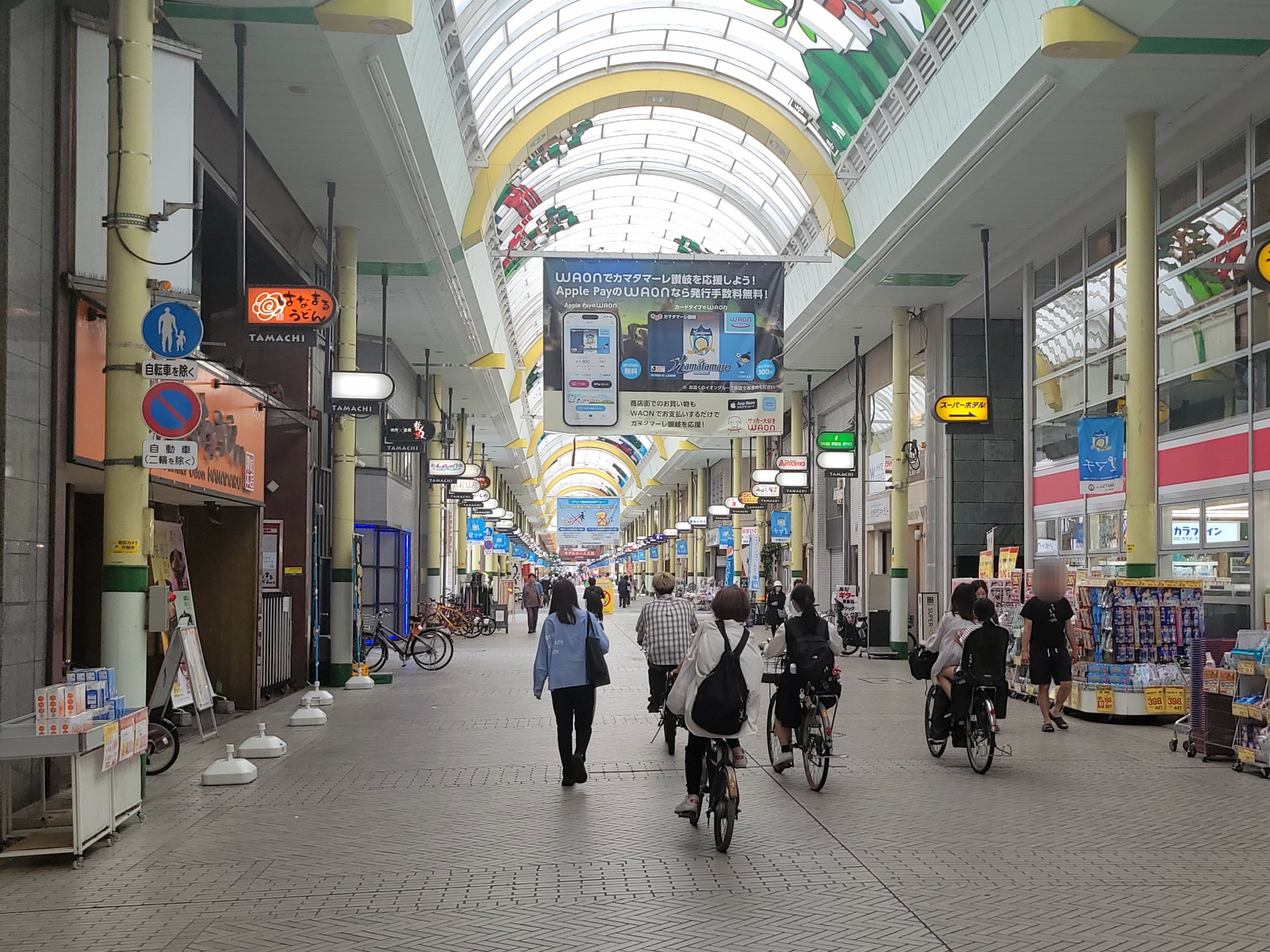 丸亀町商店街以外では、自転車の通行が認められており、これも高松市の商店街が復活してきた理由のひとつなのだろう。地元の人が日常的に行き交うことで、にぎわいが保たれているように感じる。
