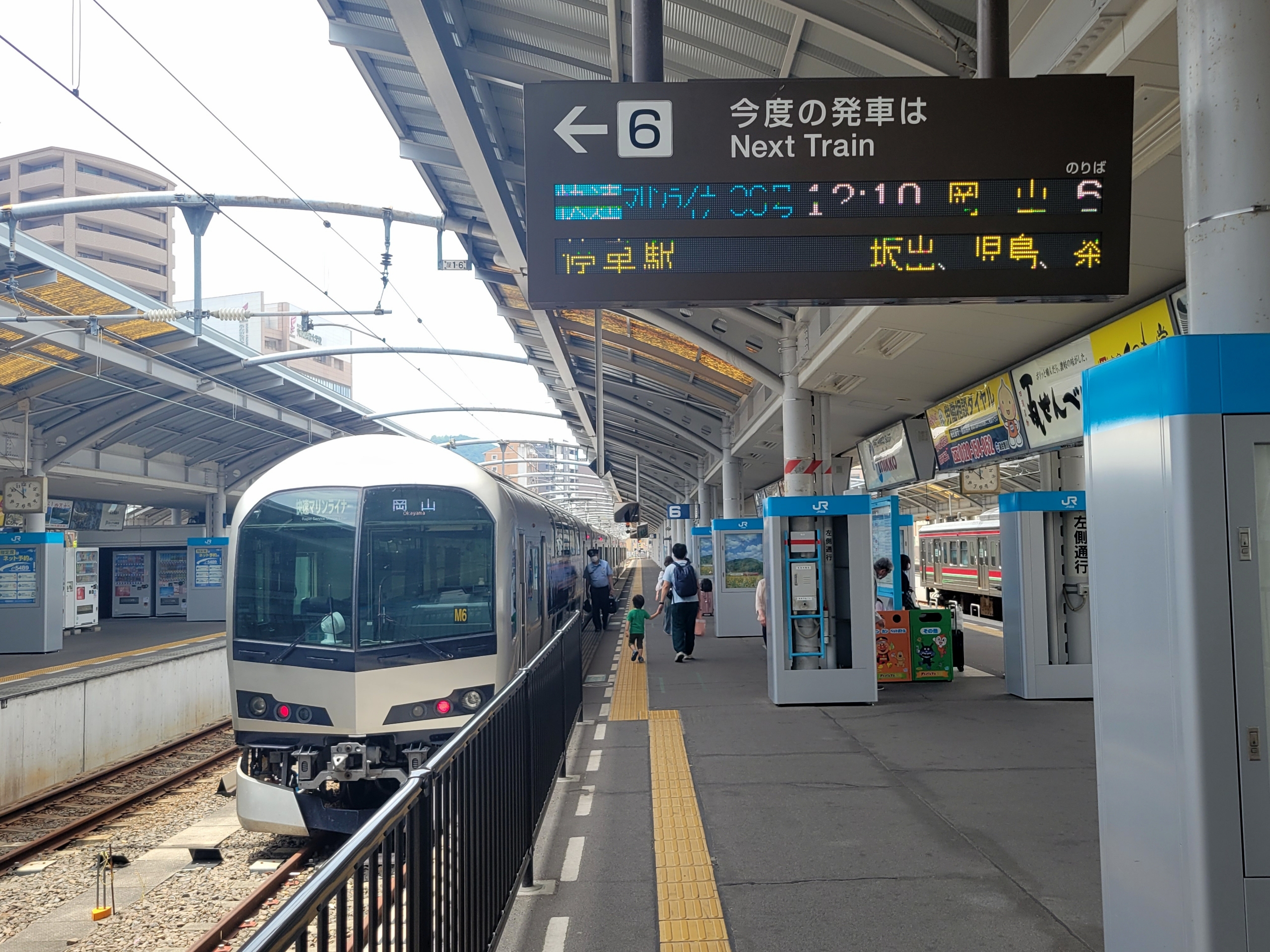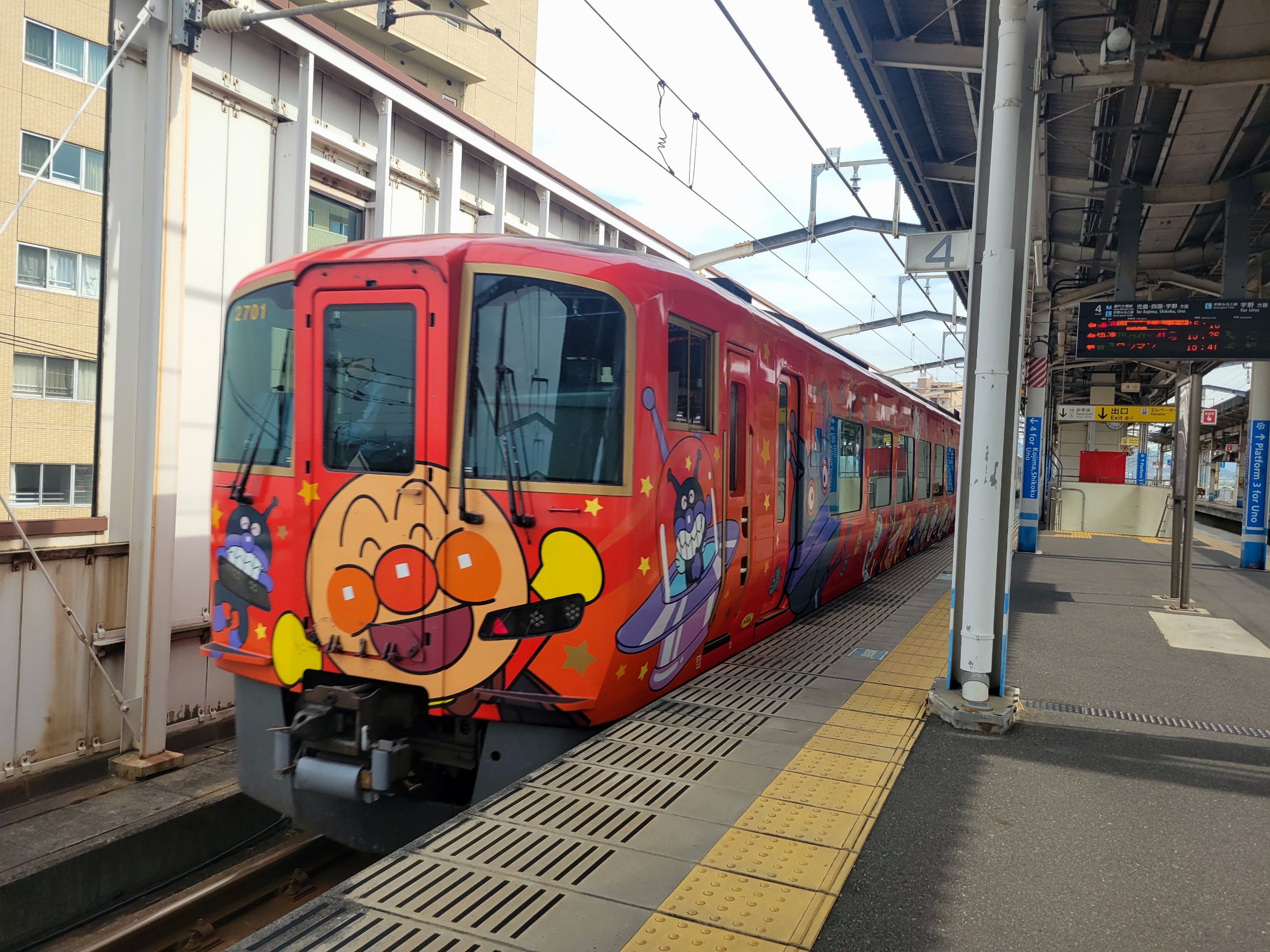 茶屋町駅では、岡山と四国方面を結ぶ特急が時速100キロ以上で通過していく。笑顔のアンパンマンがそのまま爆走していく。そのギャップがちょっと怖い。